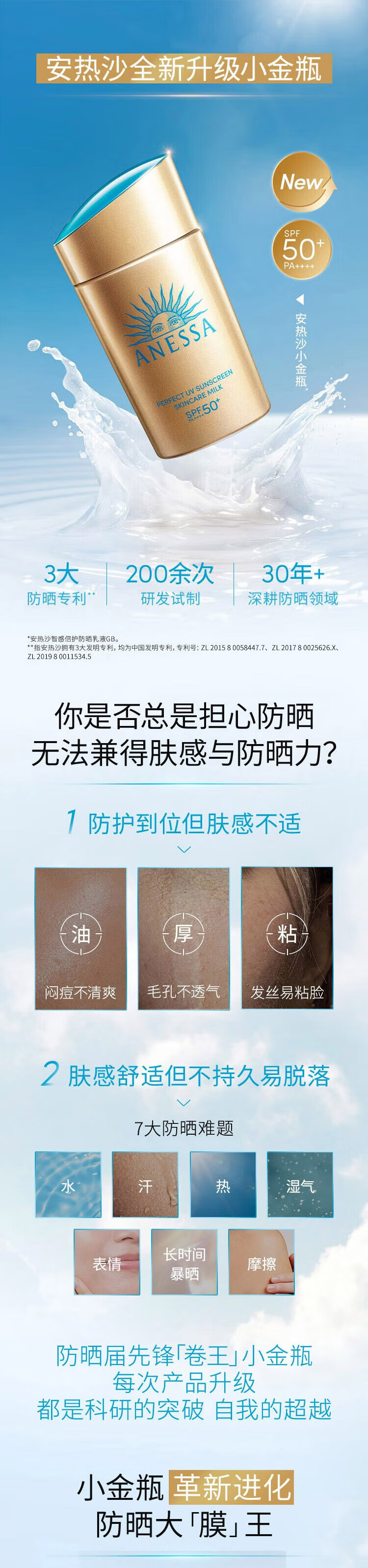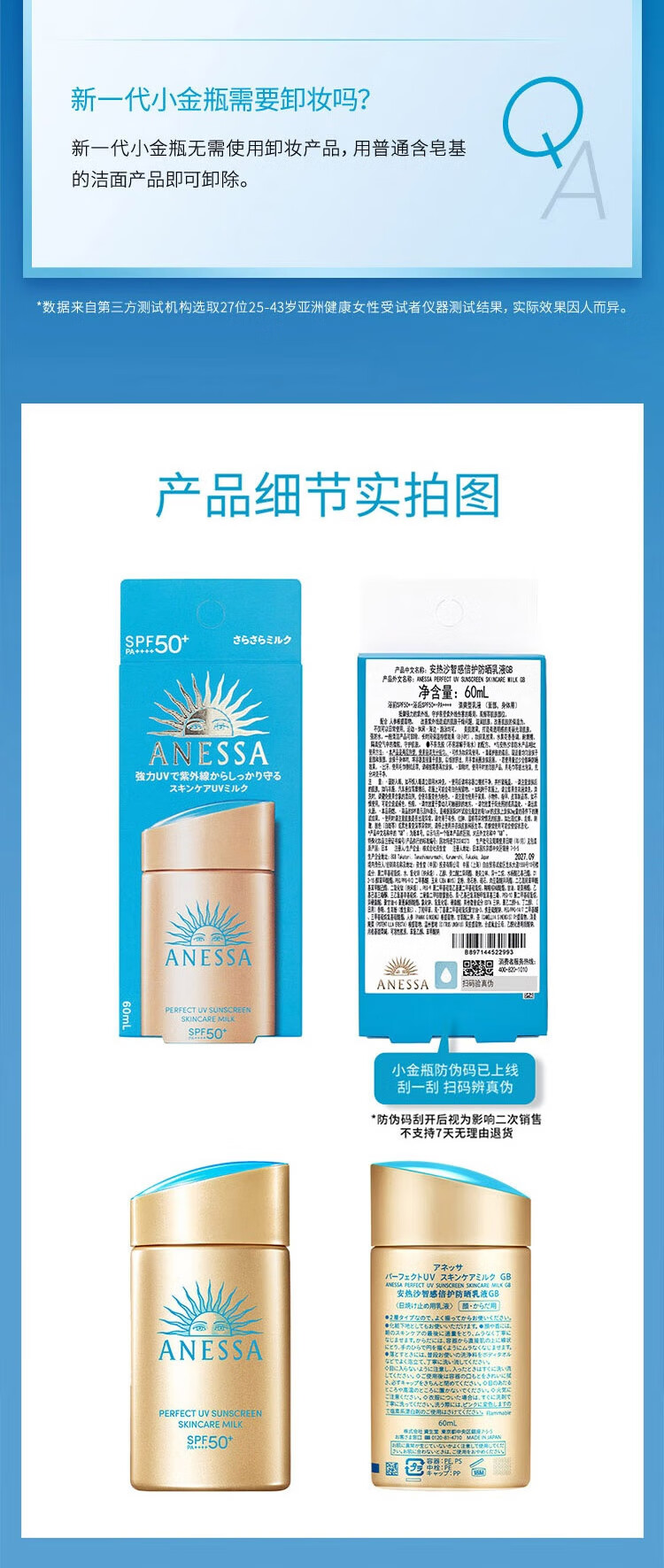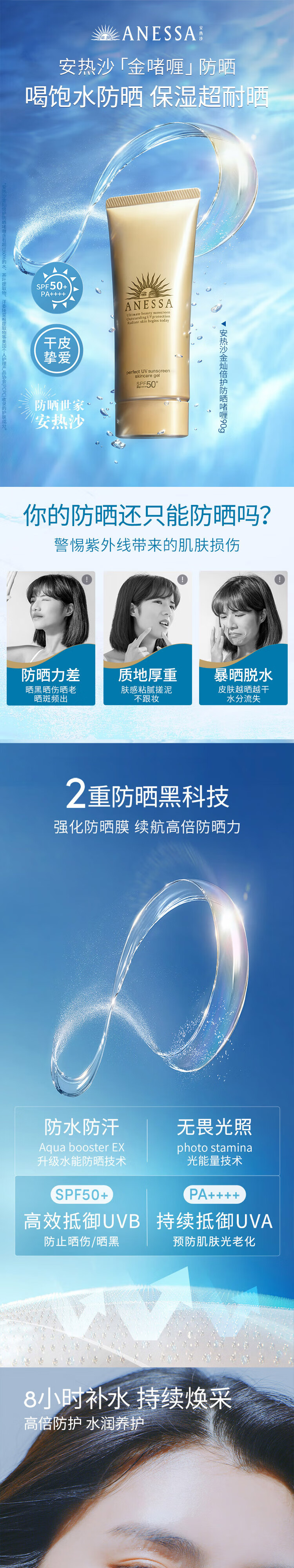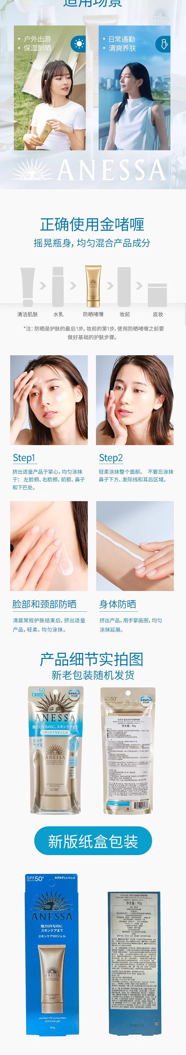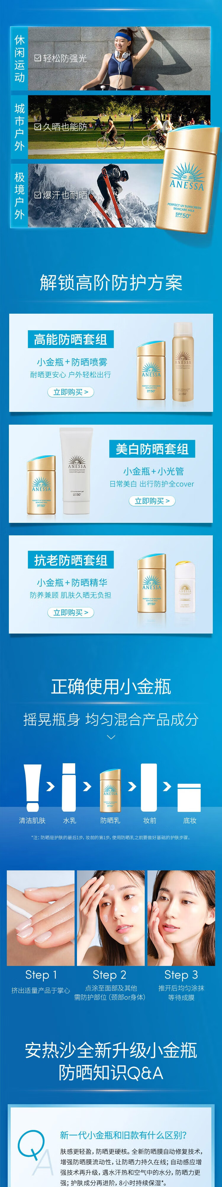 安热沙高倍防晒套装小金瓶60ml+金啫喱90g清爽耐晒防晒霜京东自营女神节