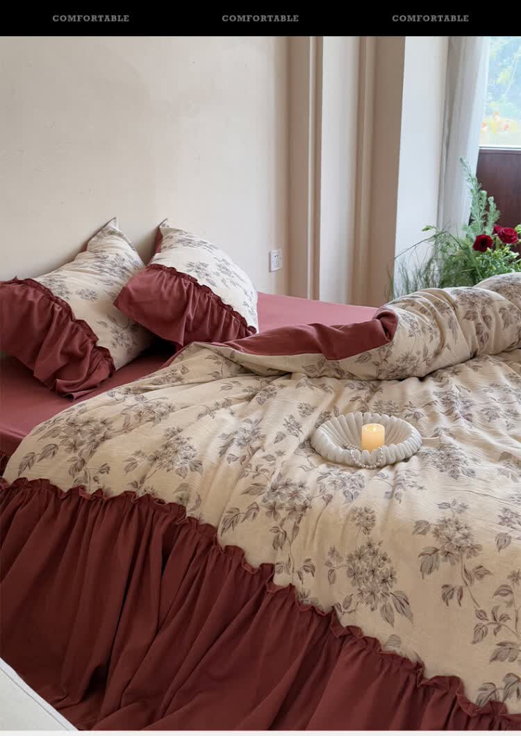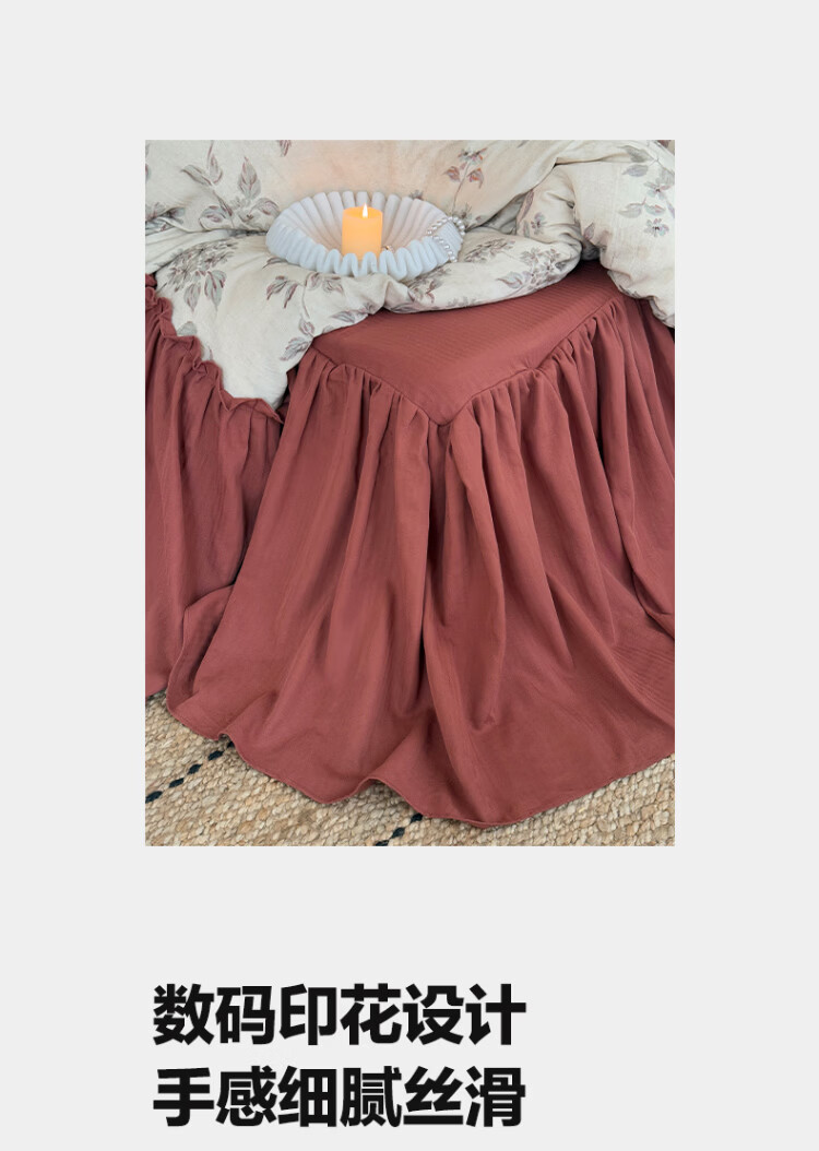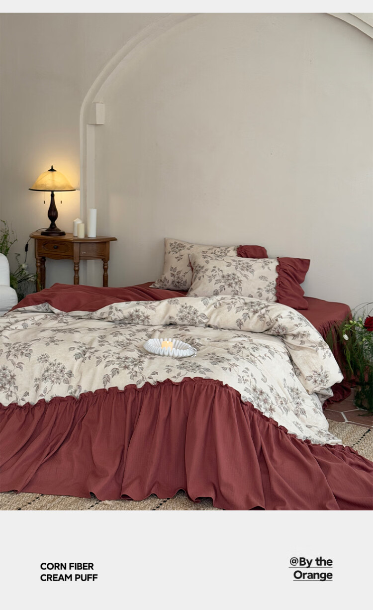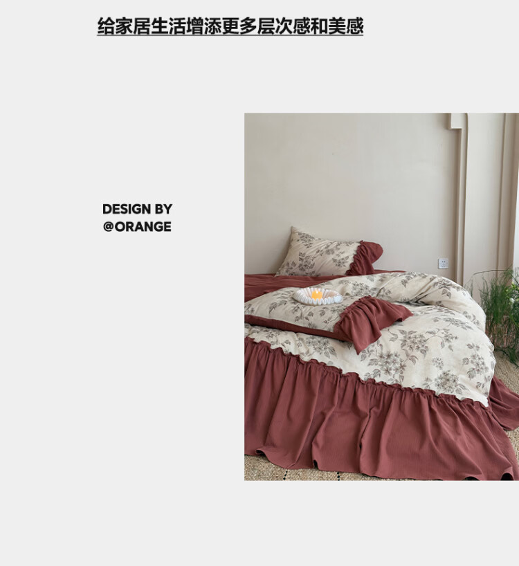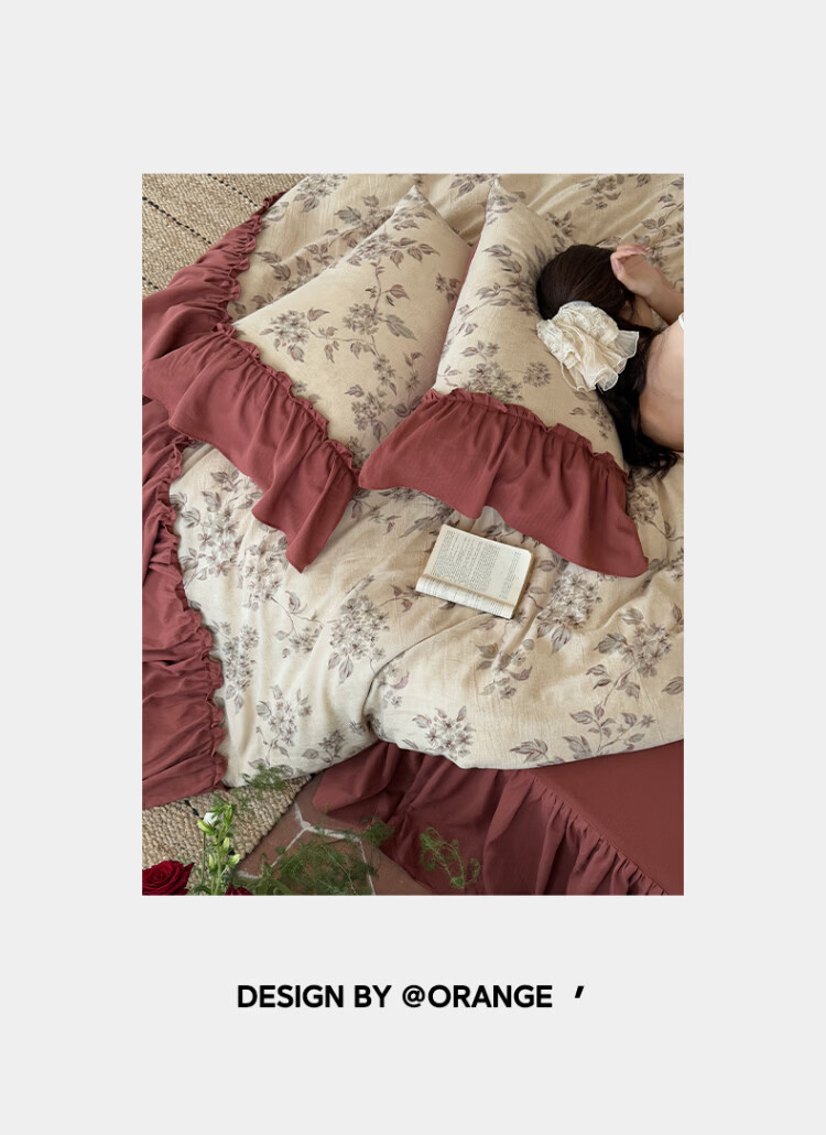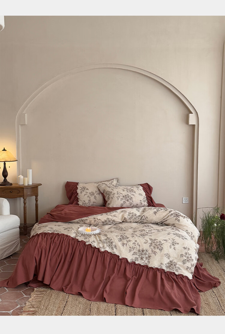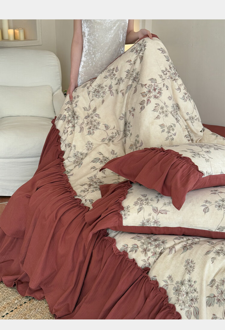 ROLAND LIVE法式复古文艺风棉麻四件套花边被套床裙款少女心透气亲肤床上用品 WL 棉麻四件套-午后蔷薇 1.5米床 床裙款 【被套200*230cm】