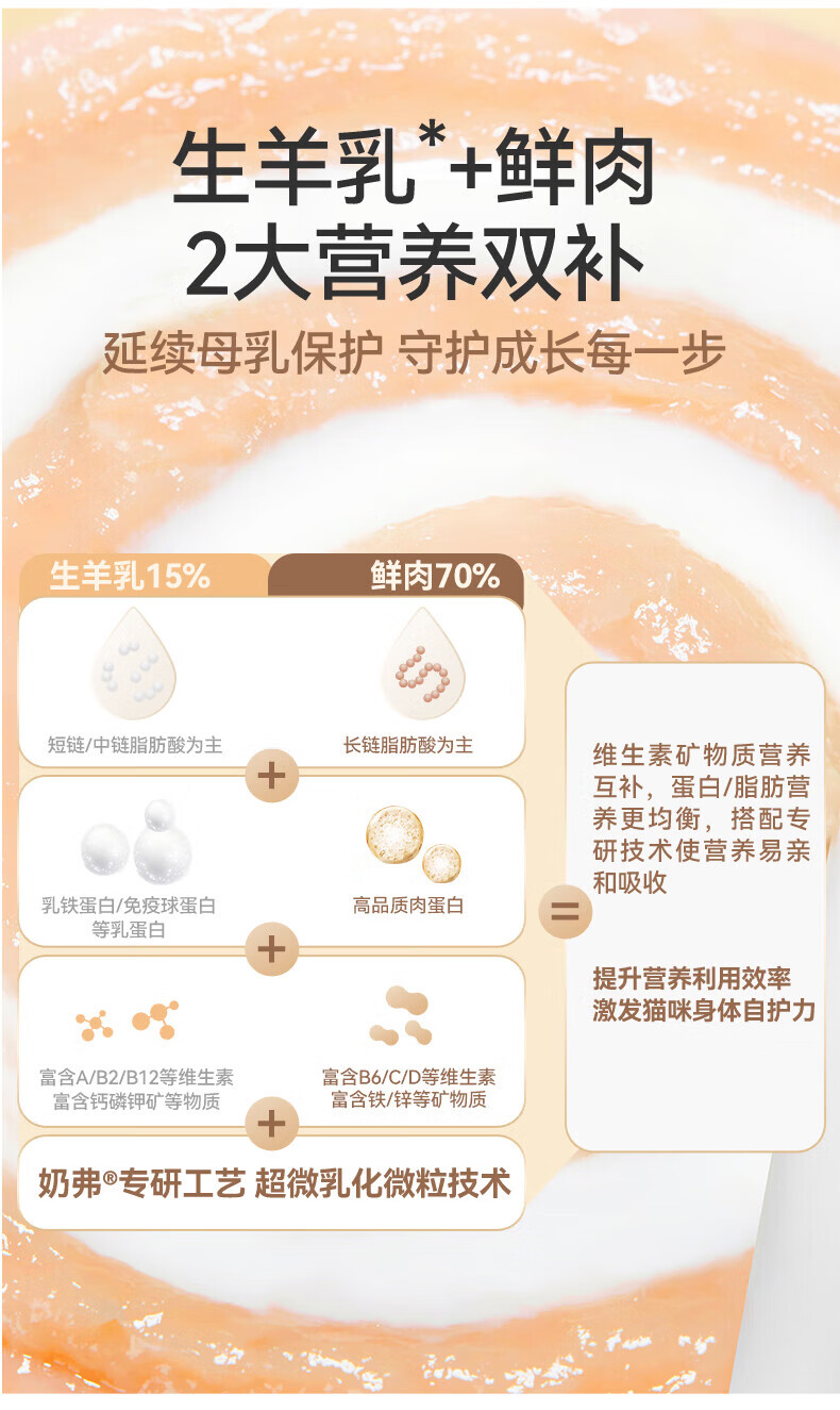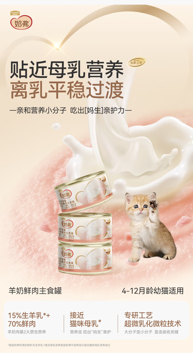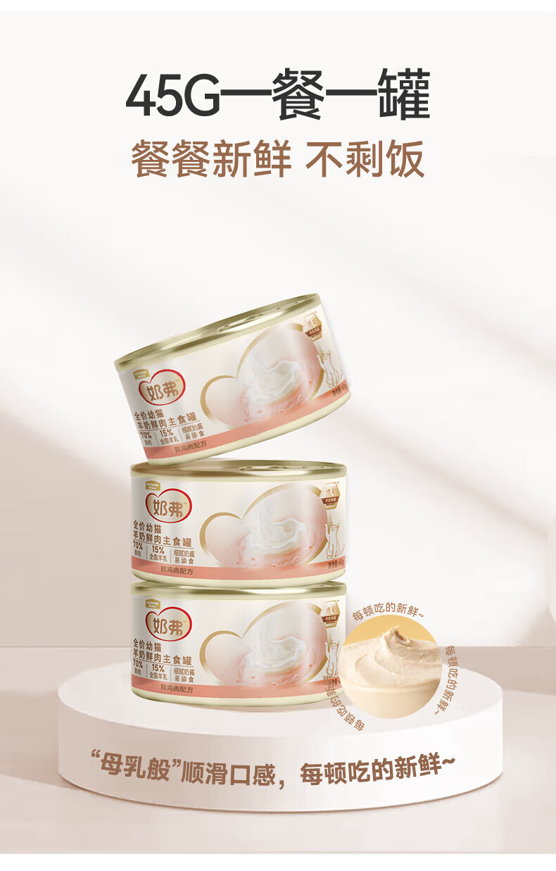 麦富迪(Myfoodie)猫罐头奶弗全价羊奶鲜肉主食罐头幼猫鲜鸡肉 45g*6【临期清仓】