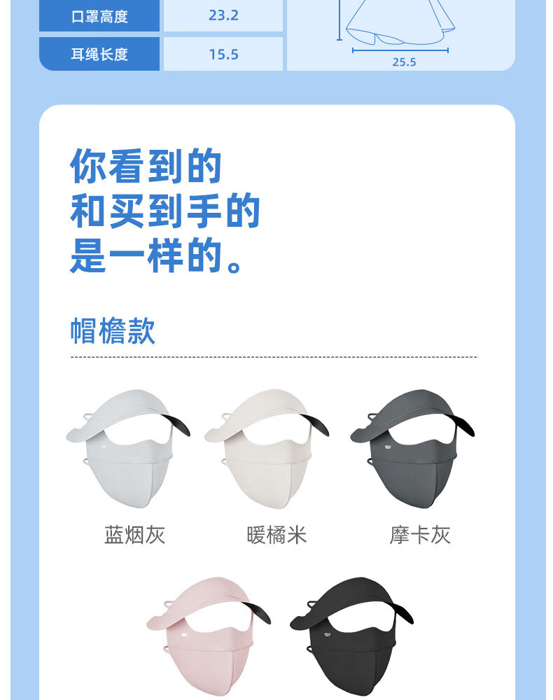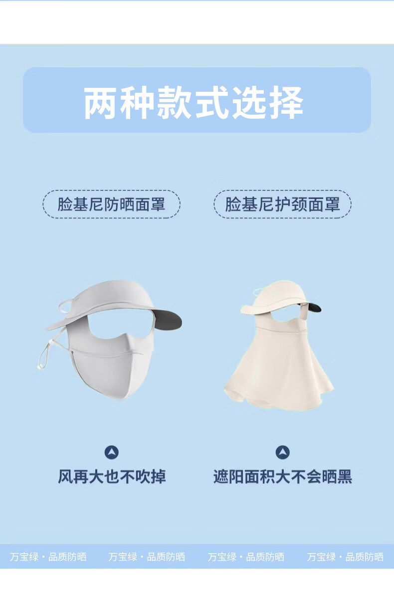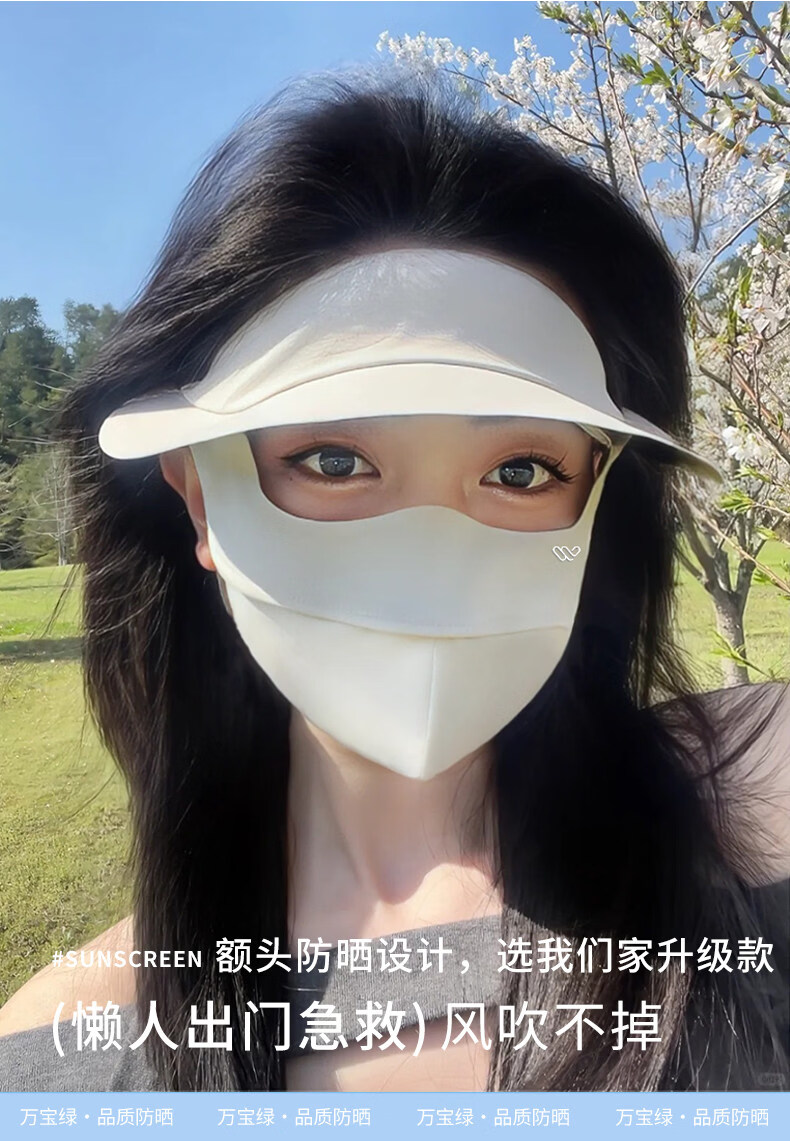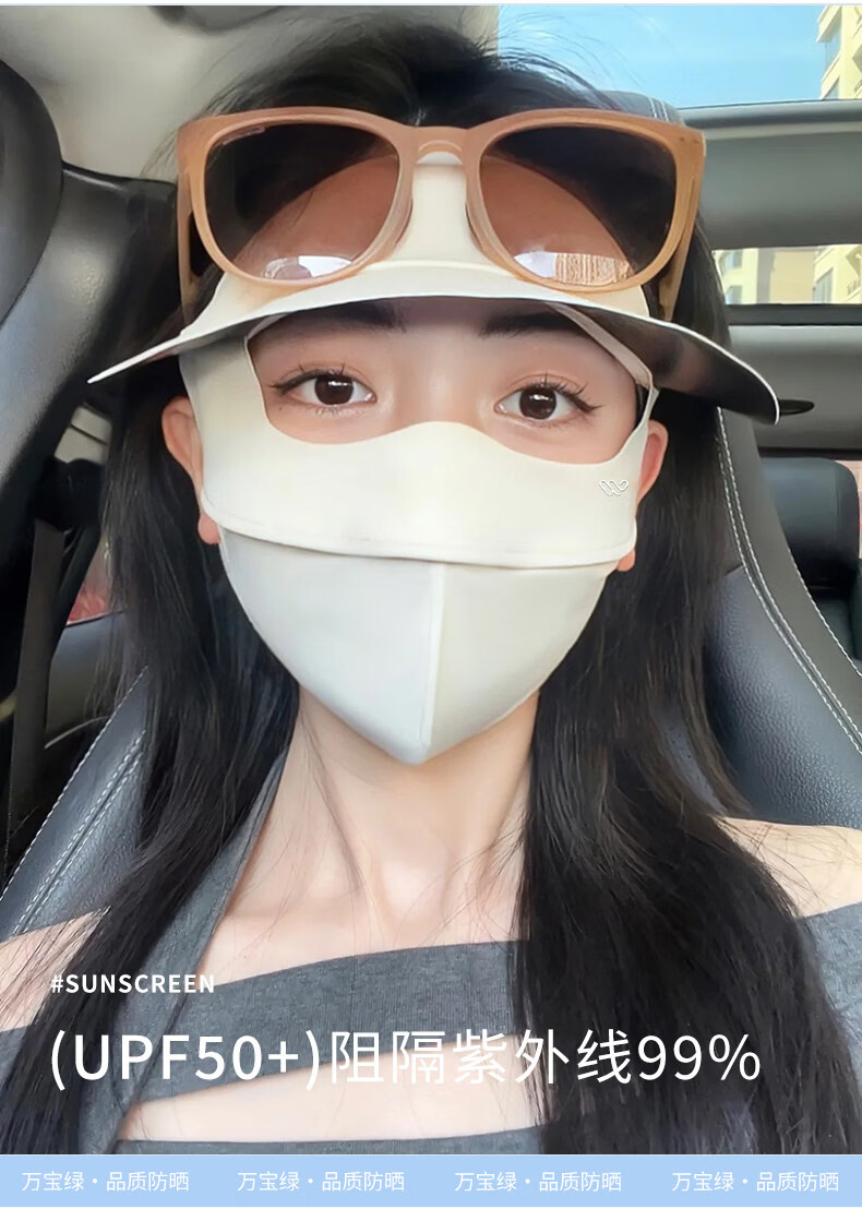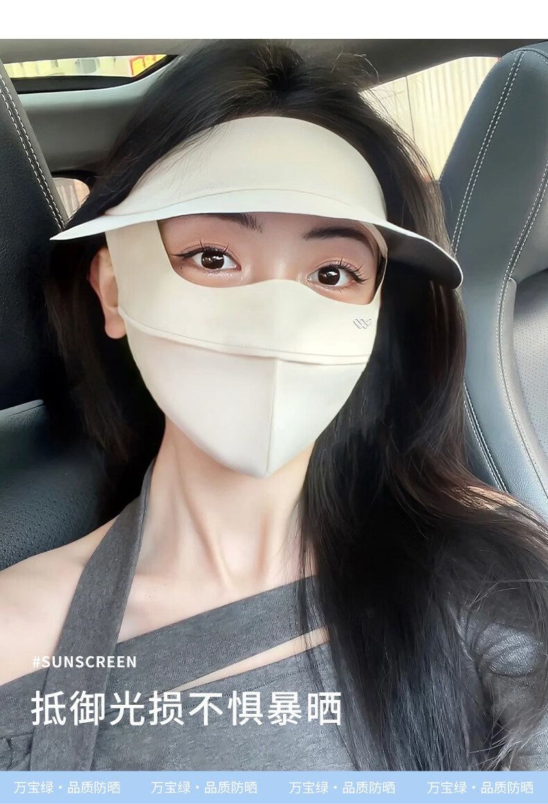 万宝绿脸基尼防晒面罩2026新款全脸帽子一体口罩女防紫外线透气开车遮阳 脸基尼升级款【蓝烟灰】立体修容 【SoftBrace空气软骨】立体透气 不蹭妆