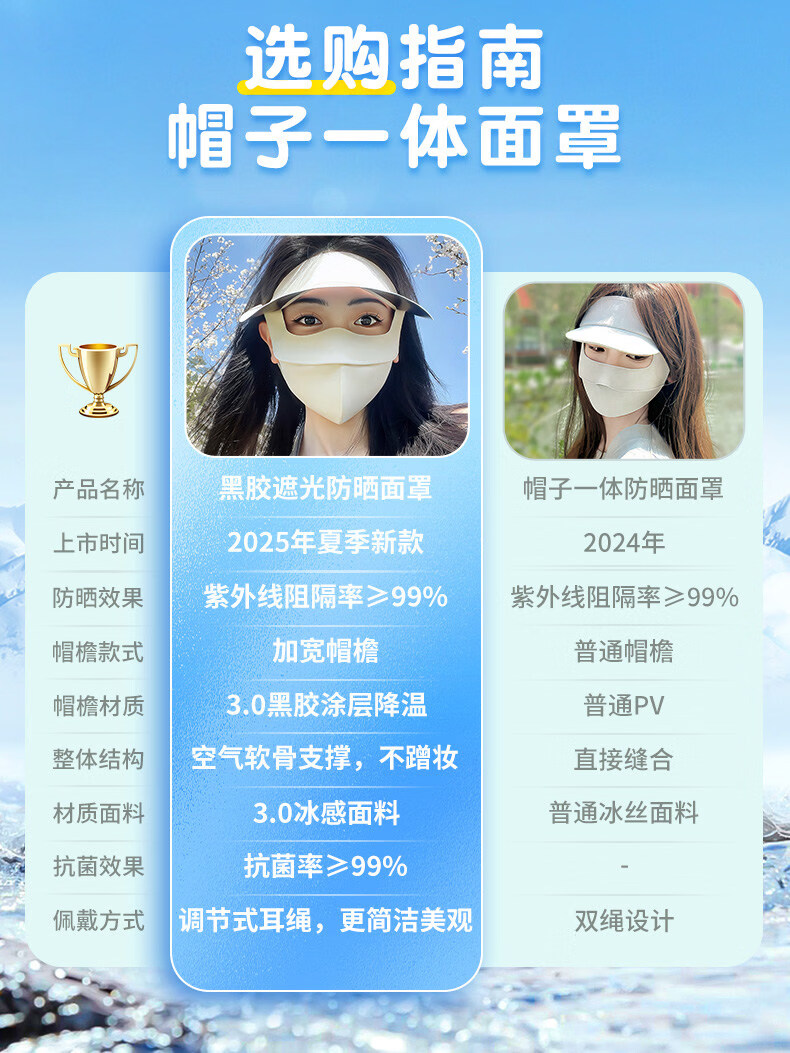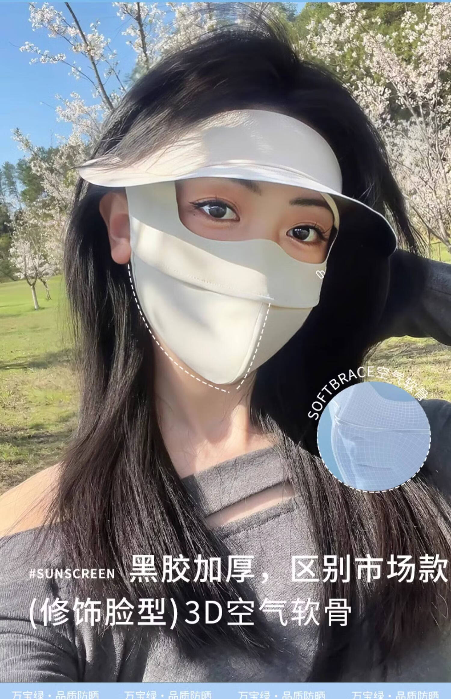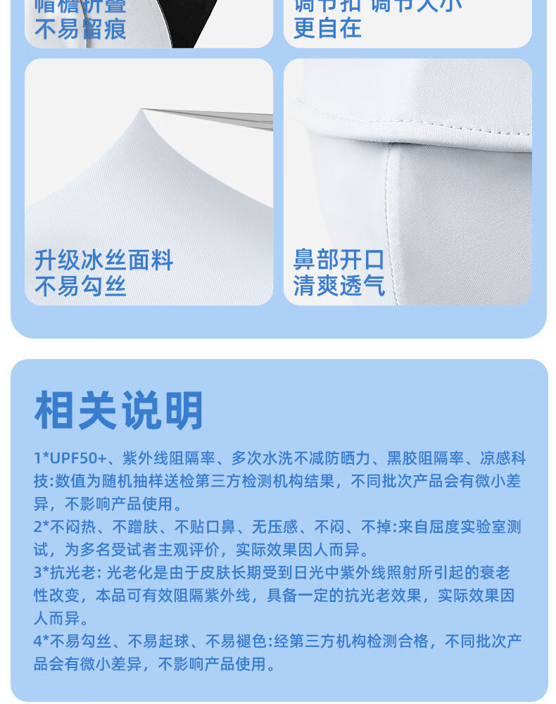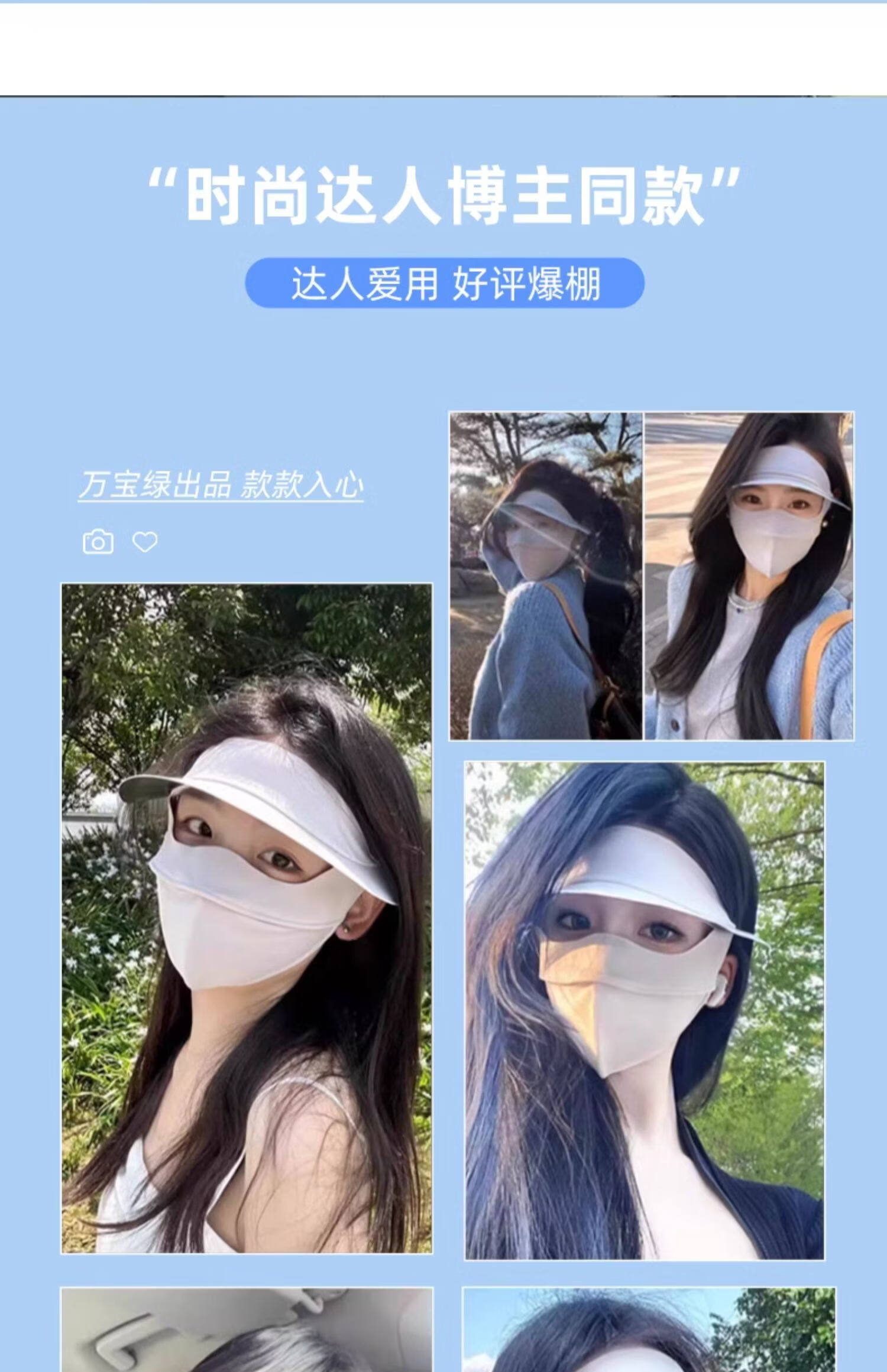 万宝绿脸基尼防晒面罩2026新款全脸帽子一体口罩女防紫外线透气开车遮阳 脸基尼升级款【蓝烟灰】立体修容 【SoftBrace空气软骨】立体透气 不蹭妆