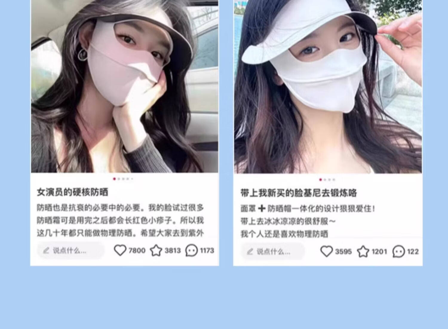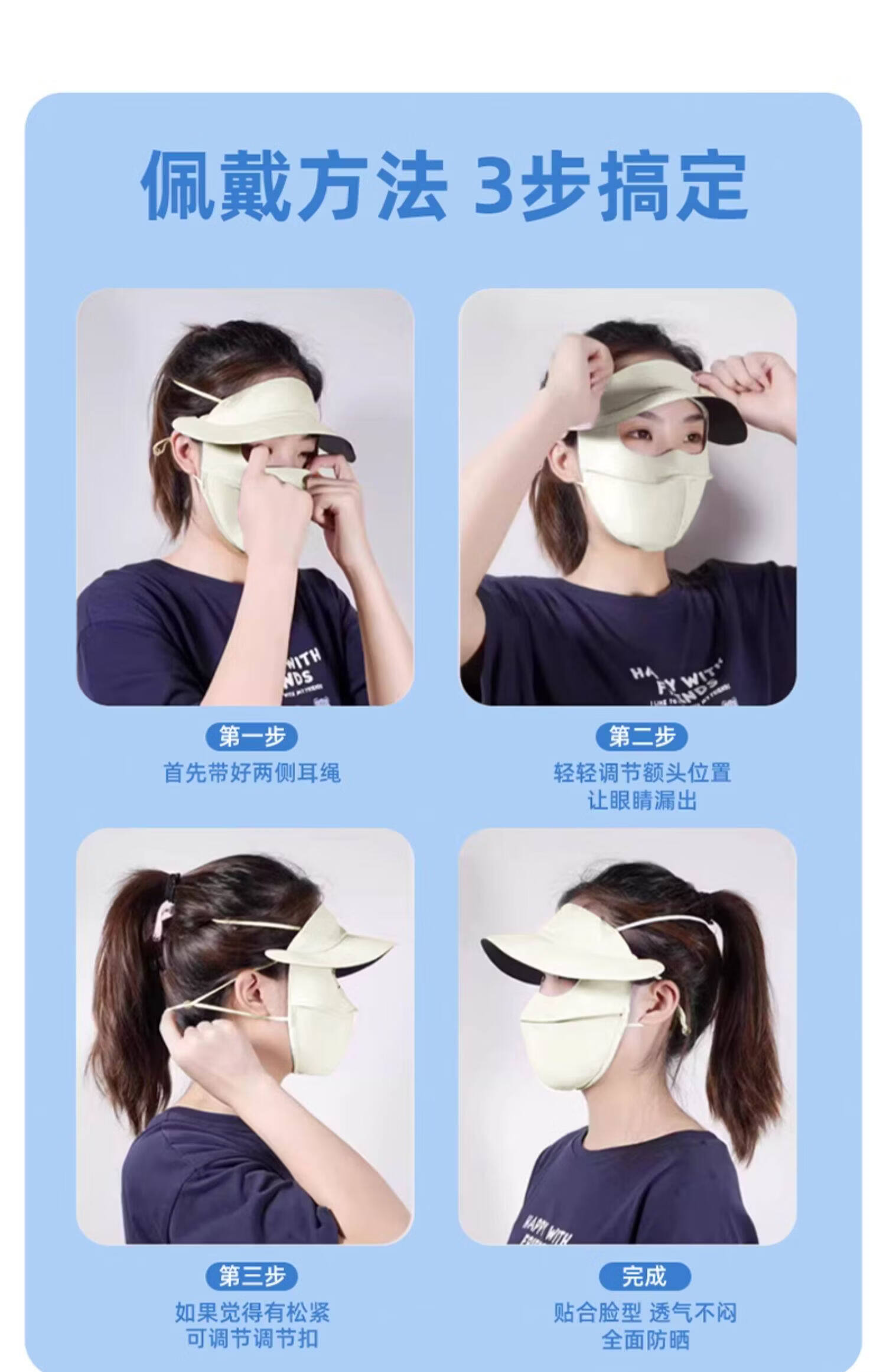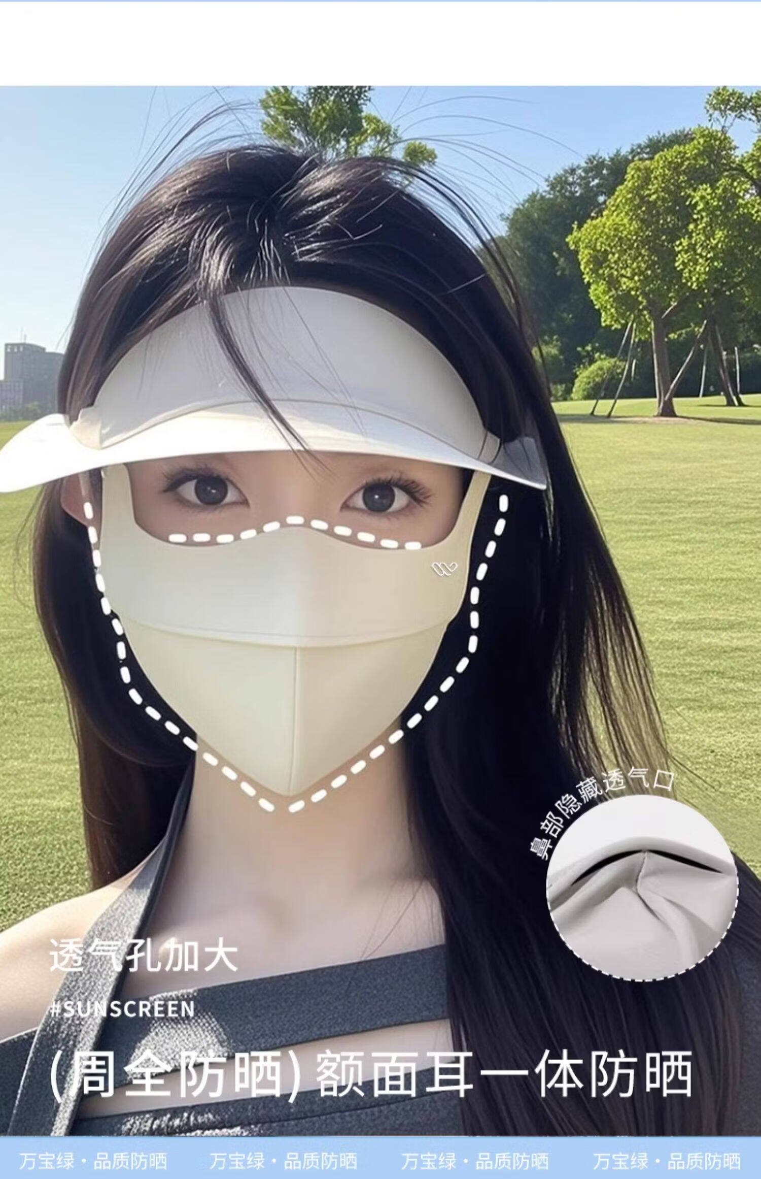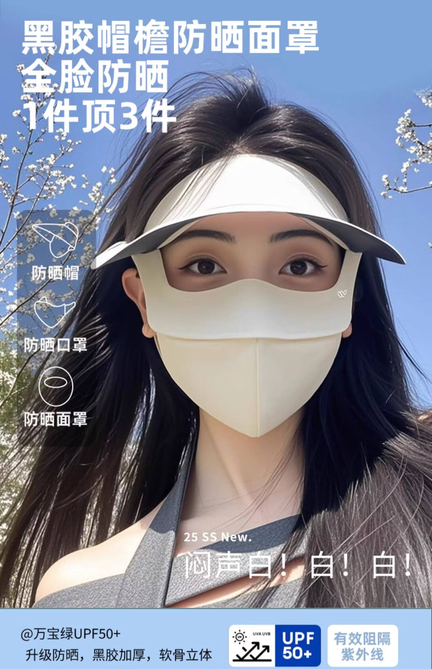 万宝绿脸基尼防晒面罩2026新款全脸帽子一体口罩女防紫外线透气开车遮阳 脸基尼升级款【蓝烟灰】立体修容 【SoftBrace空气软骨】立体透气 不蹭妆
