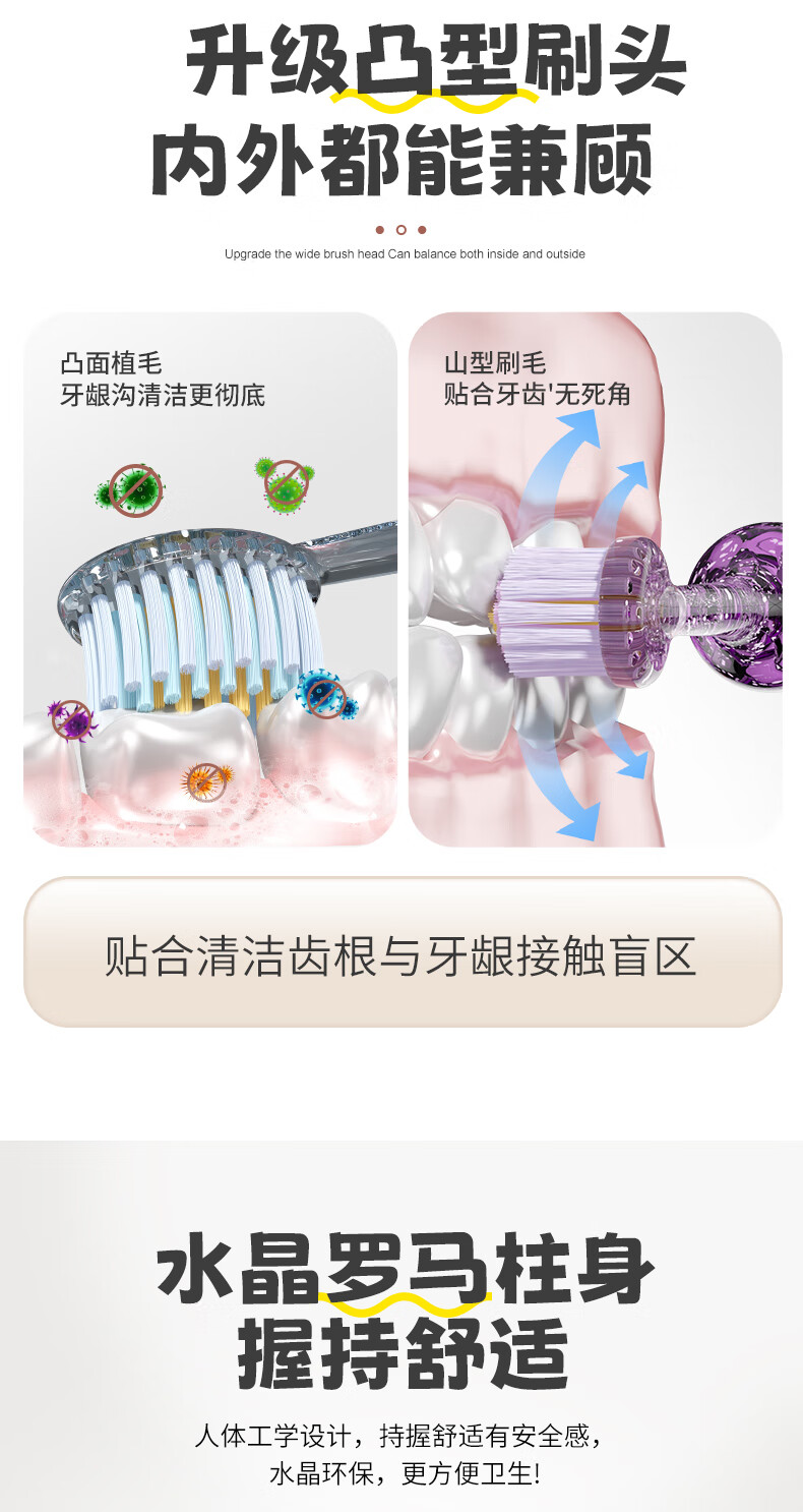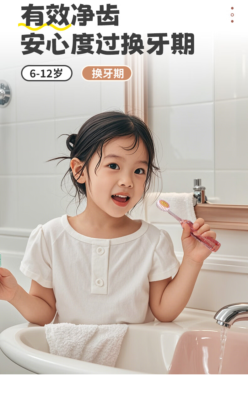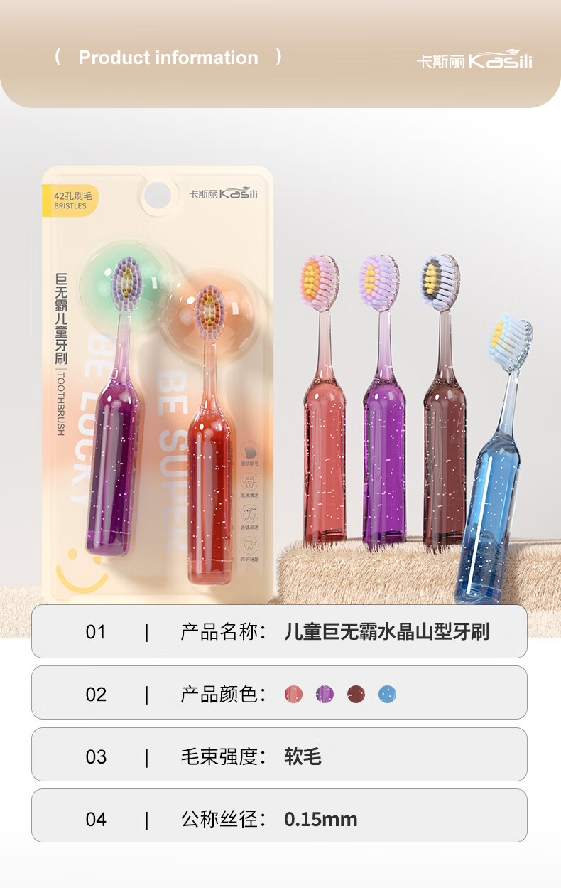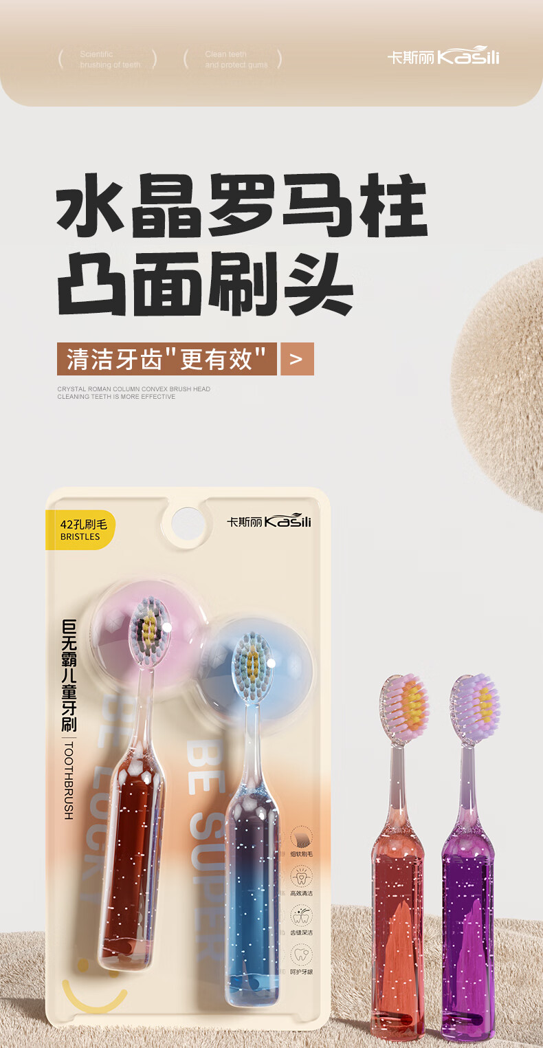 【】高档儿童罗马水晶柱山型凸面护龈乳牙刷软毛3-12岁 水晶巨无霸儿童牙刷* 2支