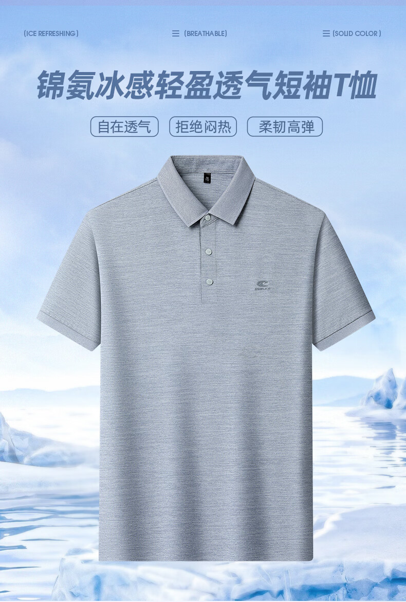SHANSHAN杉杉【锦氨弹力日常】短袖t恤男翻领POLO衫无痕商务通勤夏季新款 浅灰色 M /170