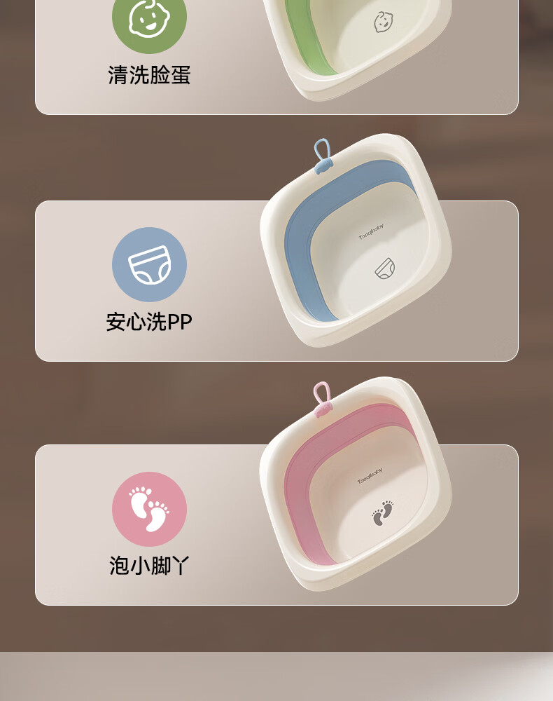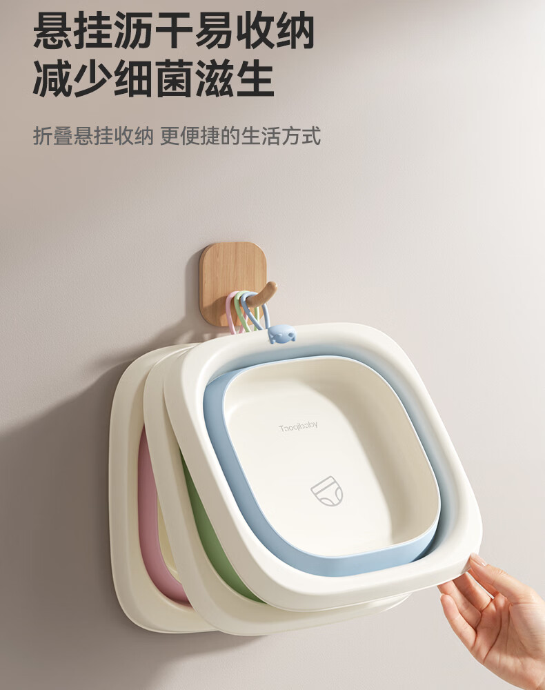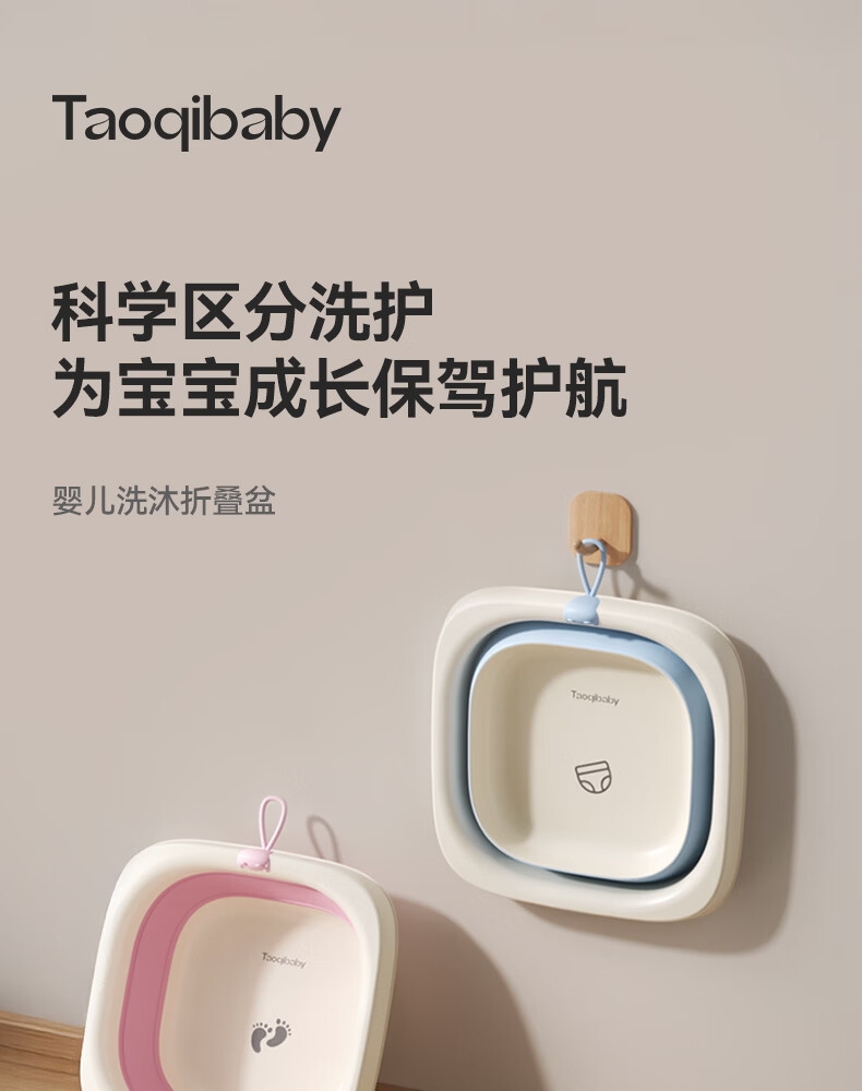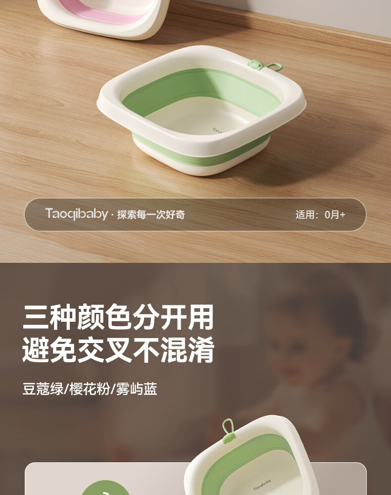 taoqibaby婴儿洗脸盆可折叠儿童洗屁屁洗脚专用盆 折叠洗脚盆-樱花粉【1个】
