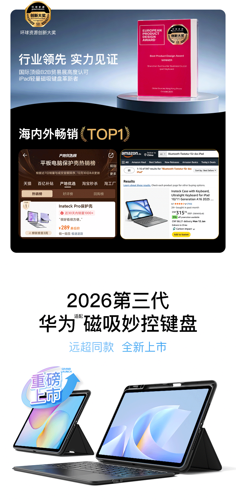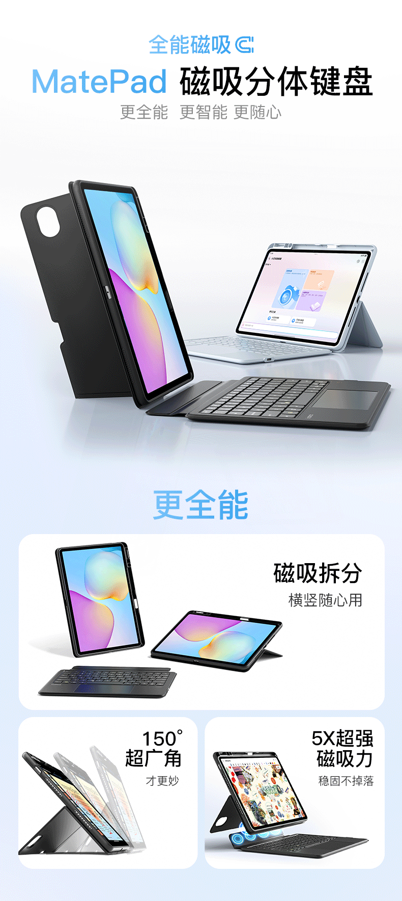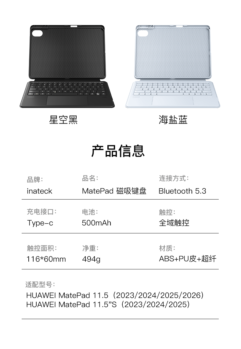 inateck适用华为平板26/25款matepad11.5/11.5s平板键盘保护套一体磁吸分体键盘蓝牙键盘妙控键盘便携键盘 星空黑 26/25款MatePad 11.5/11.5S
