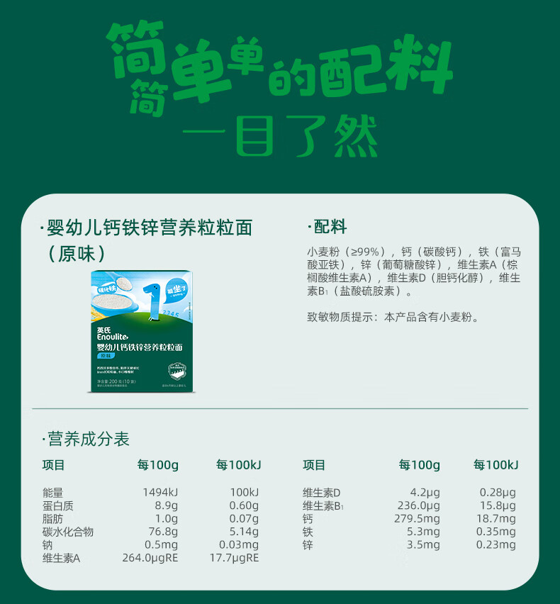 英氏婴幼儿钙铁锌粒粒面200g 辅食宝宝面颗粒面早餐面食 采销真验厂