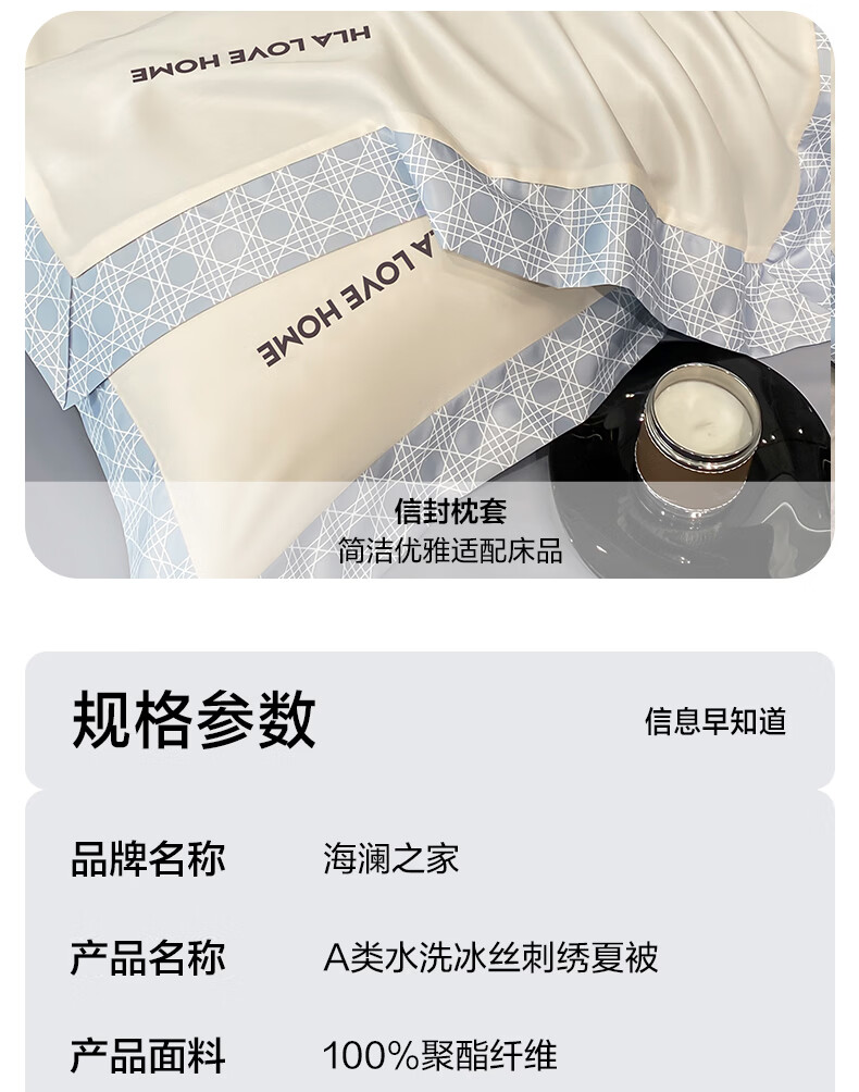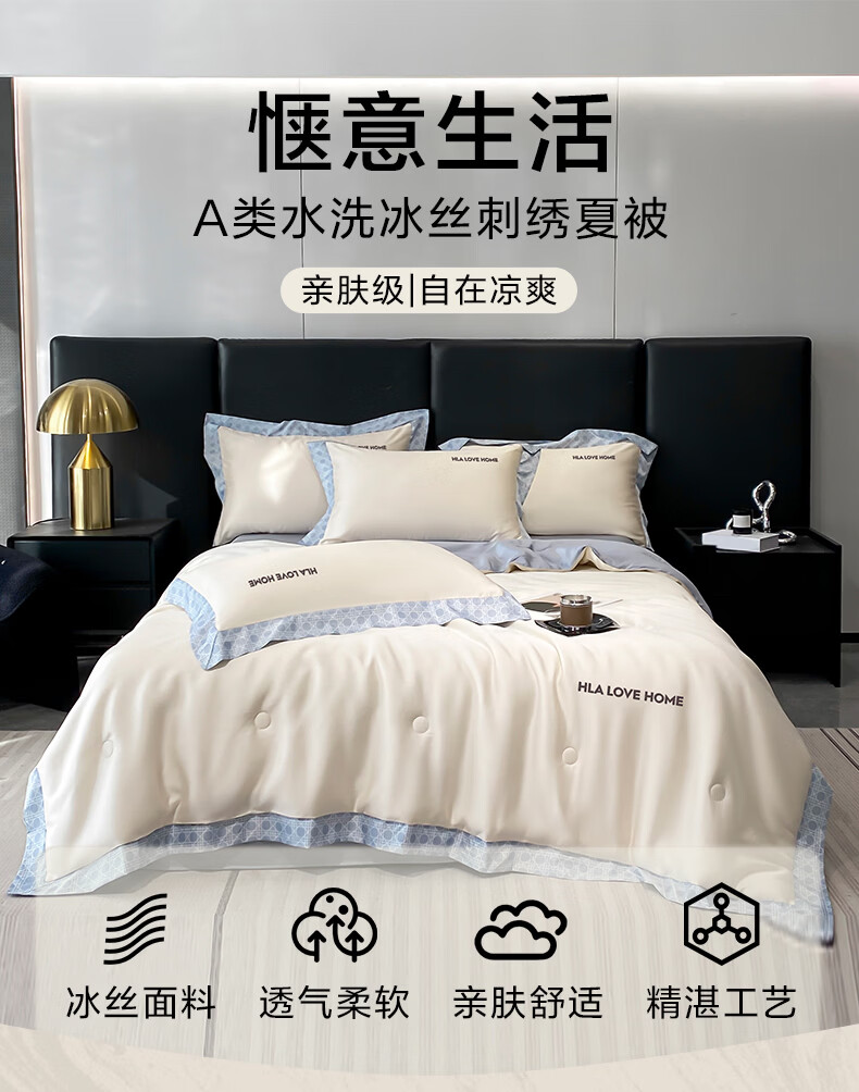 海澜之家(HLA)A类冰丝夏凉被单双人凉感可水洗空调被2026新款被芯被子200x230cm 奶昔白+海青【黑科技凉感冰丝 丝滑裸睡】 单夏被150*200cm【A类柔滑亲肤 可机洗】