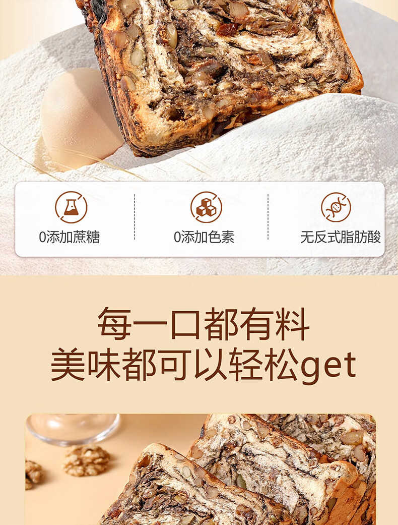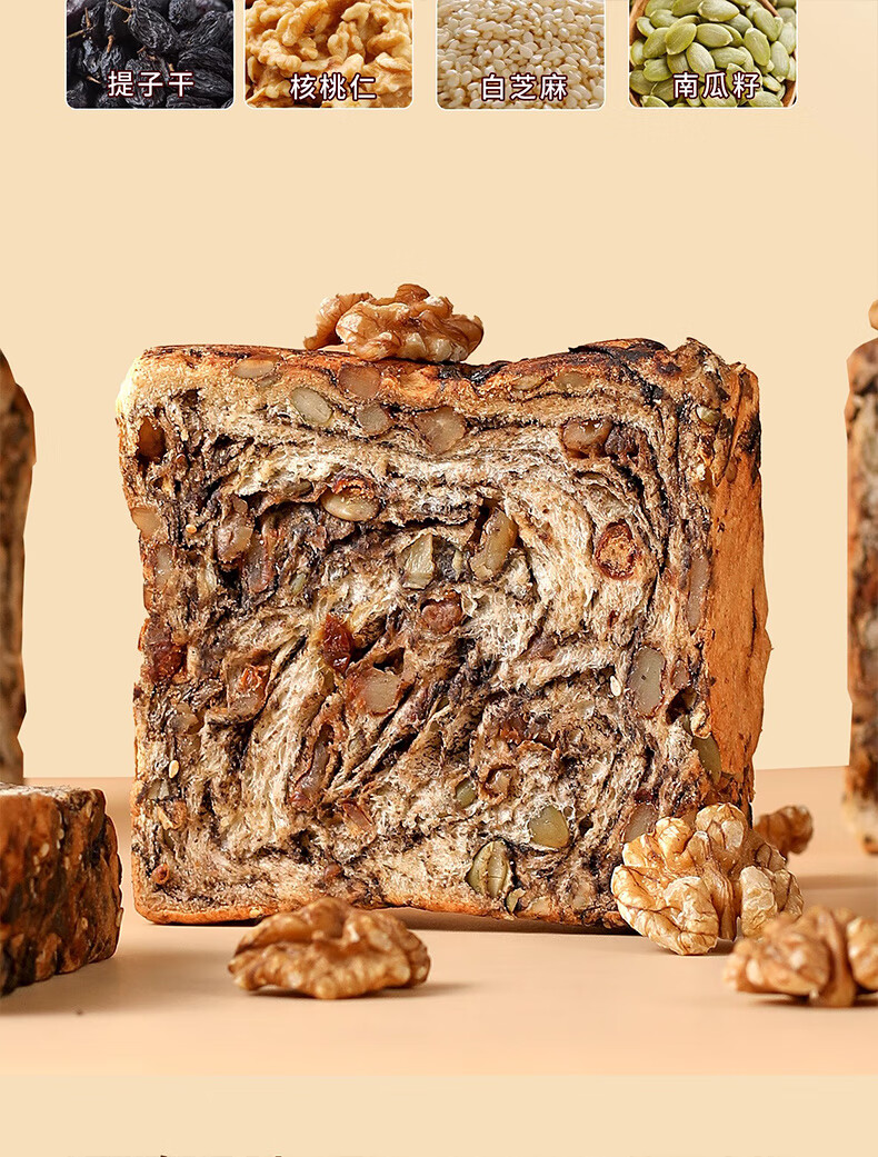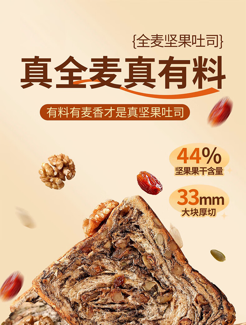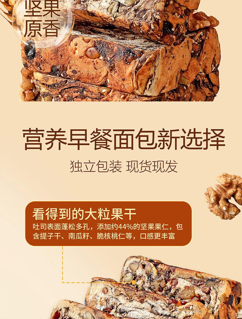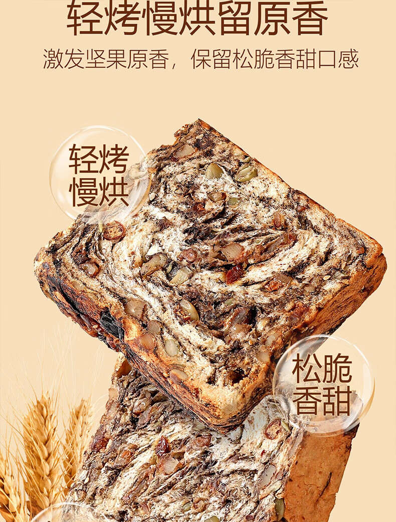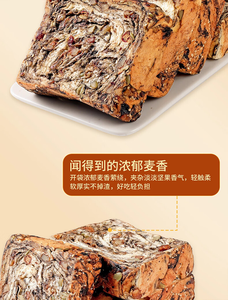 倍绝0蔗糖真全麦高钙奶香坚果厚切千层吐司面包切片早餐零食饱腹学生 坚果吐司400g*1箱