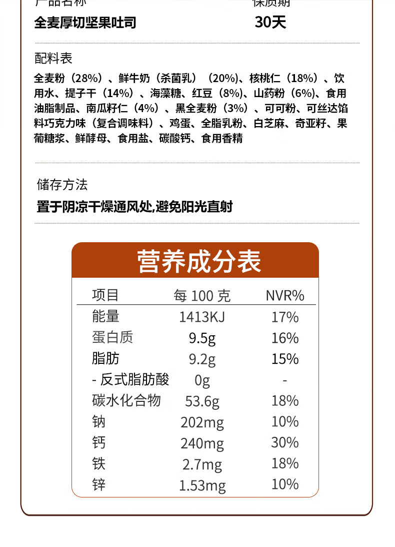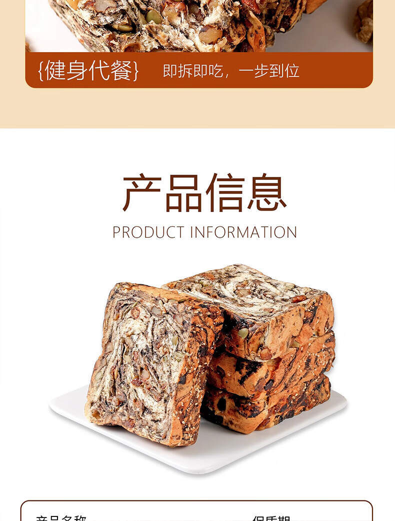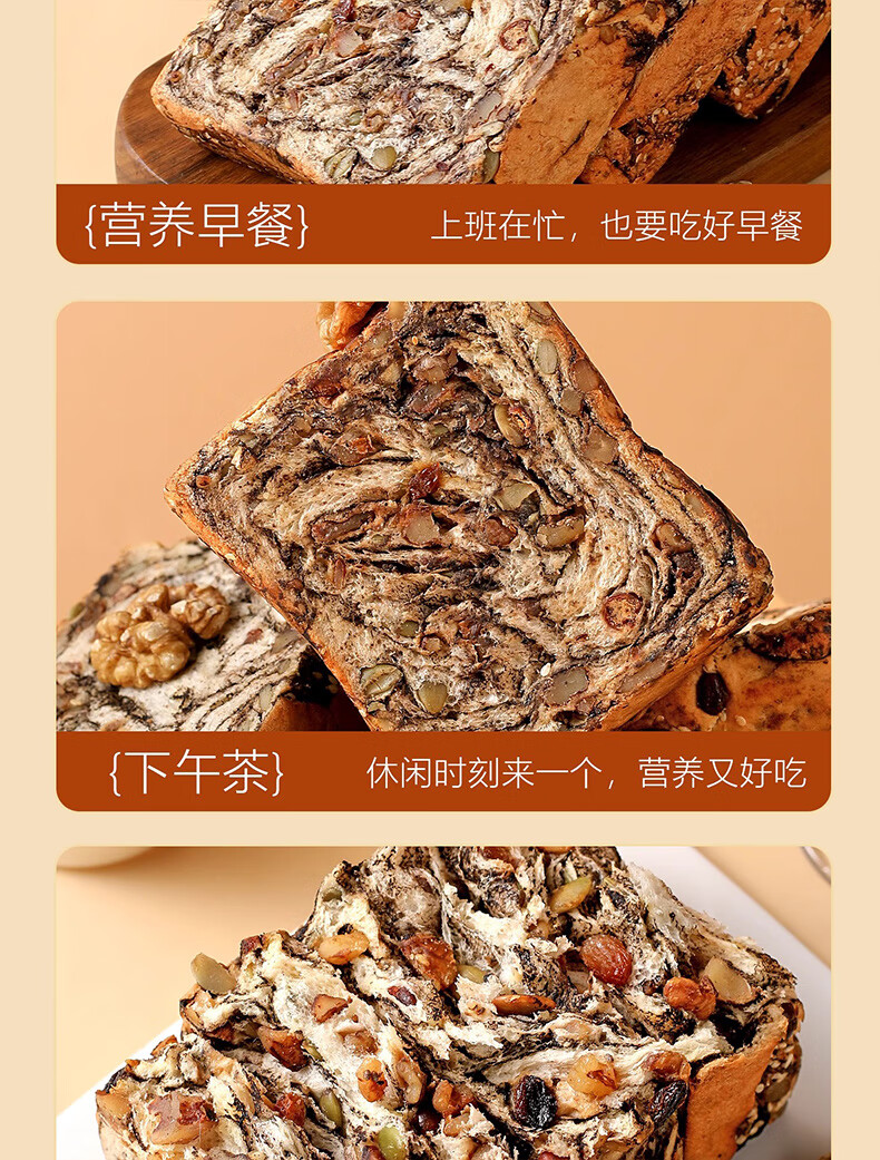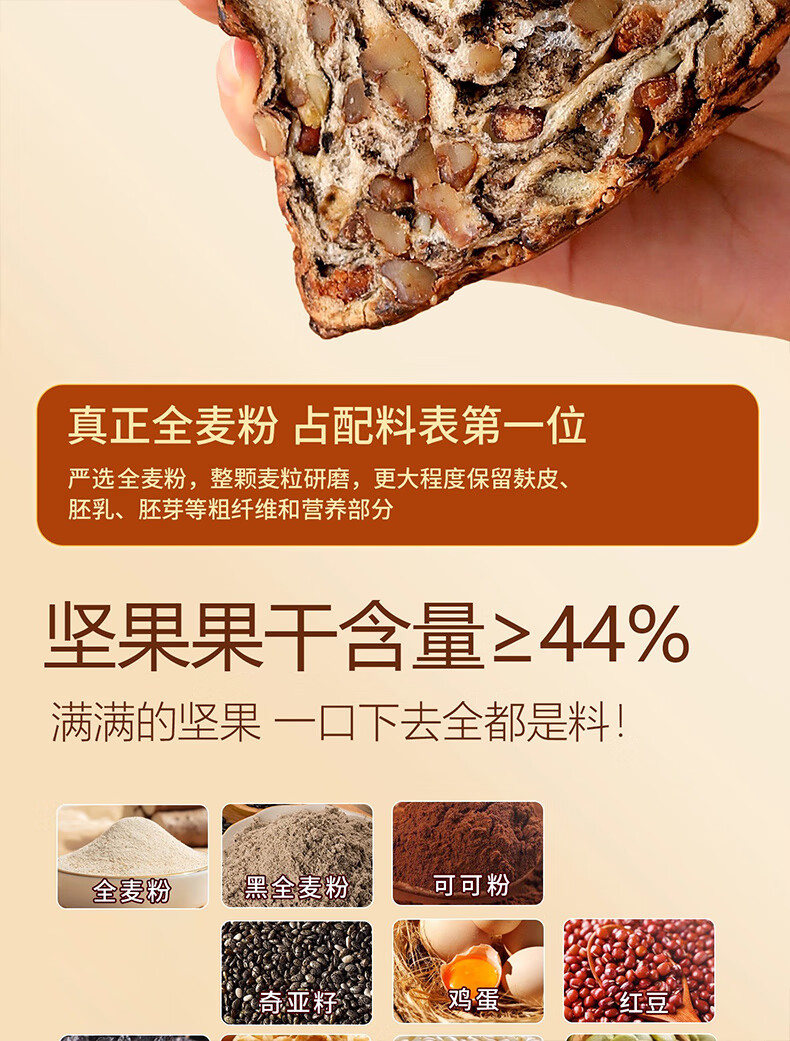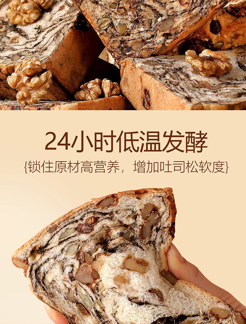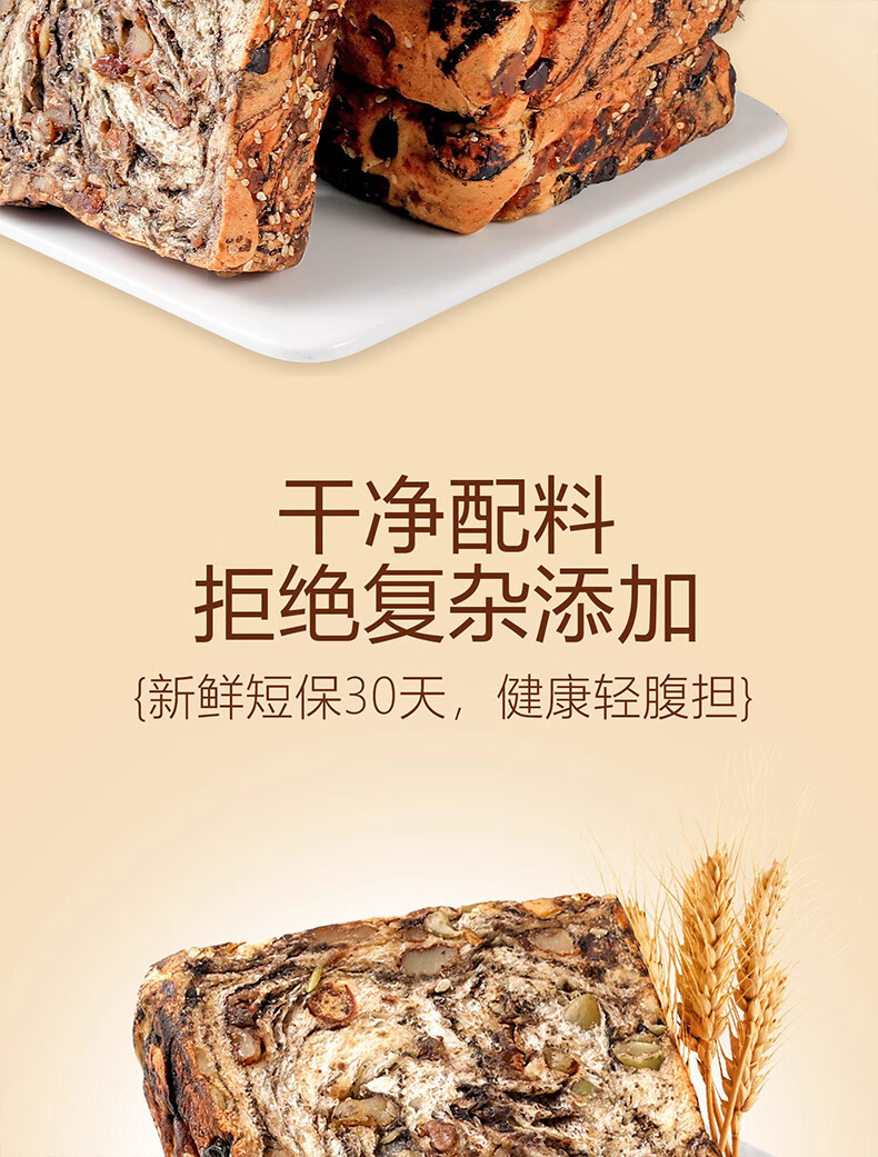 倍绝0蔗糖真全麦高钙奶香坚果厚切千层吐司面包切片早餐零食饱腹学生 坚果吐司400g*1箱