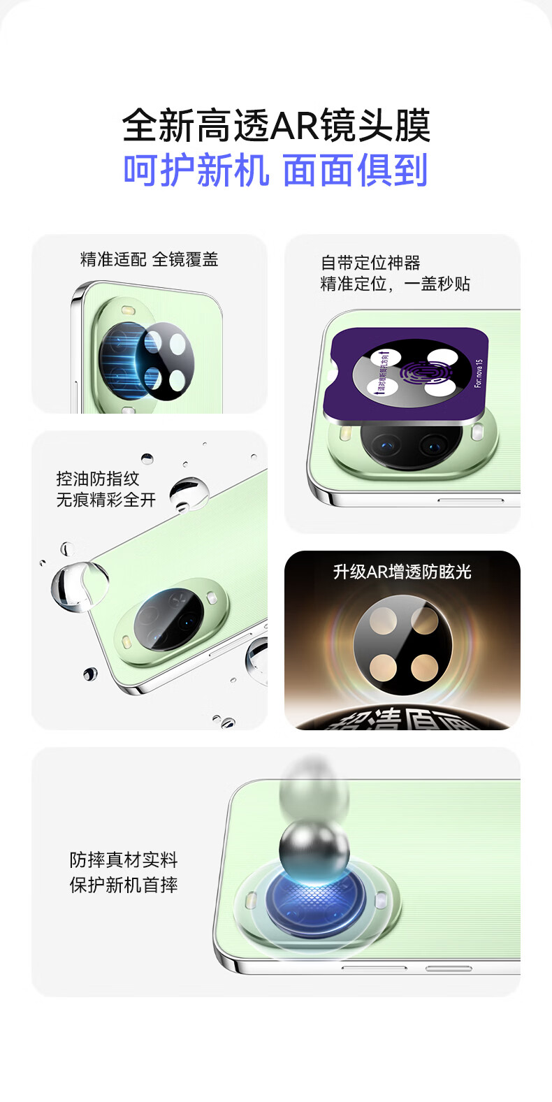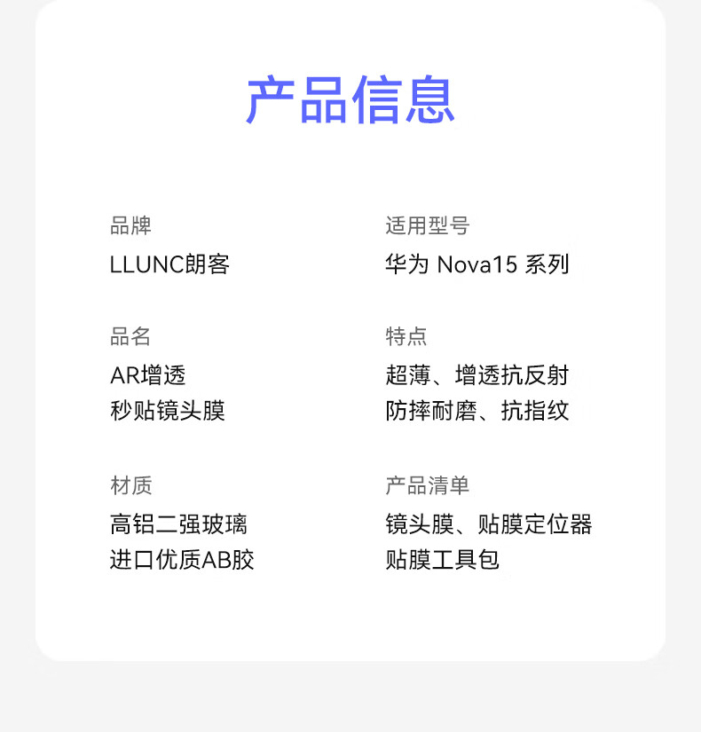 朗客【AR增透高清】适用华为nova15镜头膜nova15手机镜头膜后置摄像头钢化膜防刮防眩光自动定位保护膜