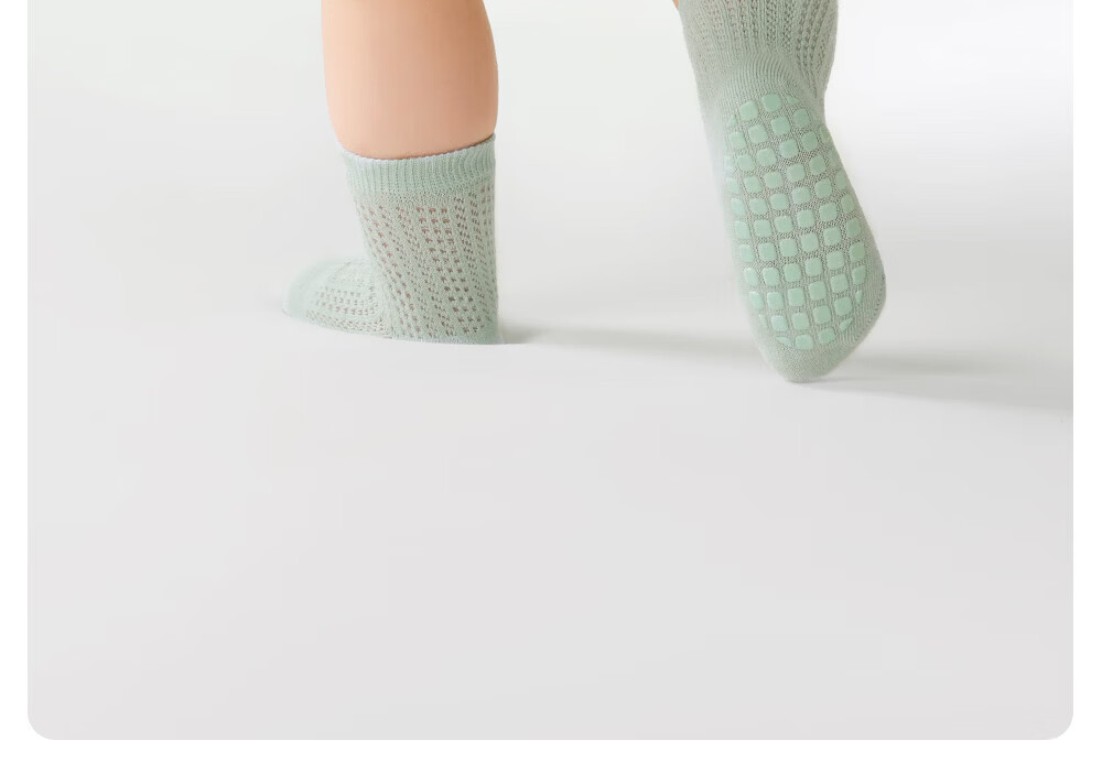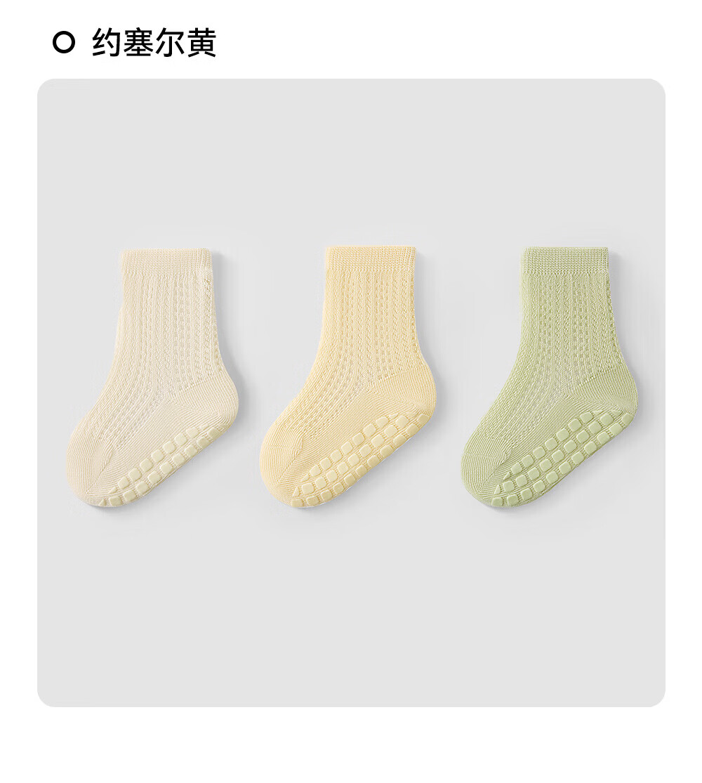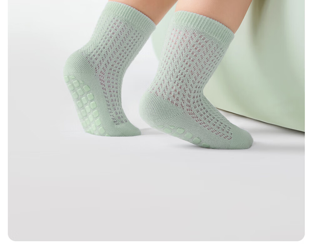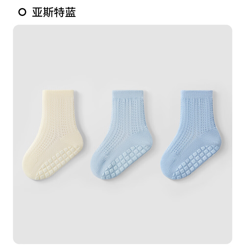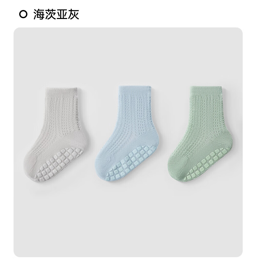 贝肽斯宝宝防滑地板袜夏婴儿袜子薄款网眼儿童学步室内中筒袜子 海茨亚灰 3双 1-3岁 【适合脚长12-14cm】