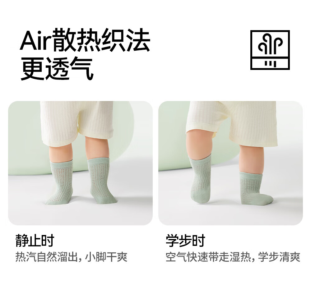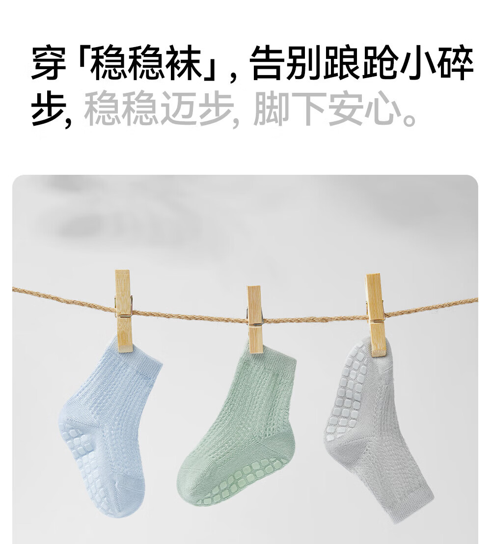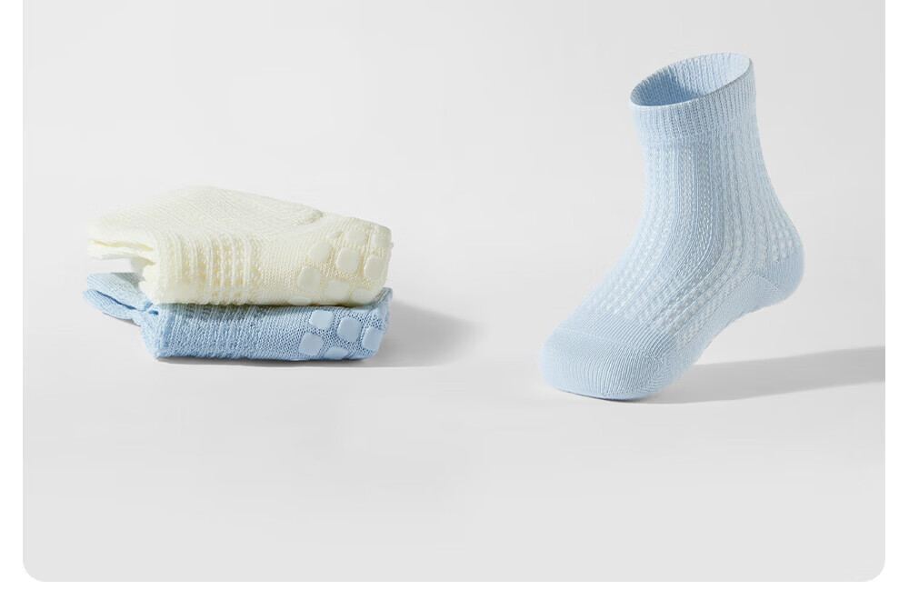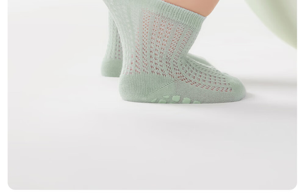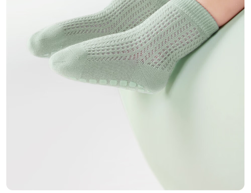 贝肽斯宝宝防滑地板袜夏婴儿袜子薄款网眼儿童学步室内中筒袜子 海茨亚灰 3双 1-3岁 【适合脚长12-14cm】