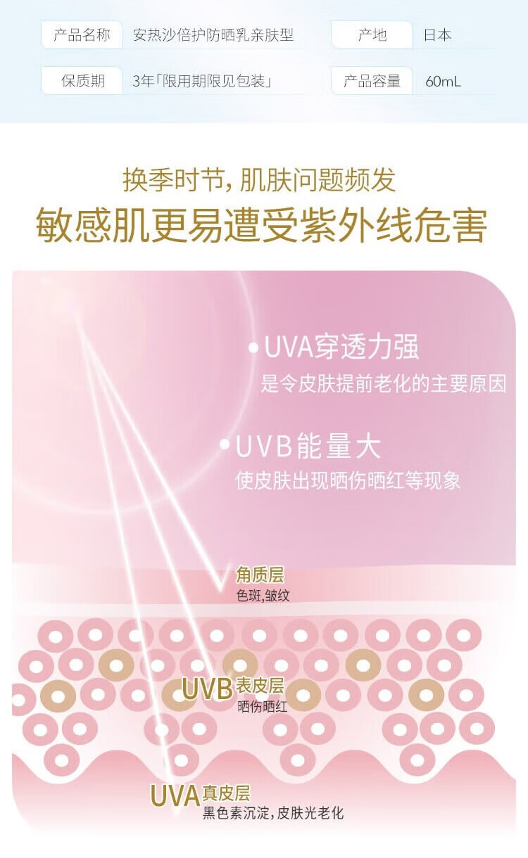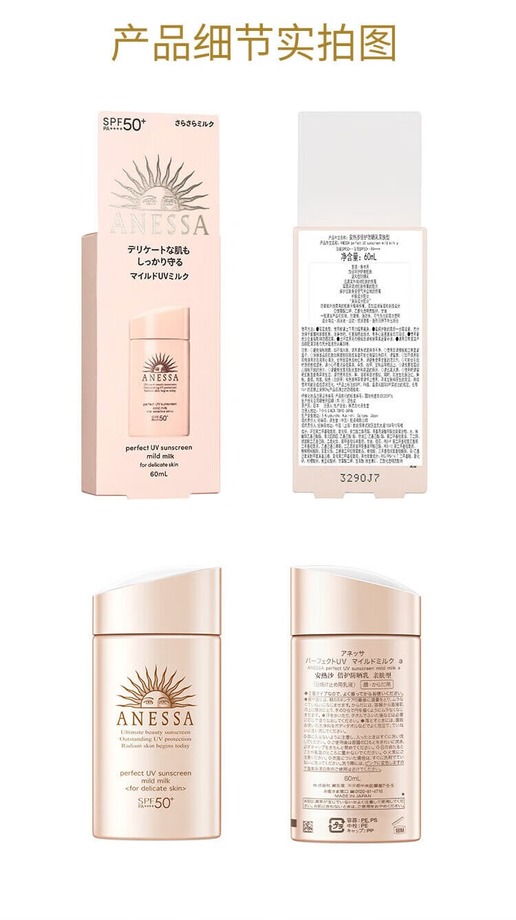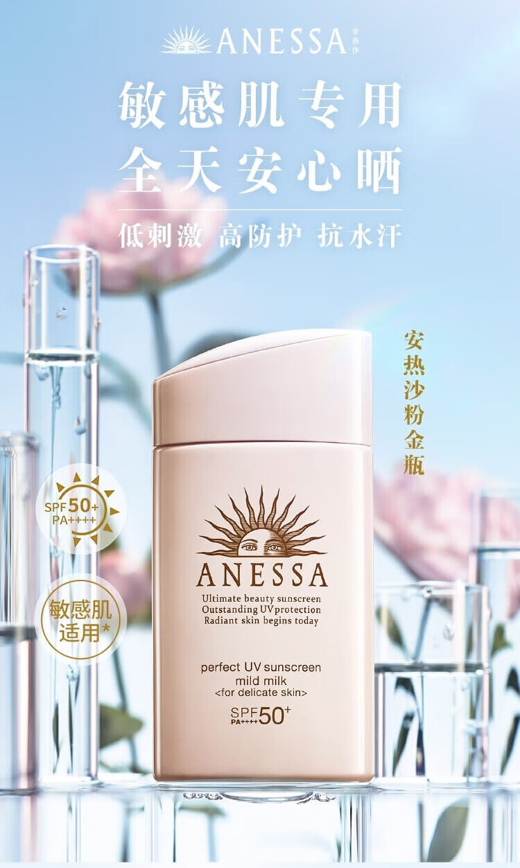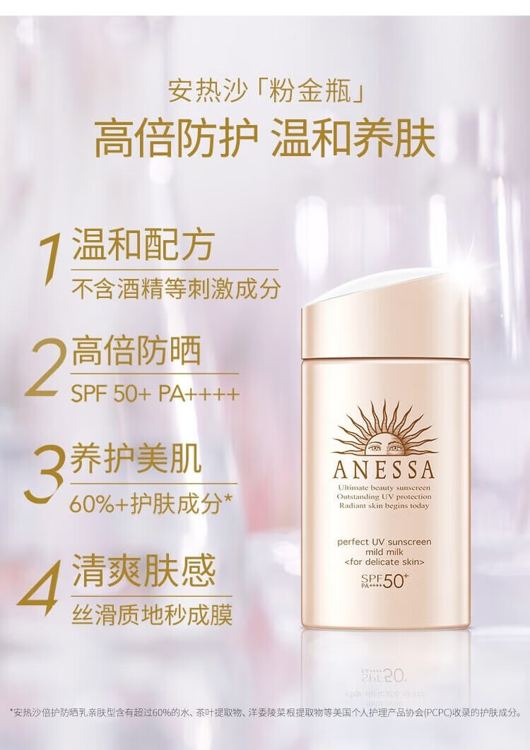 安热沙(Anessa)倍护防晒乳亲肤型粉金瓶60ml+倍呵防晒乳25ml防晒霜京东自营