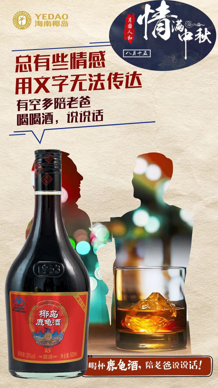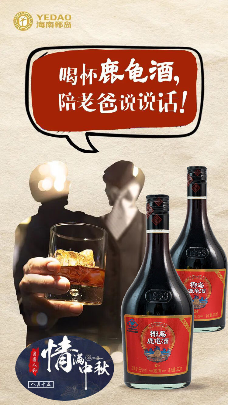 YEDAO海南椰岛鹿龟酒悦润礼盒装500ml*2瓶送亲戚孝敬父母自饮33度酒 33%vol 500mL 2瓶 *1悦润礼盒装