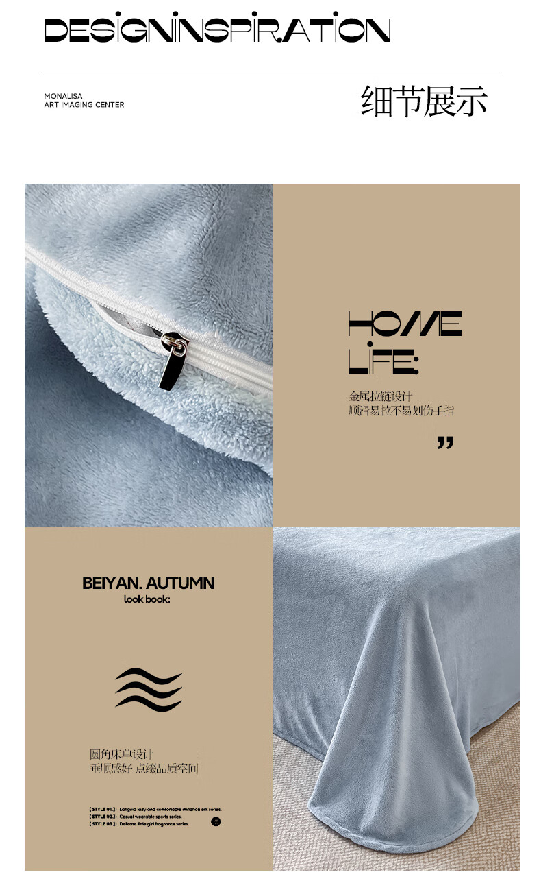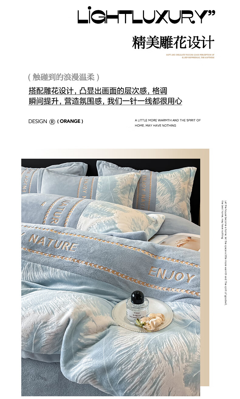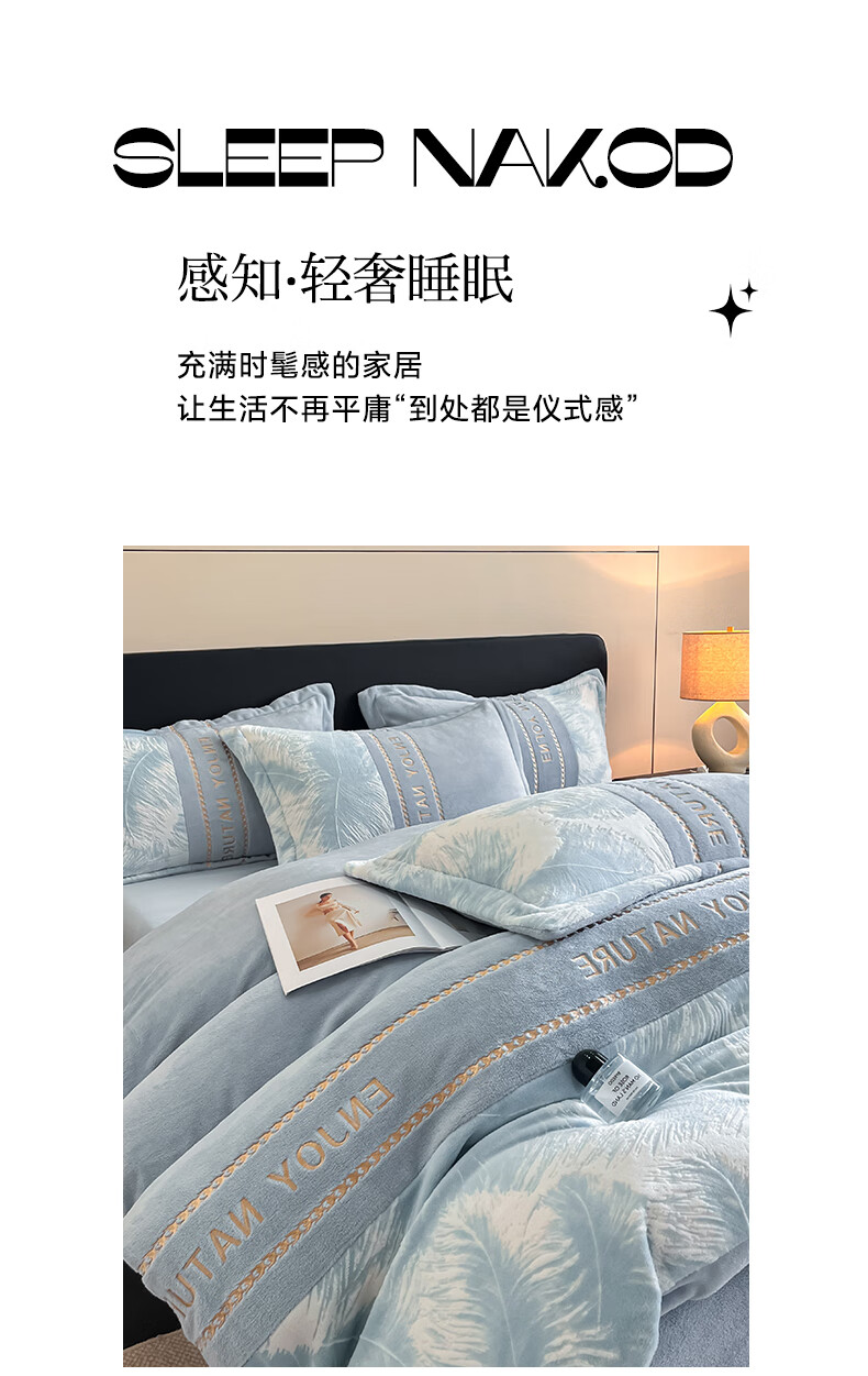 VJE轻奢高级感牛奶绒床上四件套秋冬季珊瑚绒法兰绒双面加绒被套床单 飞羽-繁星蓝 三件套1.2m 床单款 -被套150*200cm