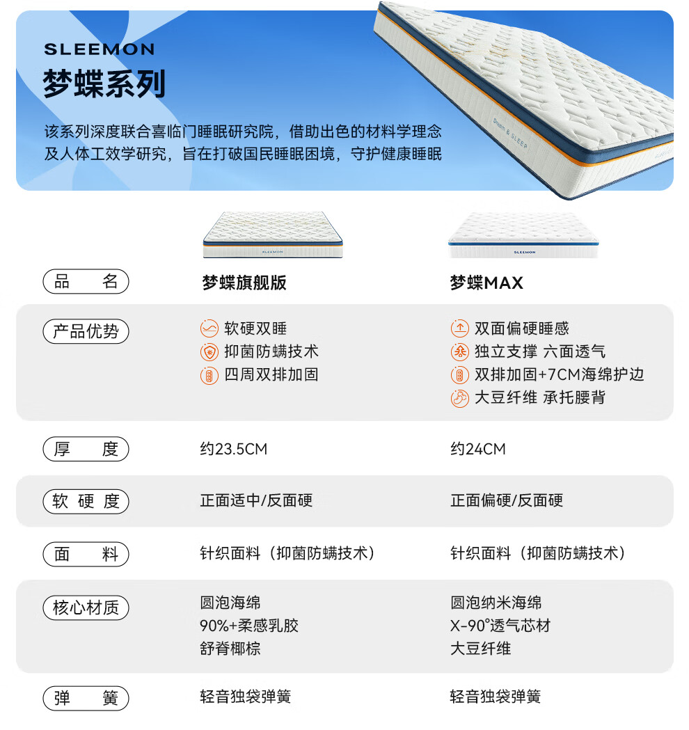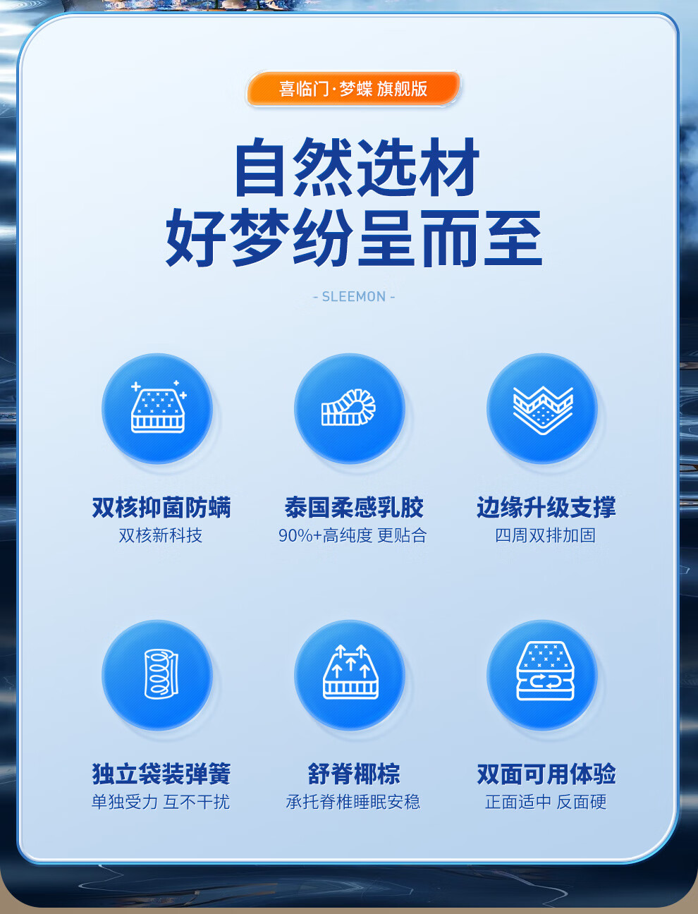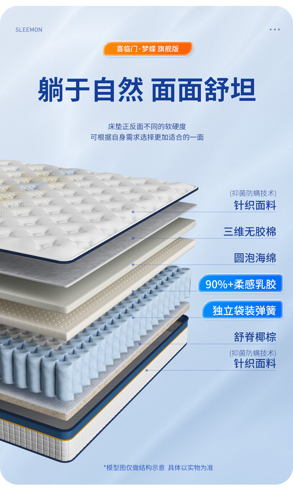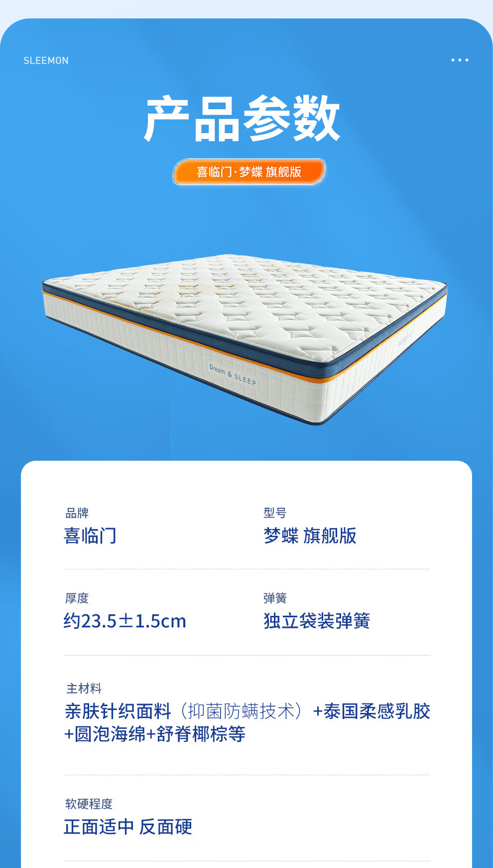喜临门梦蝶床垫 乳胶椰棕床垫抗菌防螨独袋弹簧床垫 1.8x2米 软硬适中