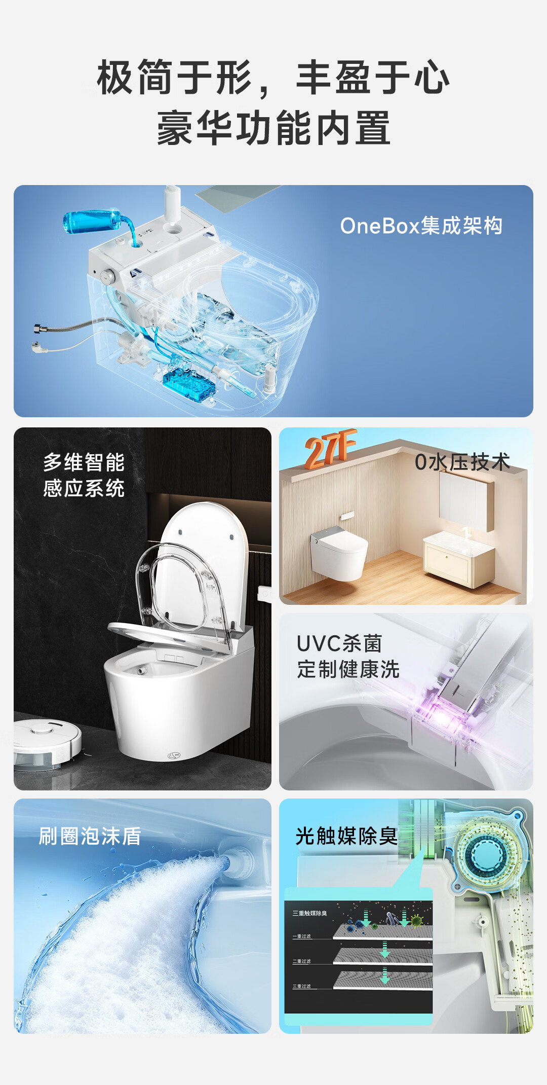九牧(JOMOO)轻智能马桶泡沫盾大座圈家用马桶一体机虹吸坐便器白魔方SQ8450 【旋风魔力泡】0压限制+脚感冲水 305坑距(290-390以内选择)