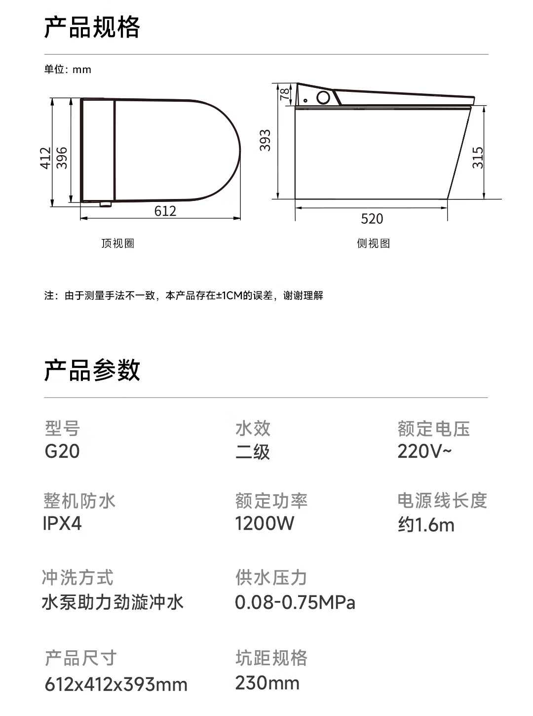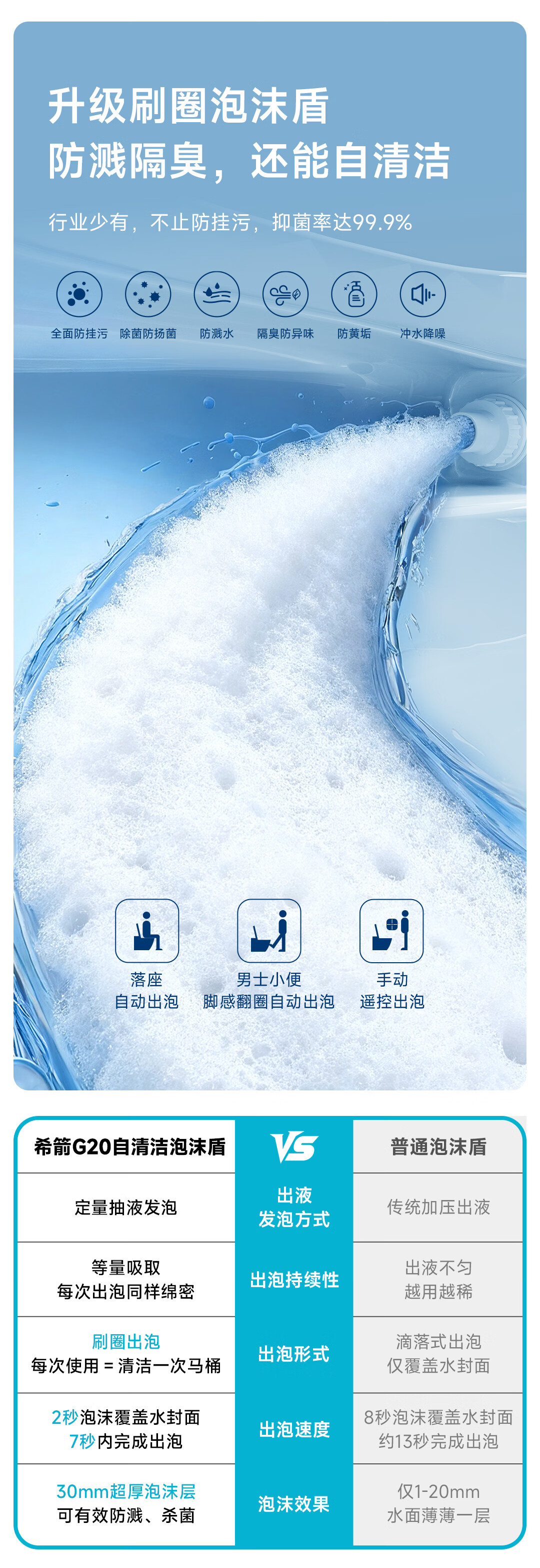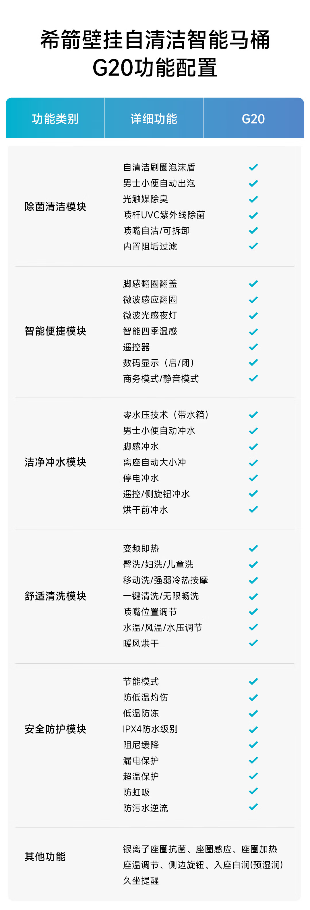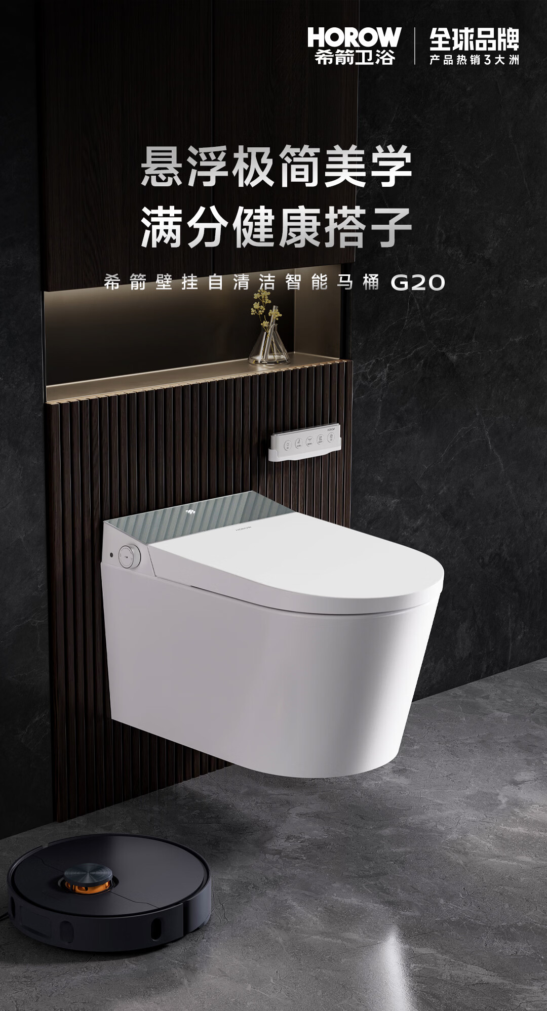 希箭(HOROW)G20零水压限制内置水箱挂式智能马桶O2O(不含安装) 壁挂式全智能马桶G20【0水压技术、刷圈泡沫盾】 305/300mm