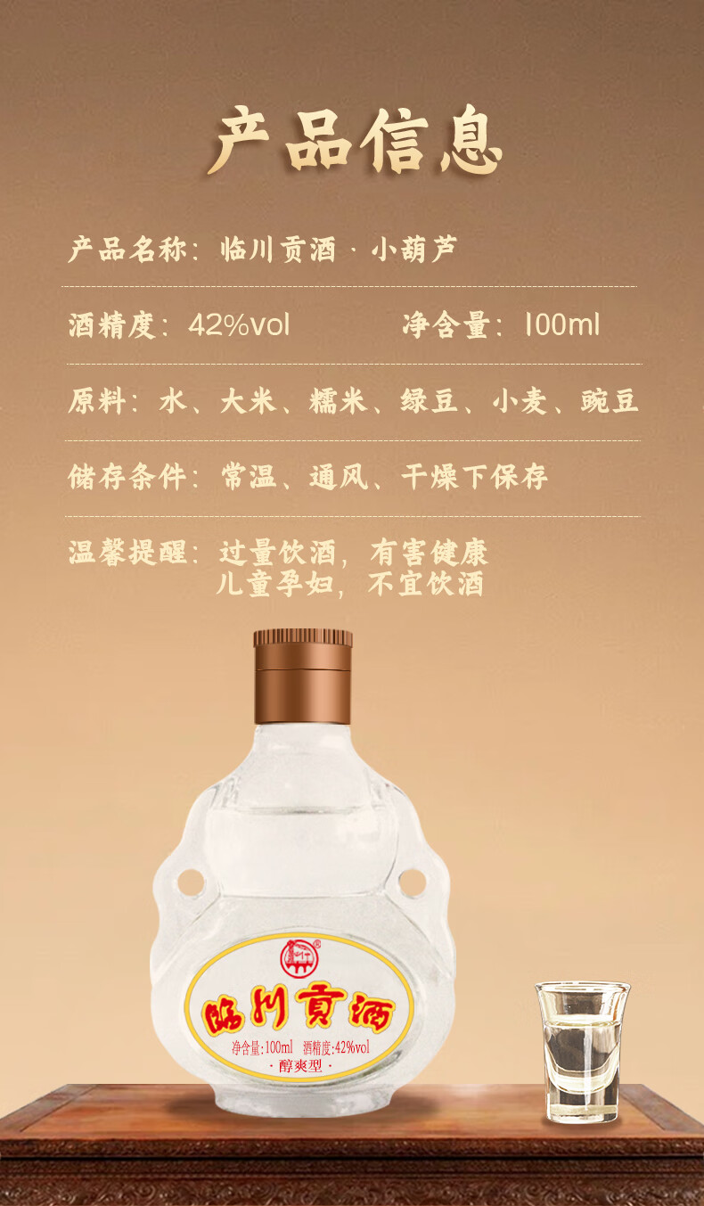 临川贡酒 小葫芦 醇爽型白酒 42度 100ml 品鉴装 江西口粮酒聚会