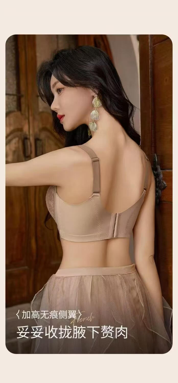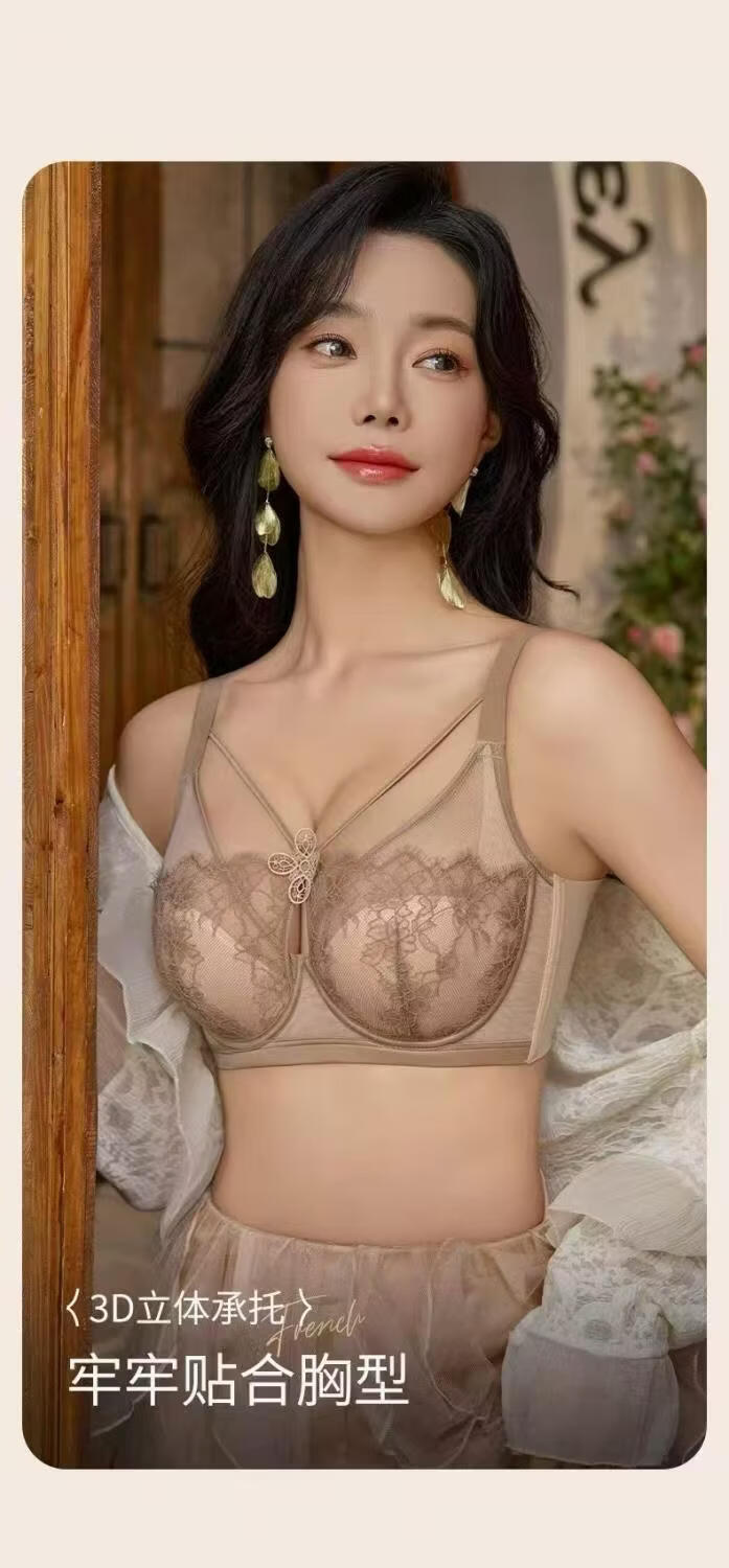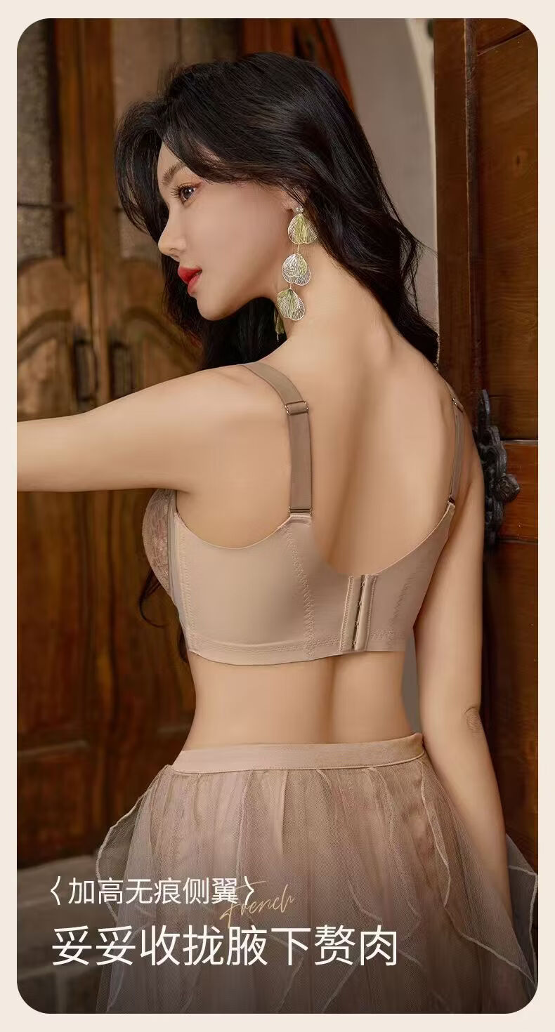 法式性感蕾丝提拉文胸大胸显小内衣女薄款软钢圈防下垂调整型胸罩 肤色 100C 44/100C