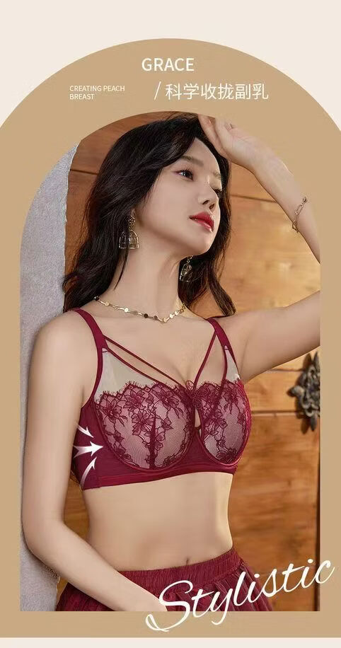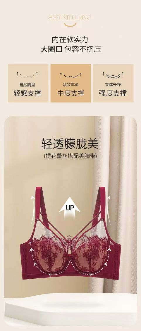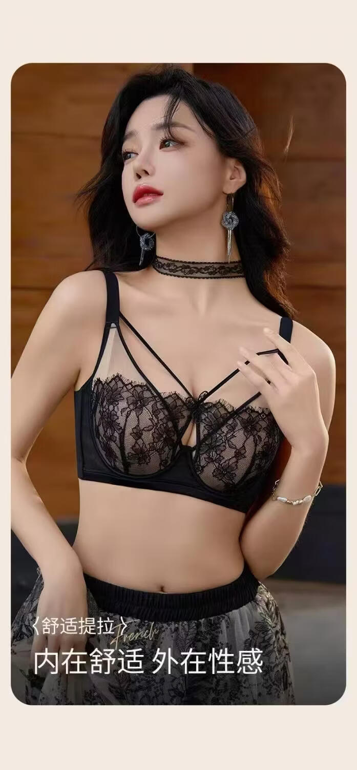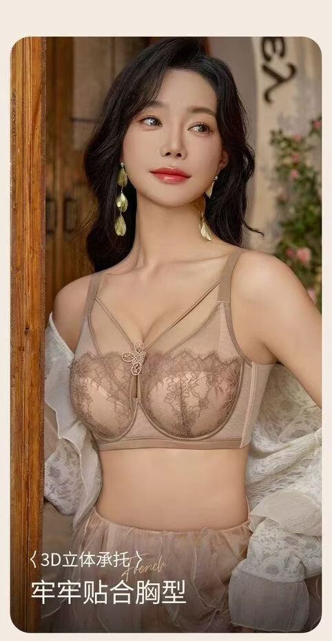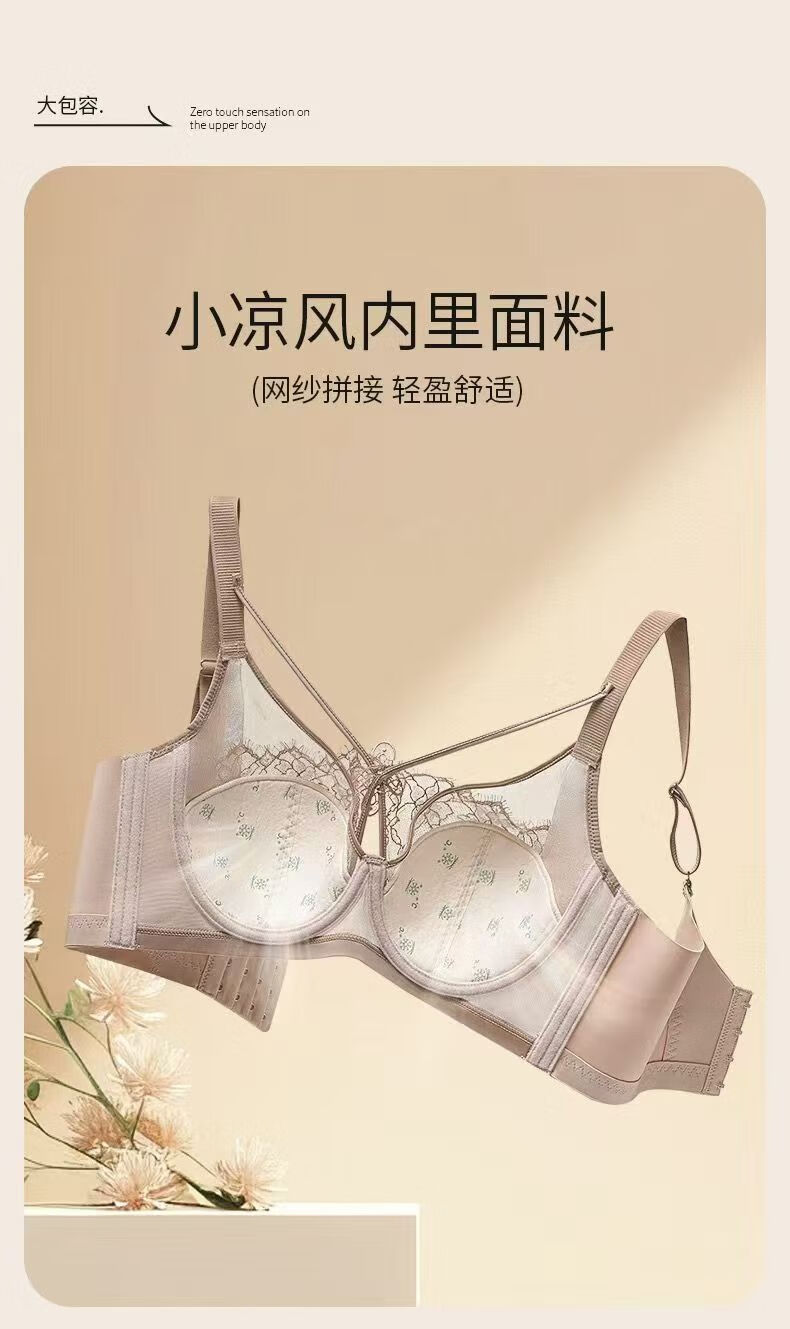 法式性感蕾丝提拉文胸大胸显小内衣女薄款软钢圈防下垂调整型胸罩 肤色 100C 44/100C
