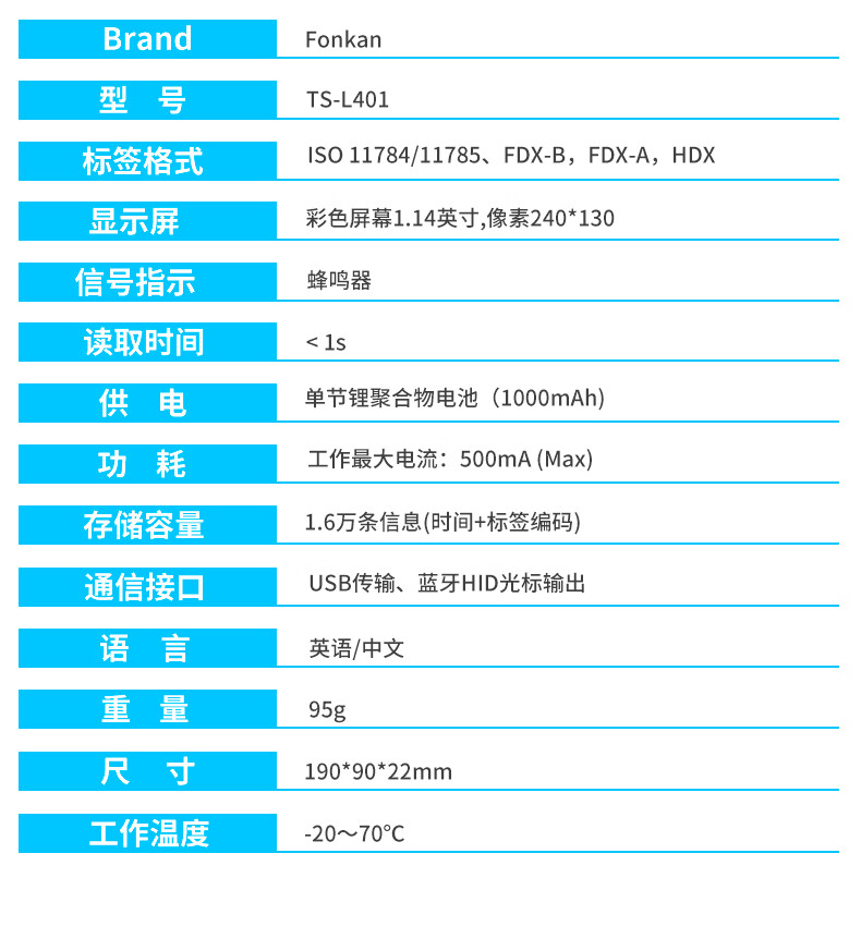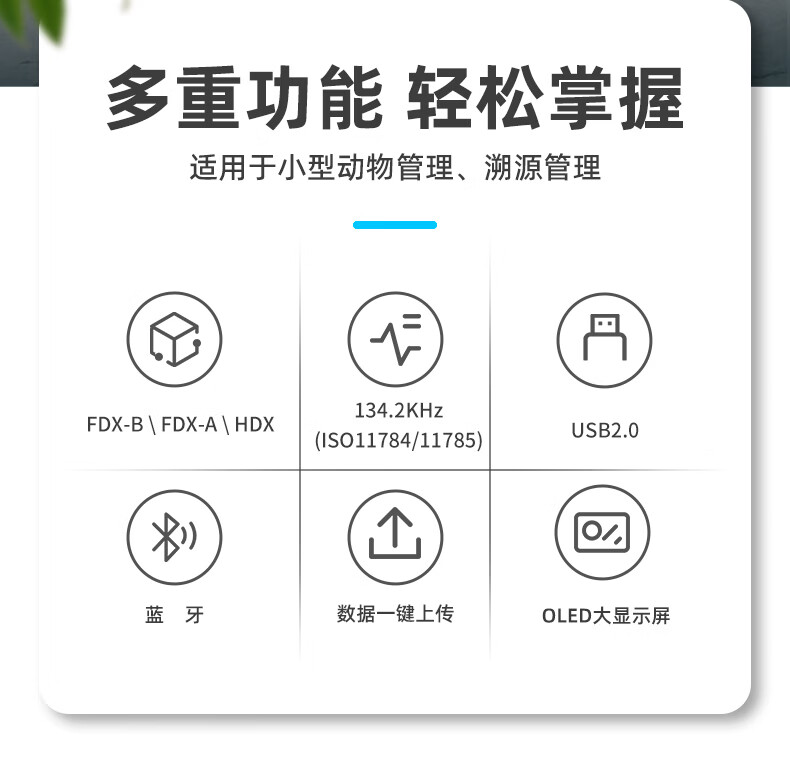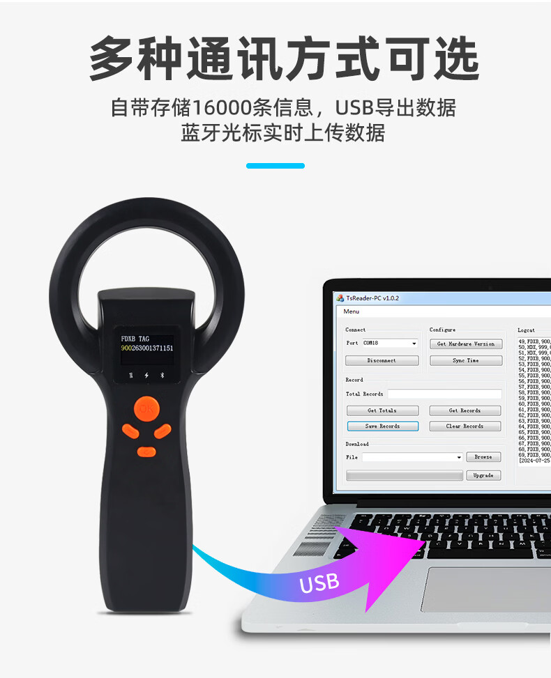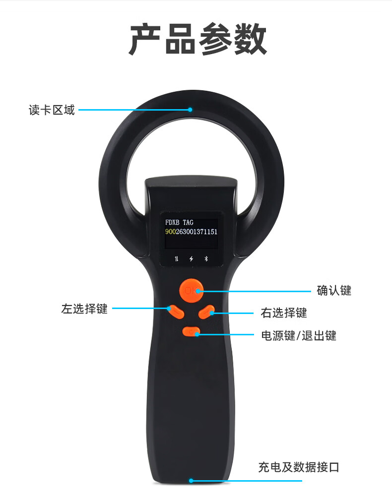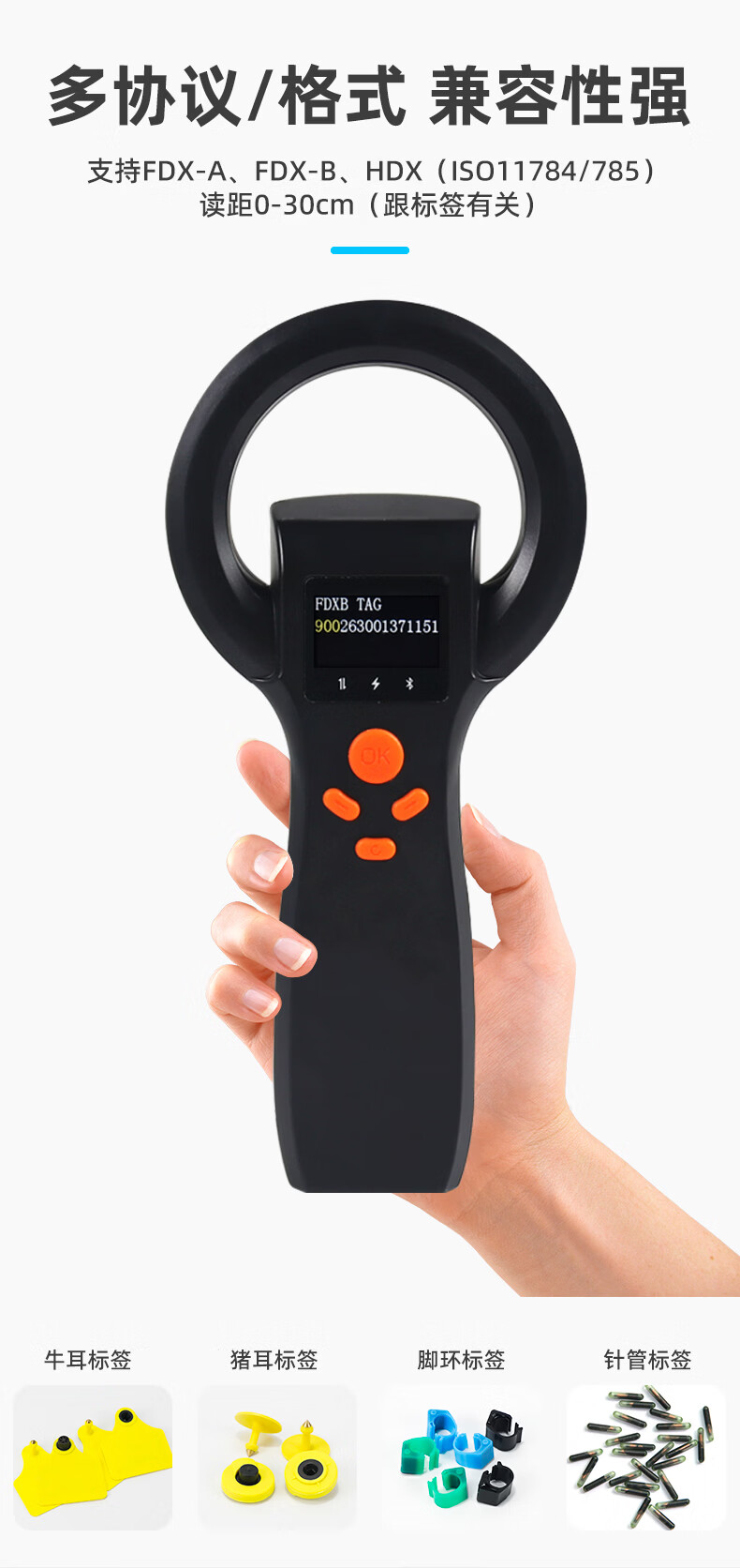FONKAN动物芯片扫描仪FDX-B/A HDX 鱼、脚环、耳标电子扫描器16000条数据储存/蓝牙/usb传输芯片读取器 FDX-A/B/HDX(ISO11784/785)