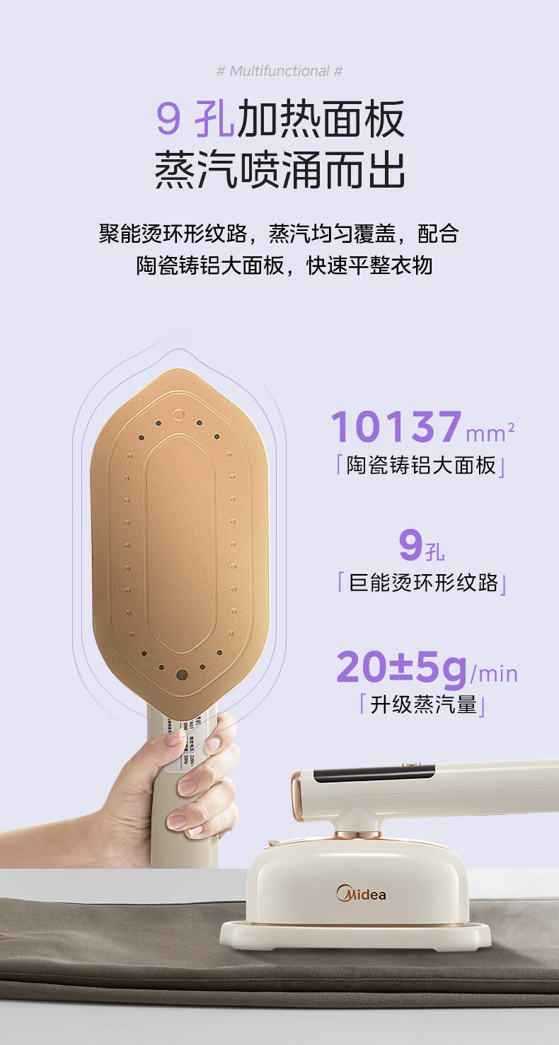 美的(Midea)【智能数显】手持挂烫机/电熨斗25g/min大蒸汽120ml水箱家用便携小型熨烫机商用拼豆礼物YBD12AG1