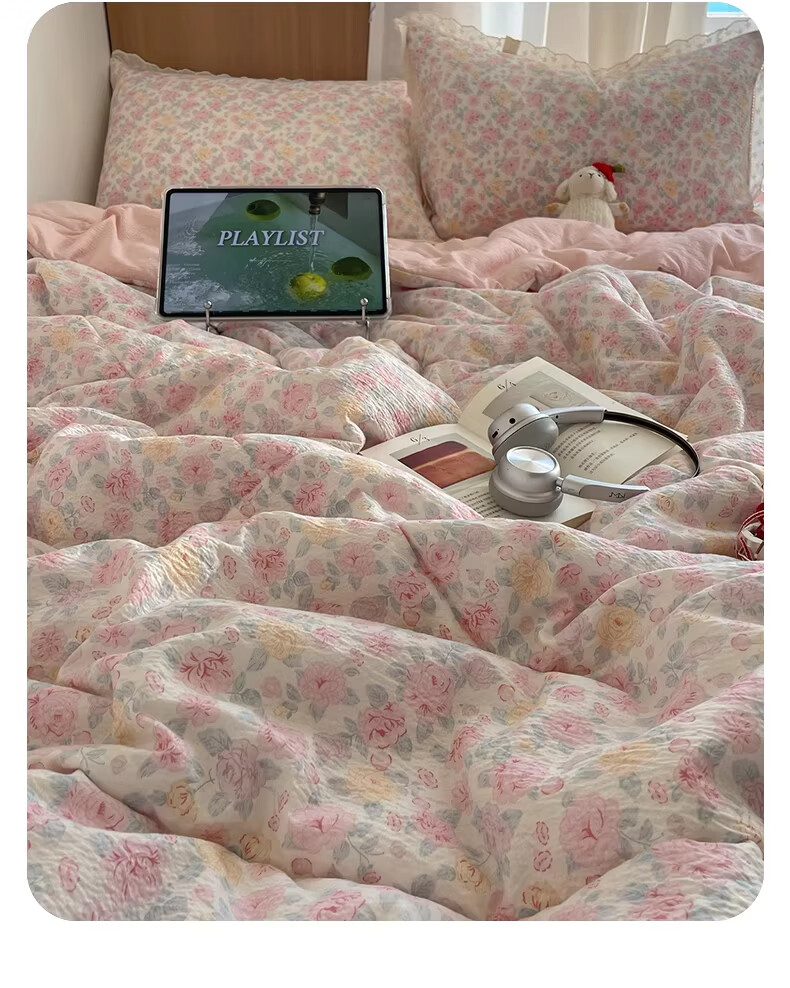 无印良品全棉床品四件套纯棉100%小清新花卉风单双人四季通用可裸睡三件套 苏屿【全棉面料 清新印花】 1.8m 床单款 被套200*230cm