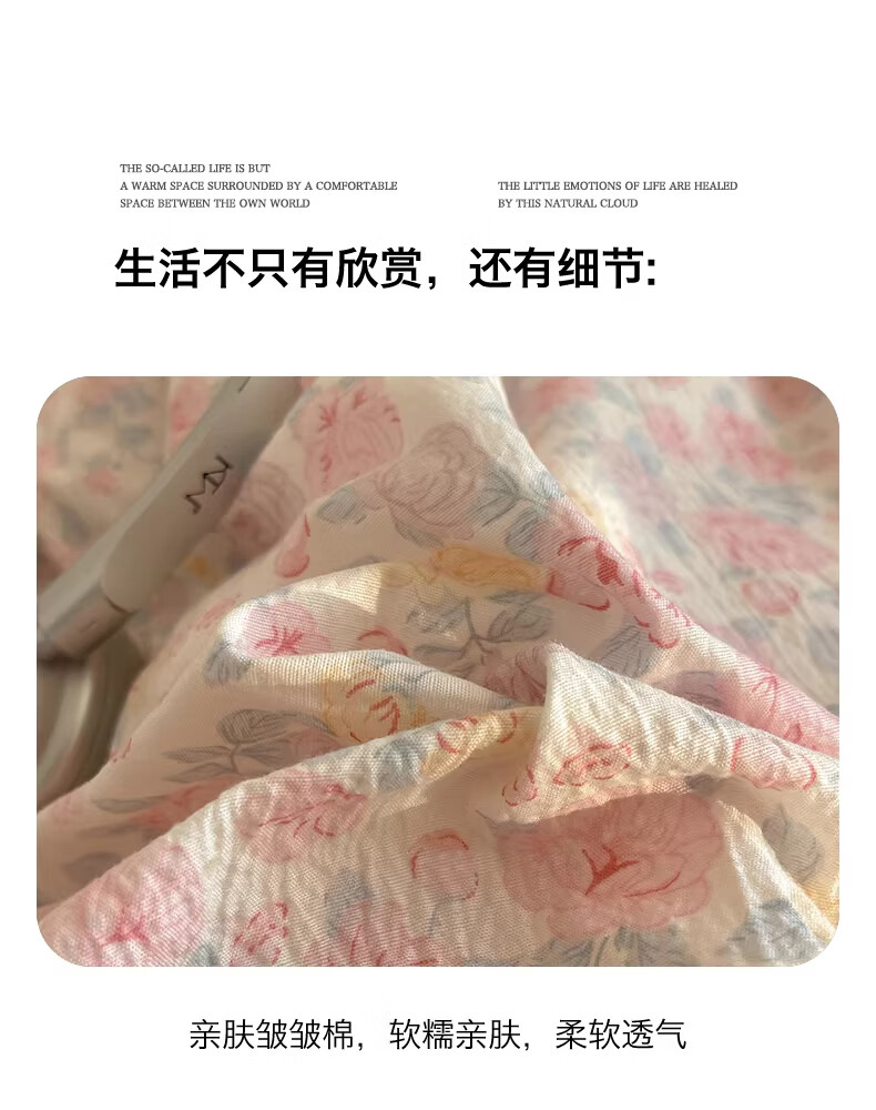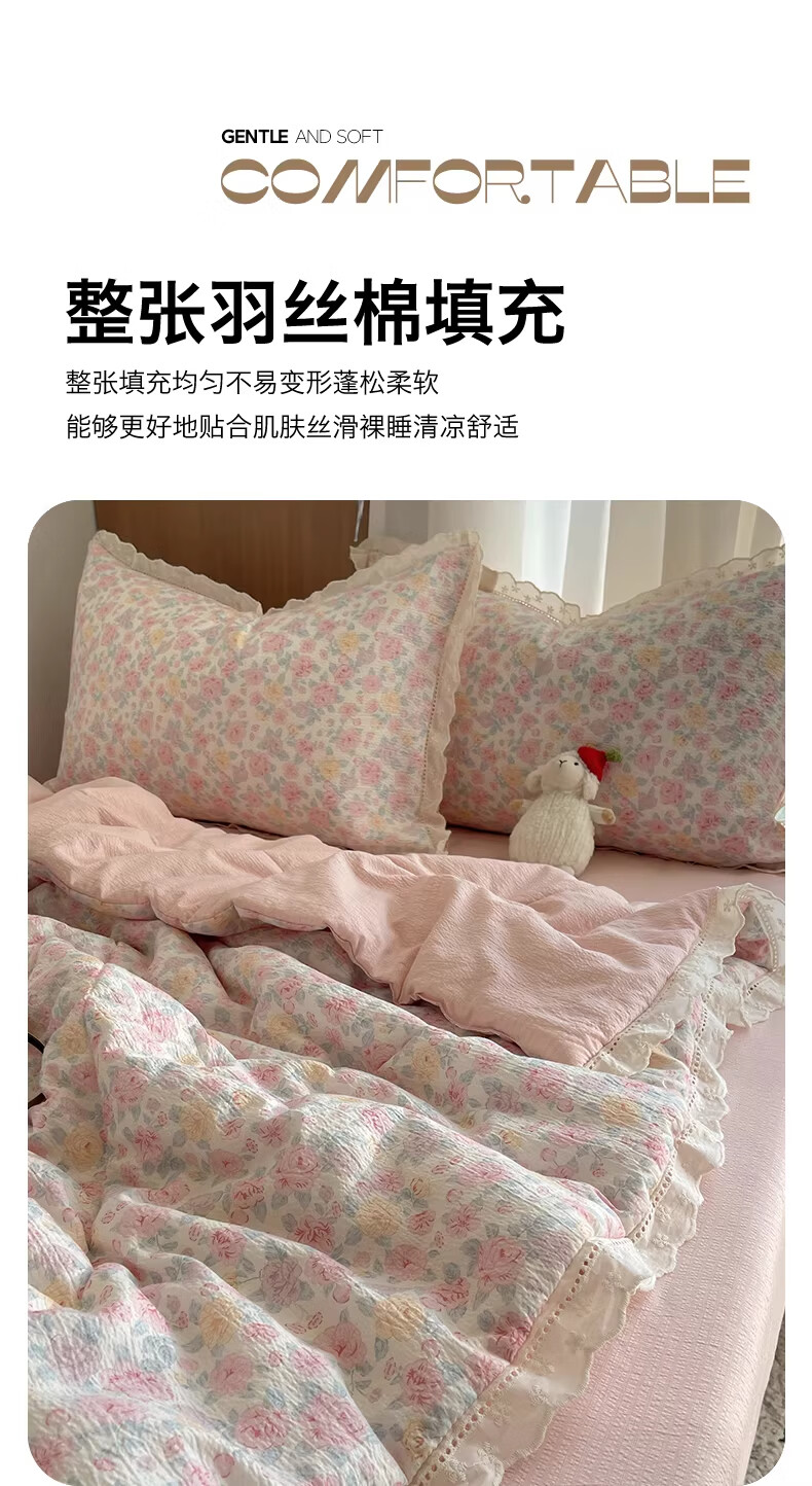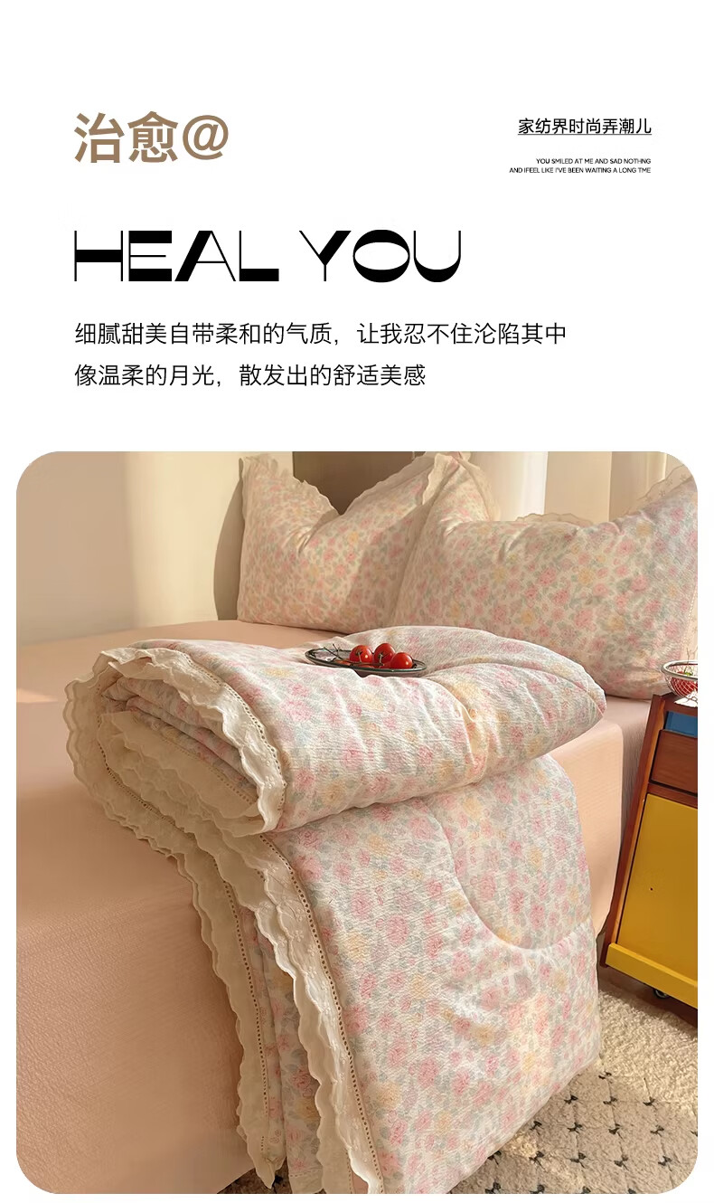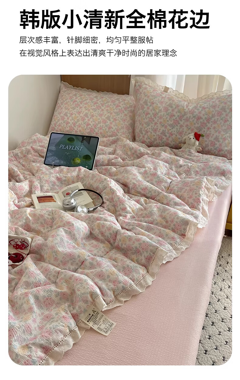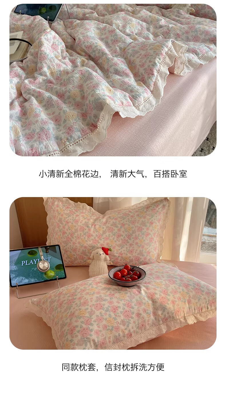 无印良品抗菌全棉花边夏凉被子夏季空调被可机洗裸睡单人夏被皱皱纱薄被子 粉黛蔷薇【10A抗菌 全棉花边】 180x200cm单夏被