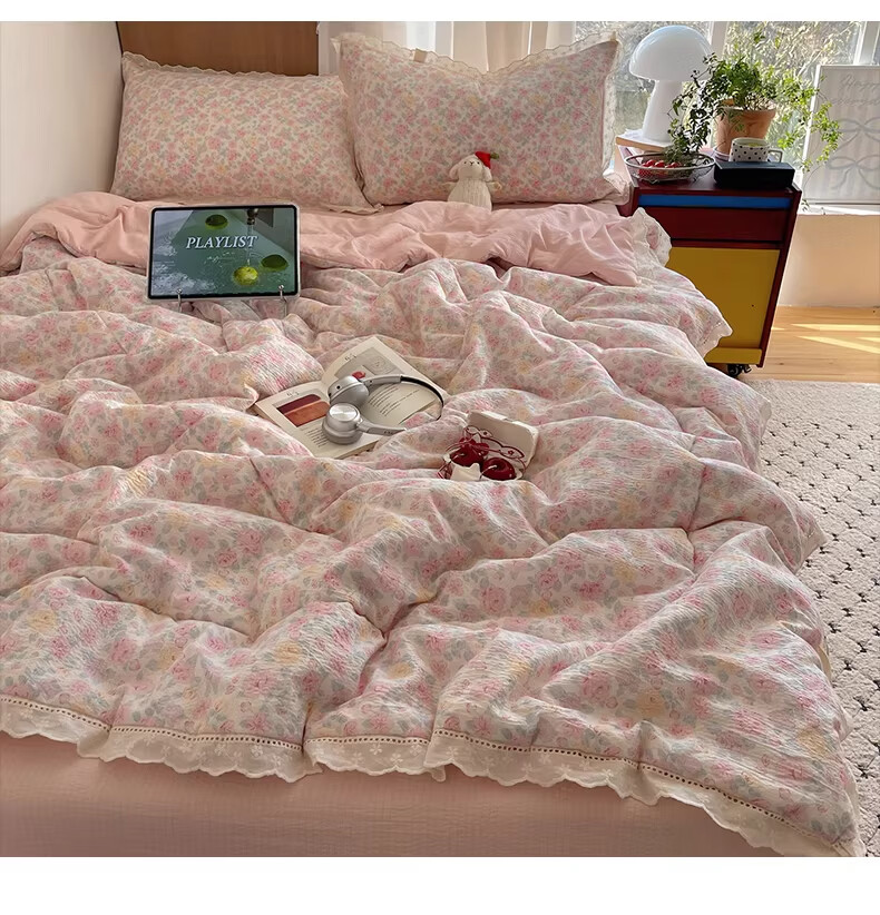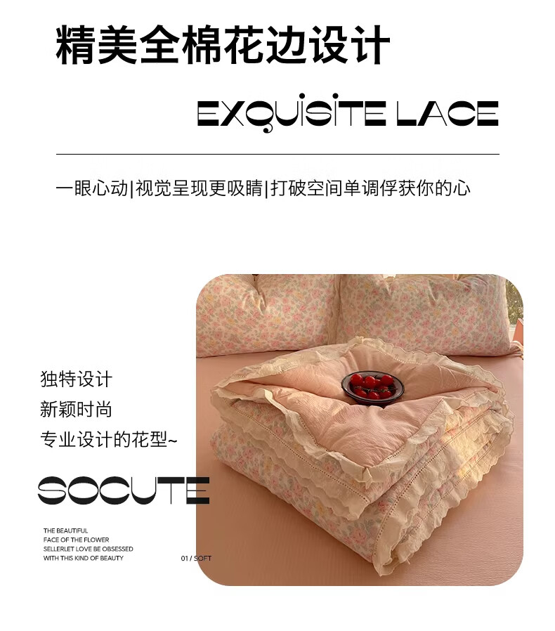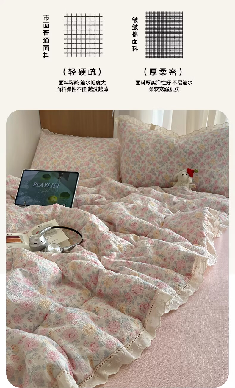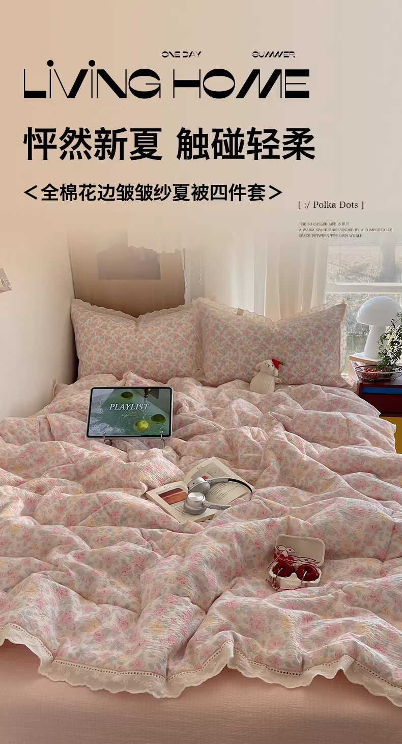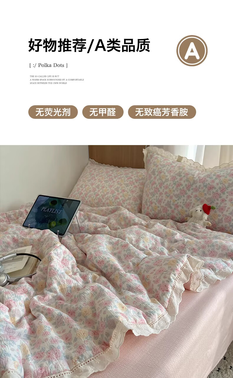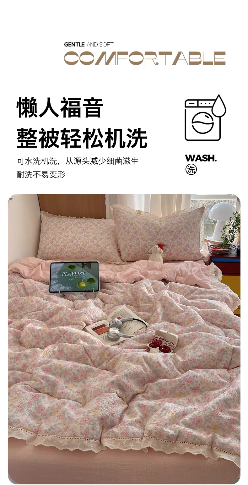 无印良品抗菌全棉花边夏凉被子夏季空调被可机洗裸睡单人夏被皱皱纱薄被子 粉黛蔷薇【10A抗菌 全棉花边】 180x200cm单夏被