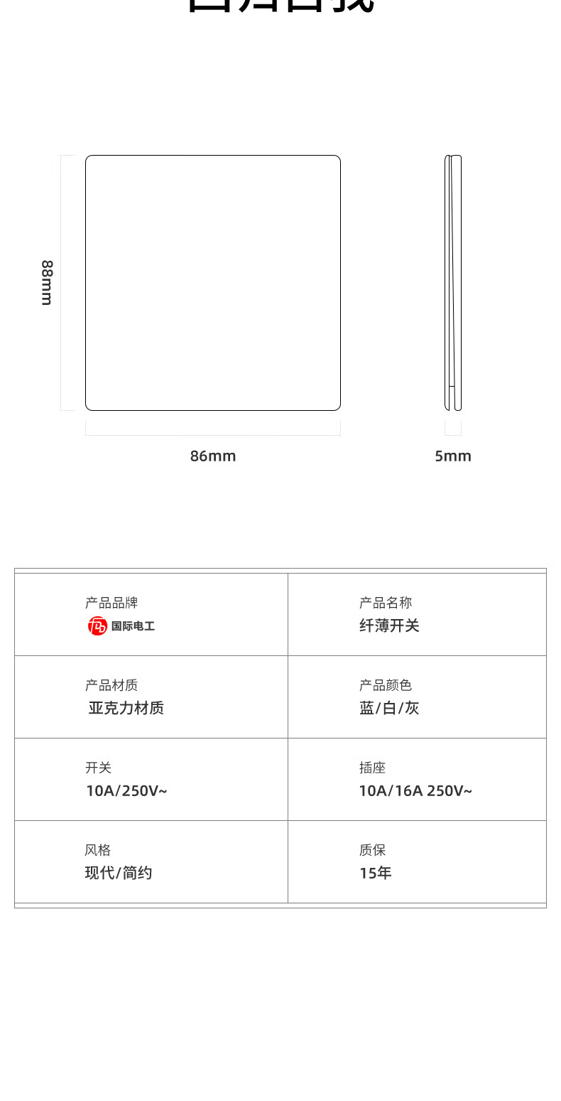 国际电工86型开关插座面板家用暗装墙壁一开五孔插座超薄16A空调电源插 五孔插座