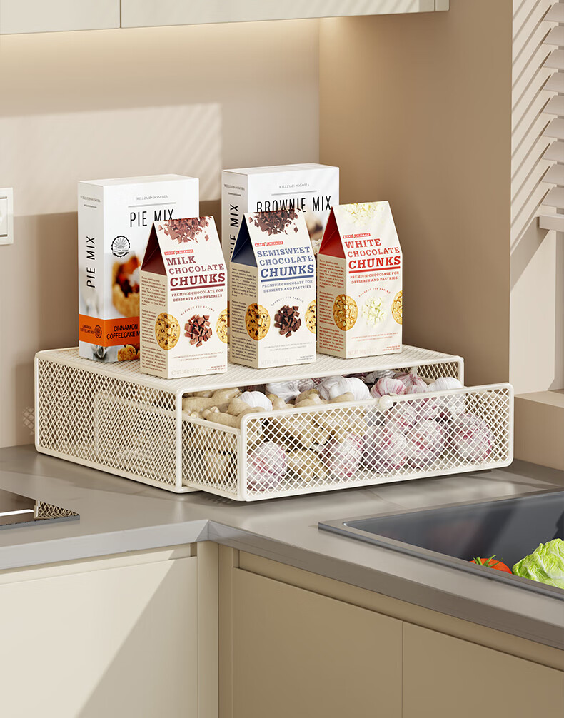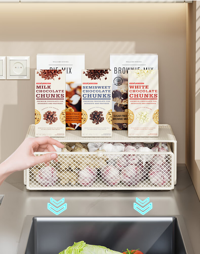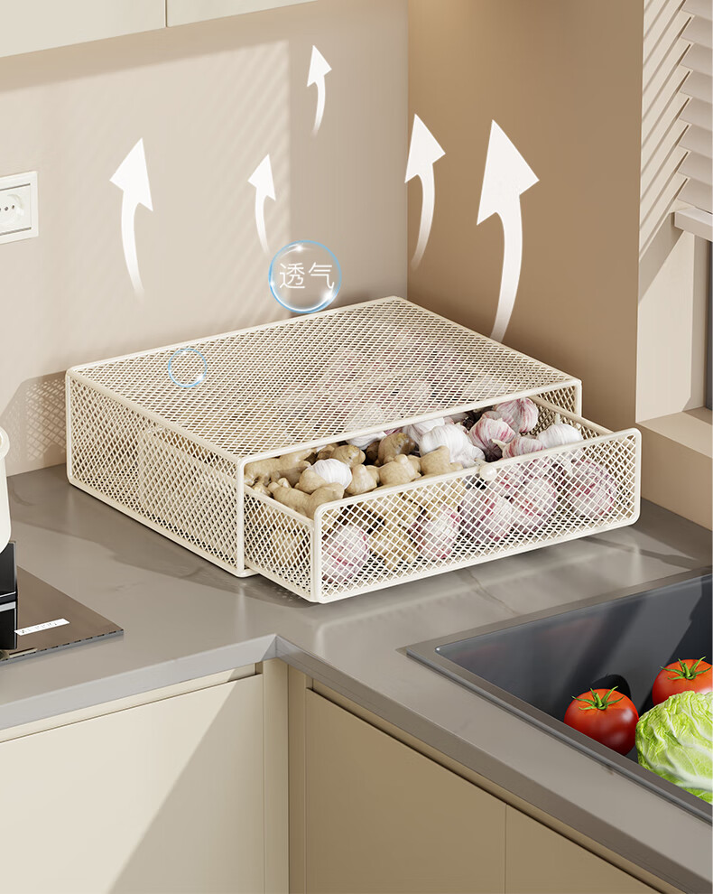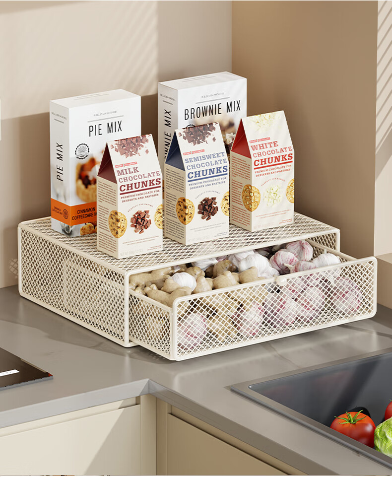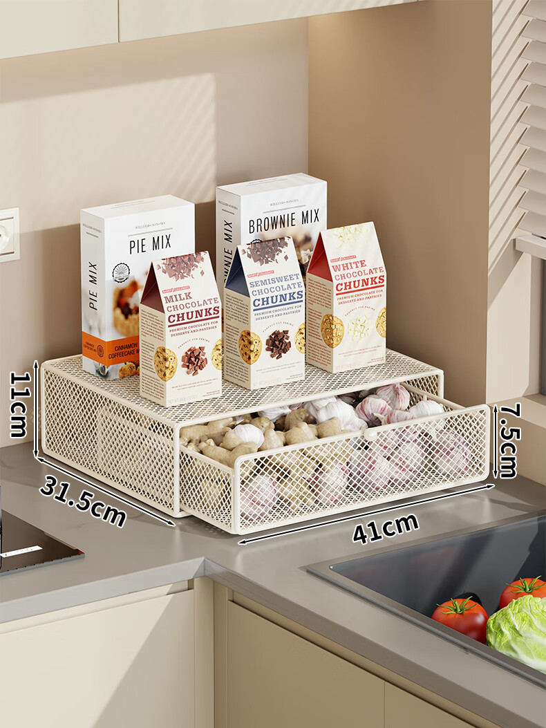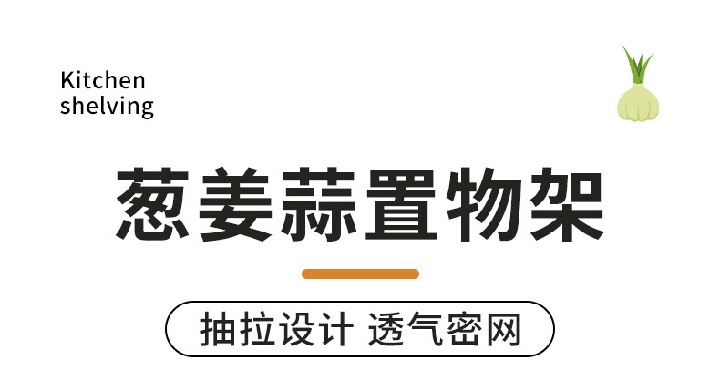尔思家日本进口厨房置物架抽拉葱姜蒜收纳储物架台面调料储物架收纳神器 白色