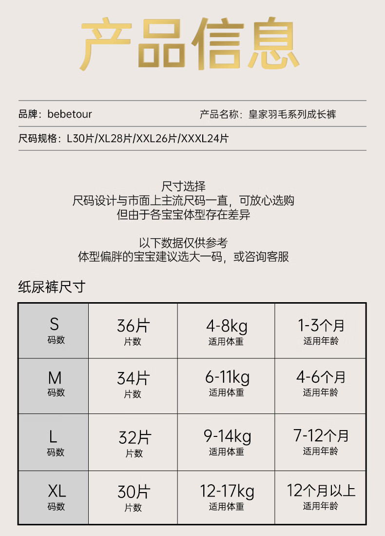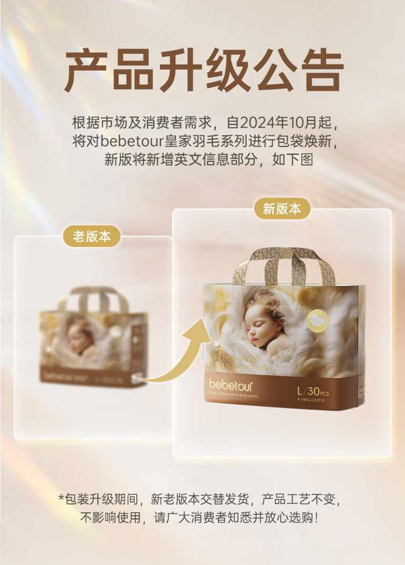 bebetour皇家羽毛系列拉拉裤XXL26片超薄透气尿不湿【品牌直供 安心品质】