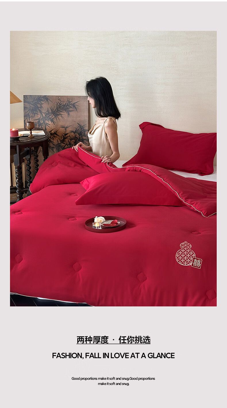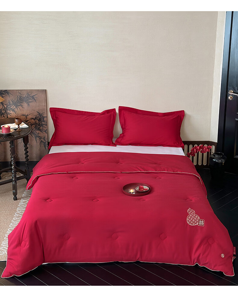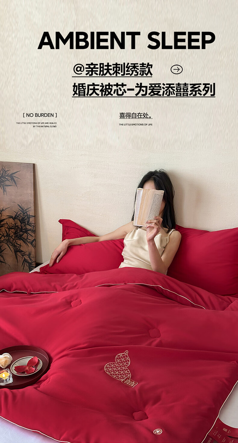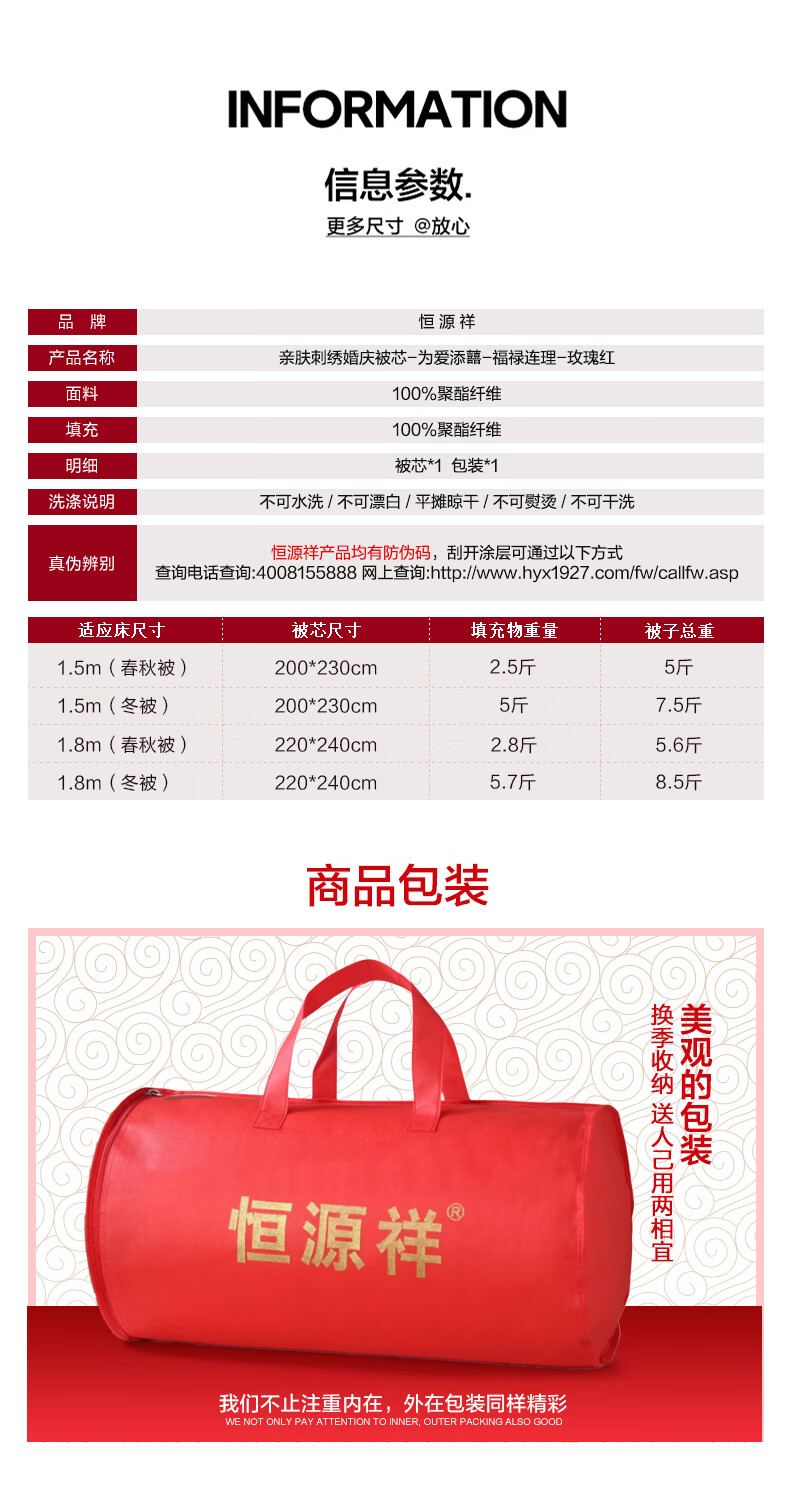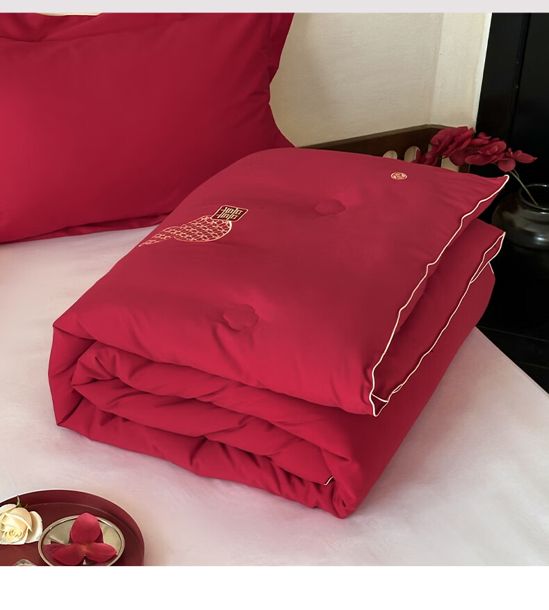 恒源祥 婚庆被芯 亲肤刺绣结婚被子柔软垂顺新婚陪嫁喜被双人四季通用 福禄连理-玫瑰红 200*230cm 总重5斤