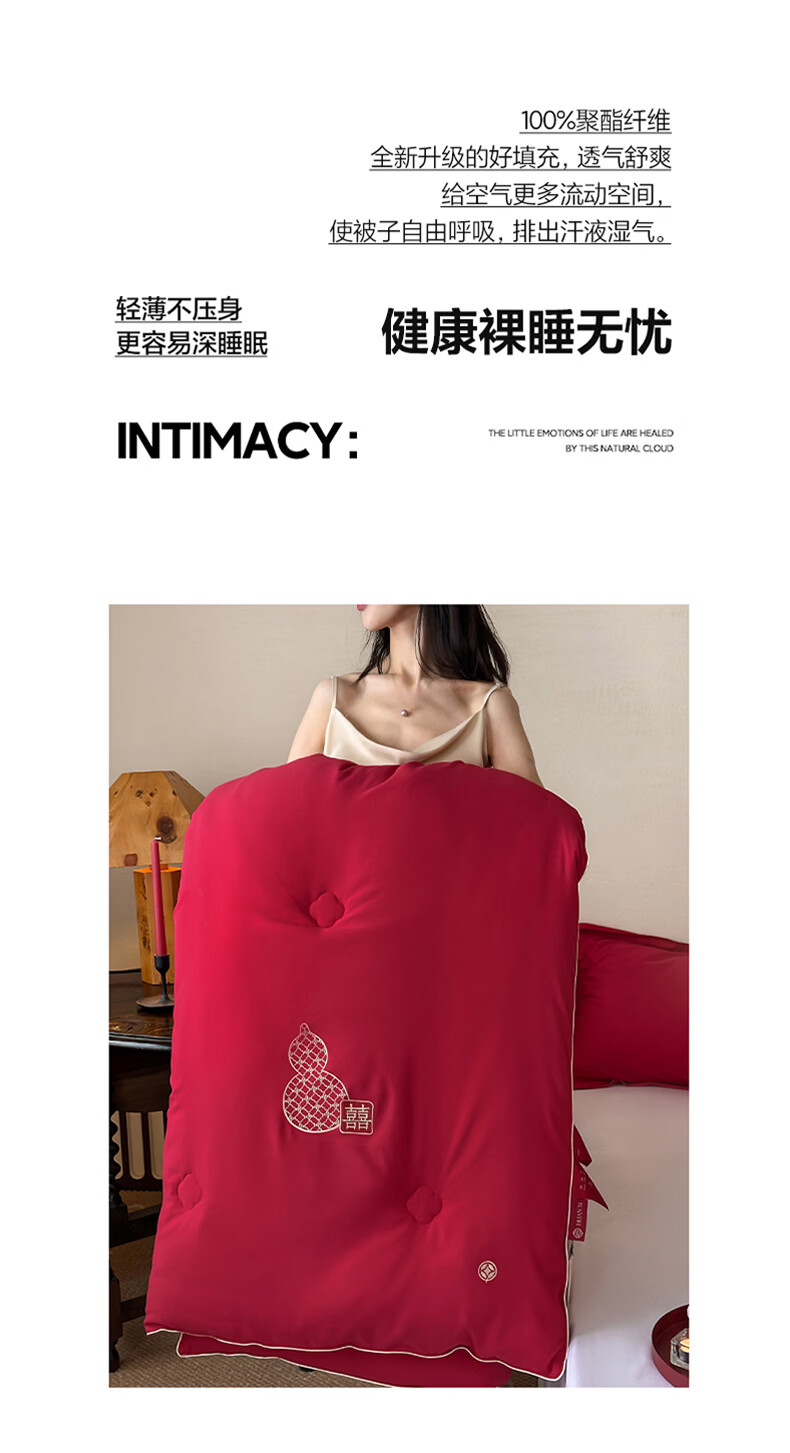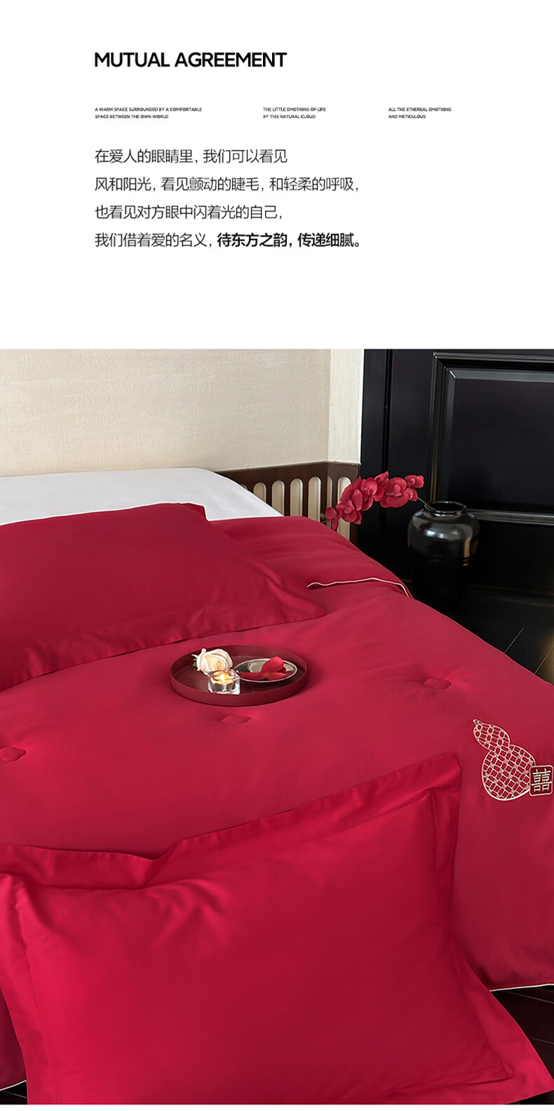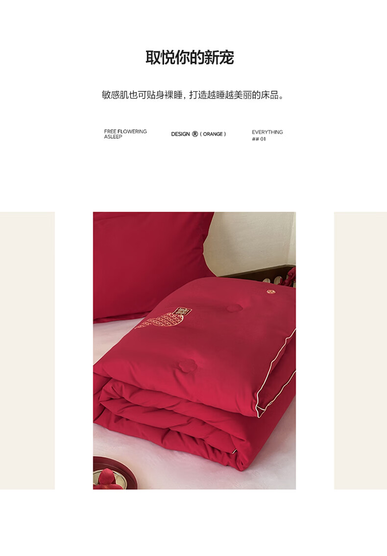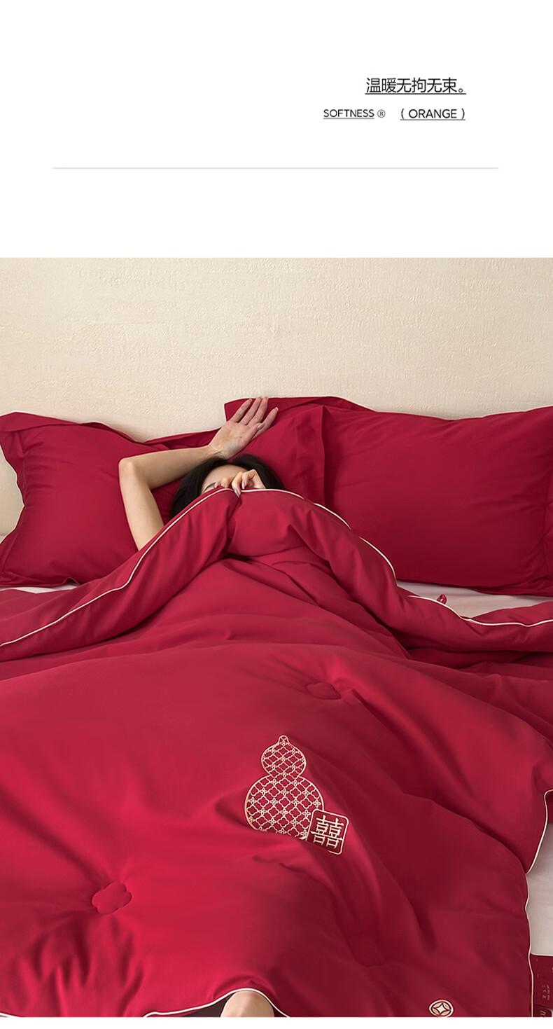 恒源祥 婚庆被芯 亲肤刺绣结婚被子柔软垂顺新婚陪嫁喜被双人四季通用 福禄连理-玫瑰红 200*230cm 总重5斤