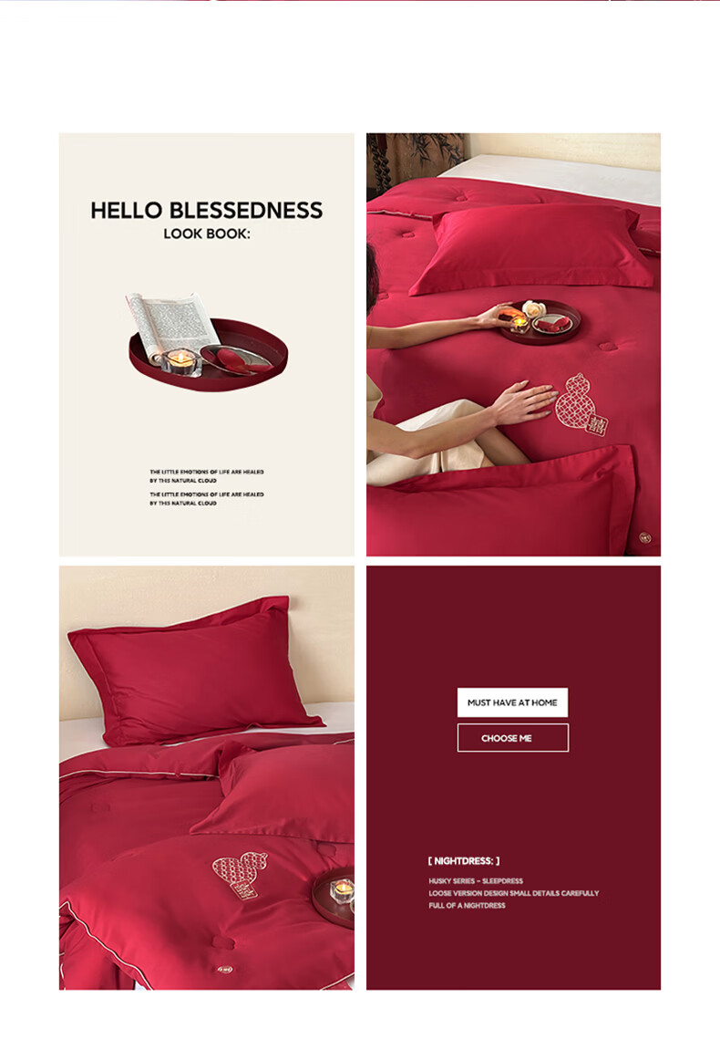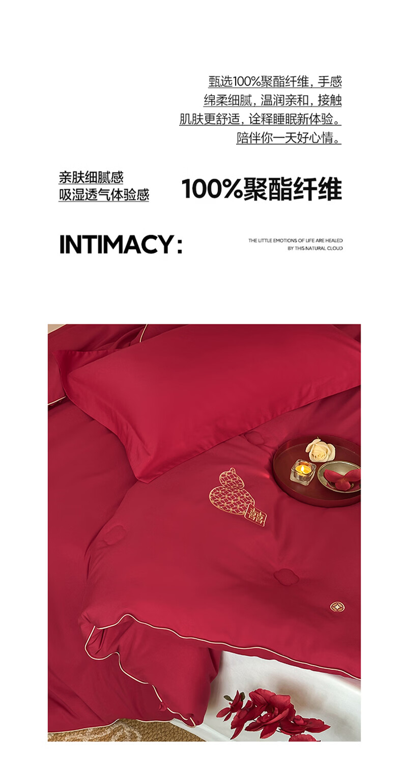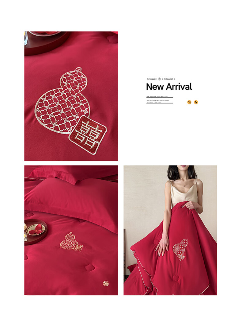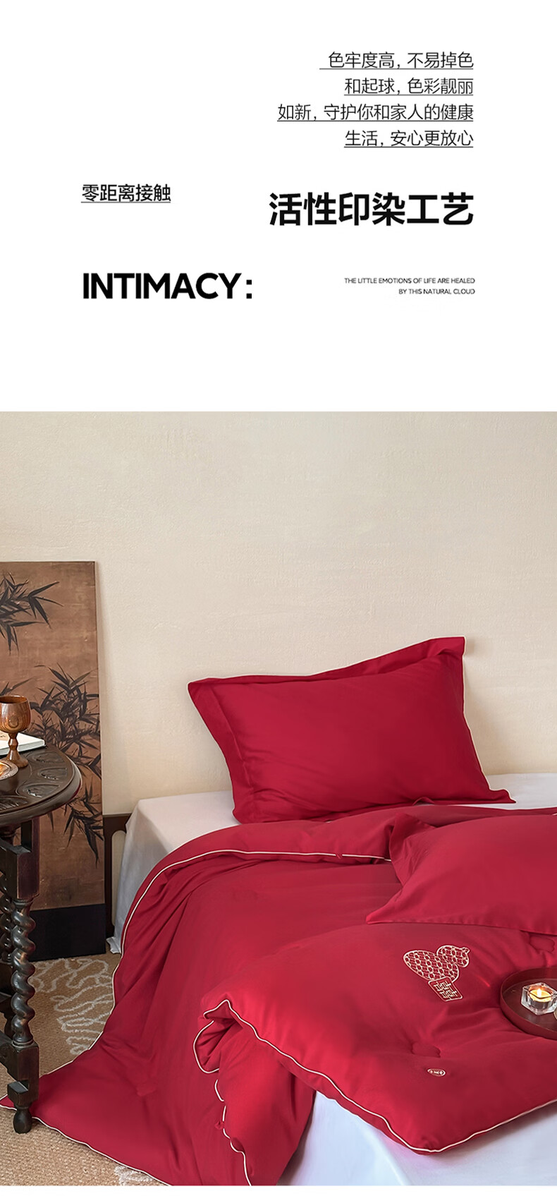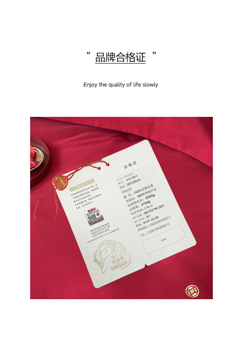 恒源祥 婚庆被芯 亲肤刺绣结婚被子柔软垂顺新婚陪嫁喜被双人四季通用 福禄连理-玫瑰红 200*230cm 总重5斤