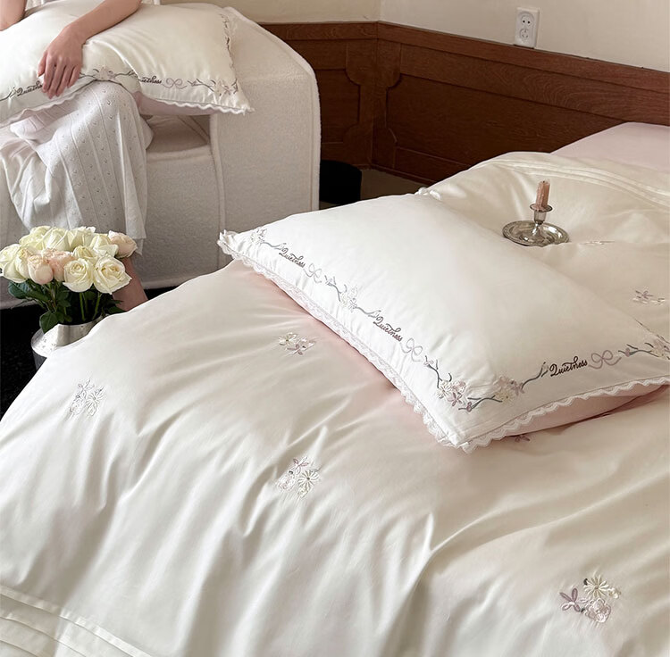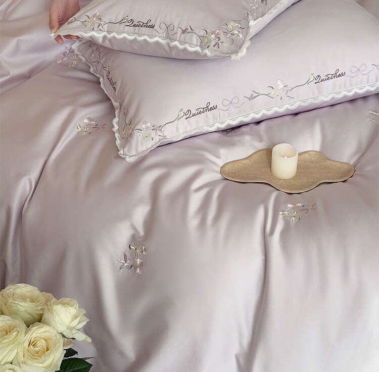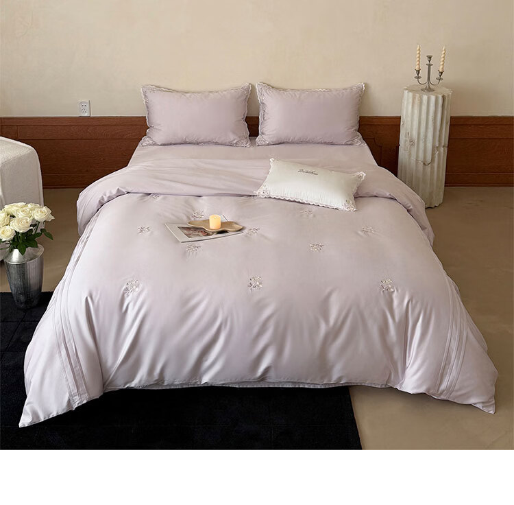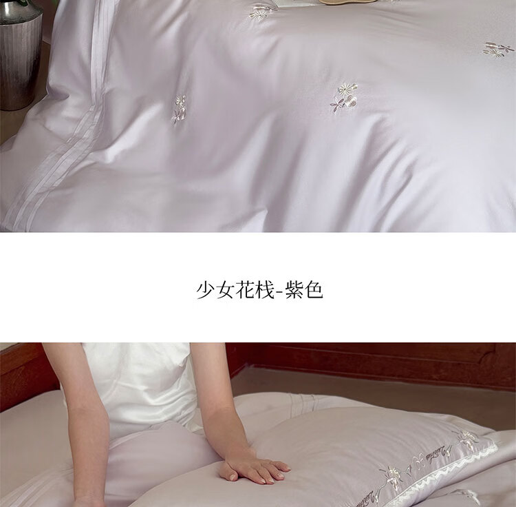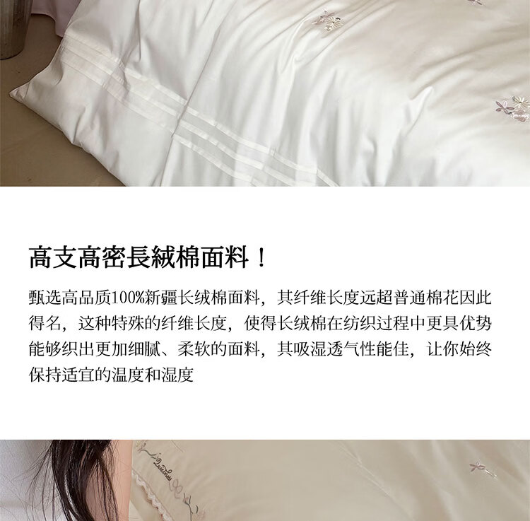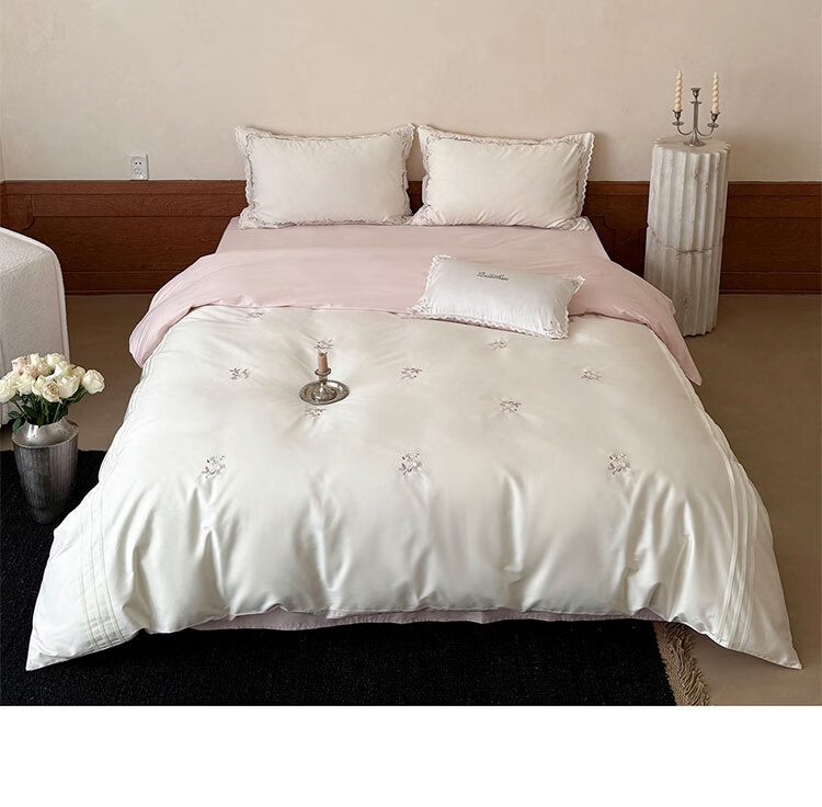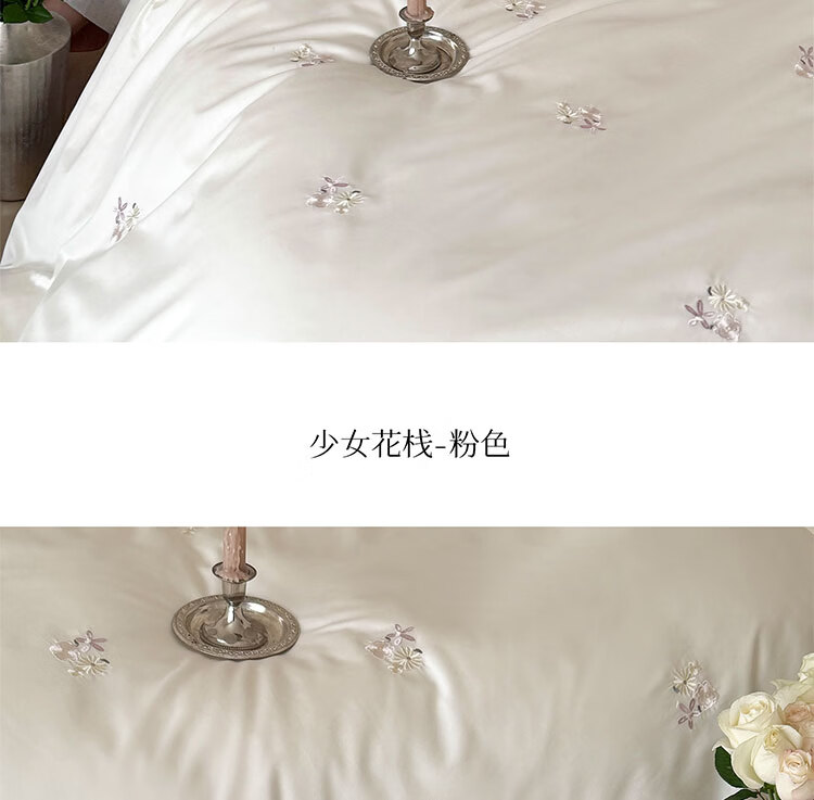 ROLAND LIVE轻奢简约风长绒棉刺绣四件套全棉被套亲肤透气四季1.8米床床品 LB 长绒棉套件-少女花栈粉色 1.2米床 床单款 【被套150*200cm】