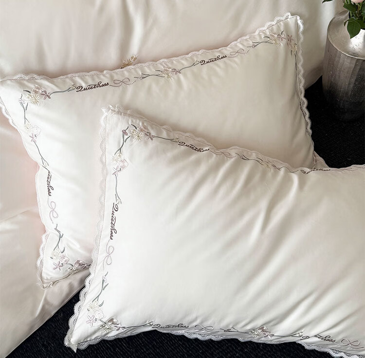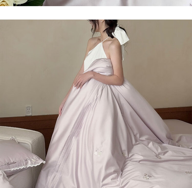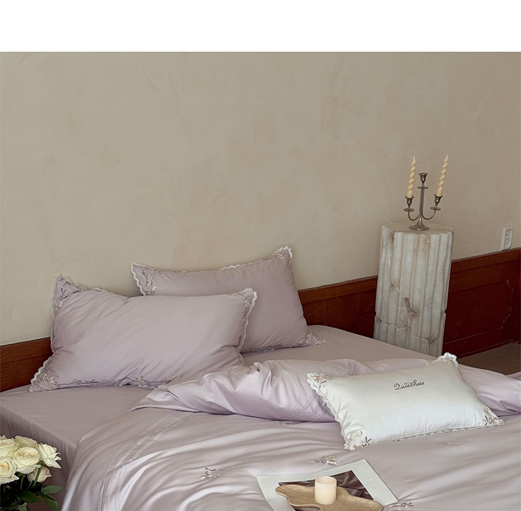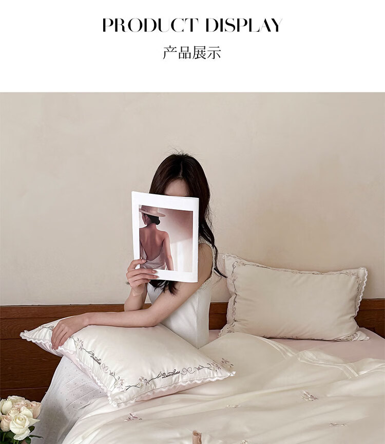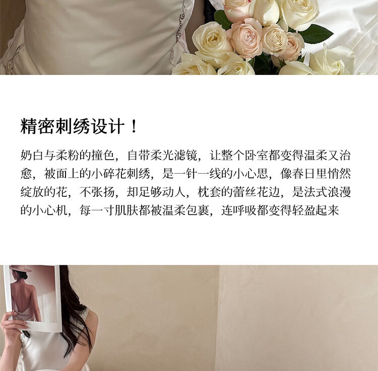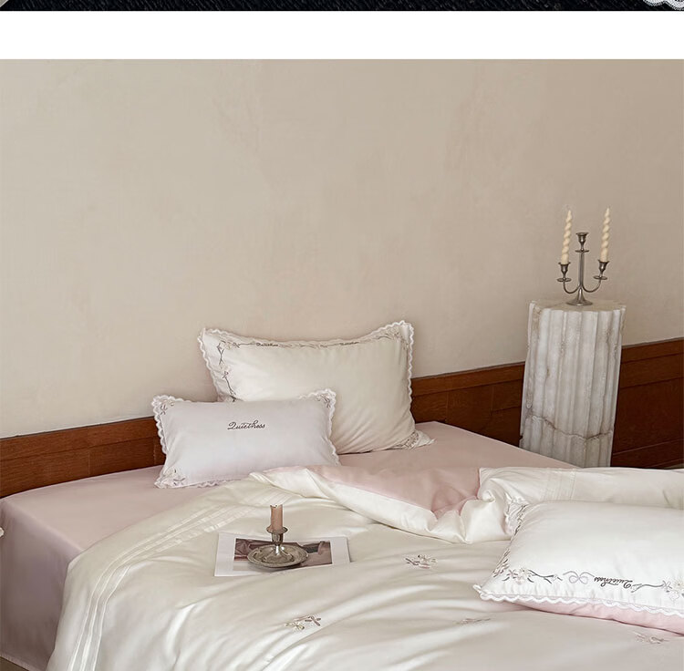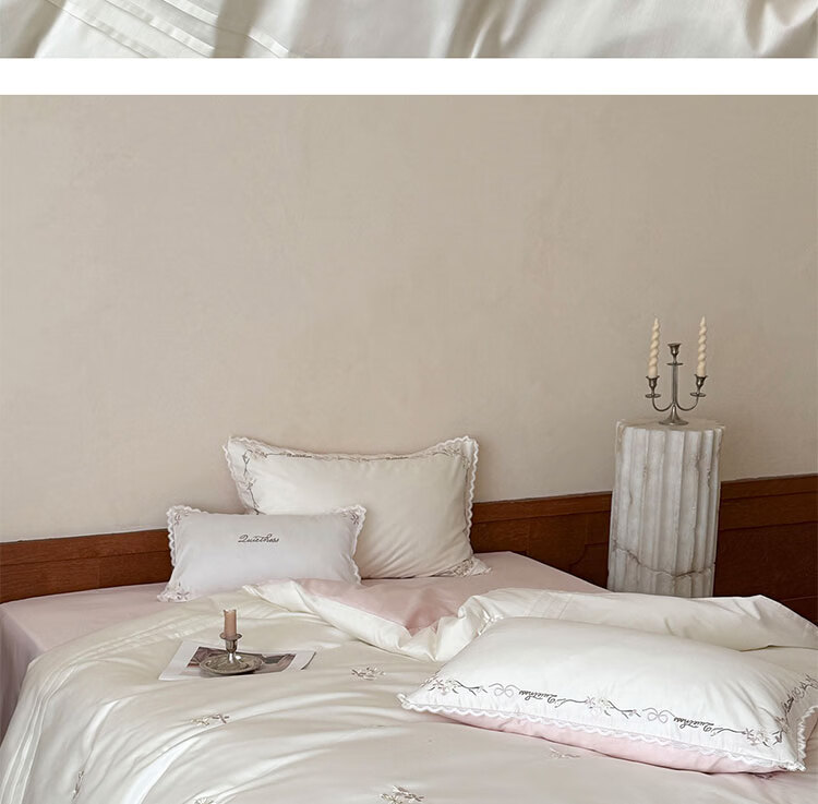 ROLAND LIVE轻奢简约风长绒棉刺绣四件套全棉被套亲肤透气四季1.8米床床品 LB 长绒棉套件-少女花栈粉色 1.2米床 床单款 【被套150*200cm】