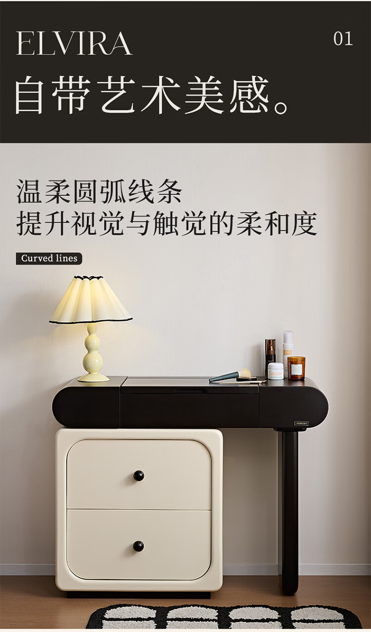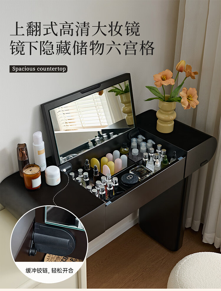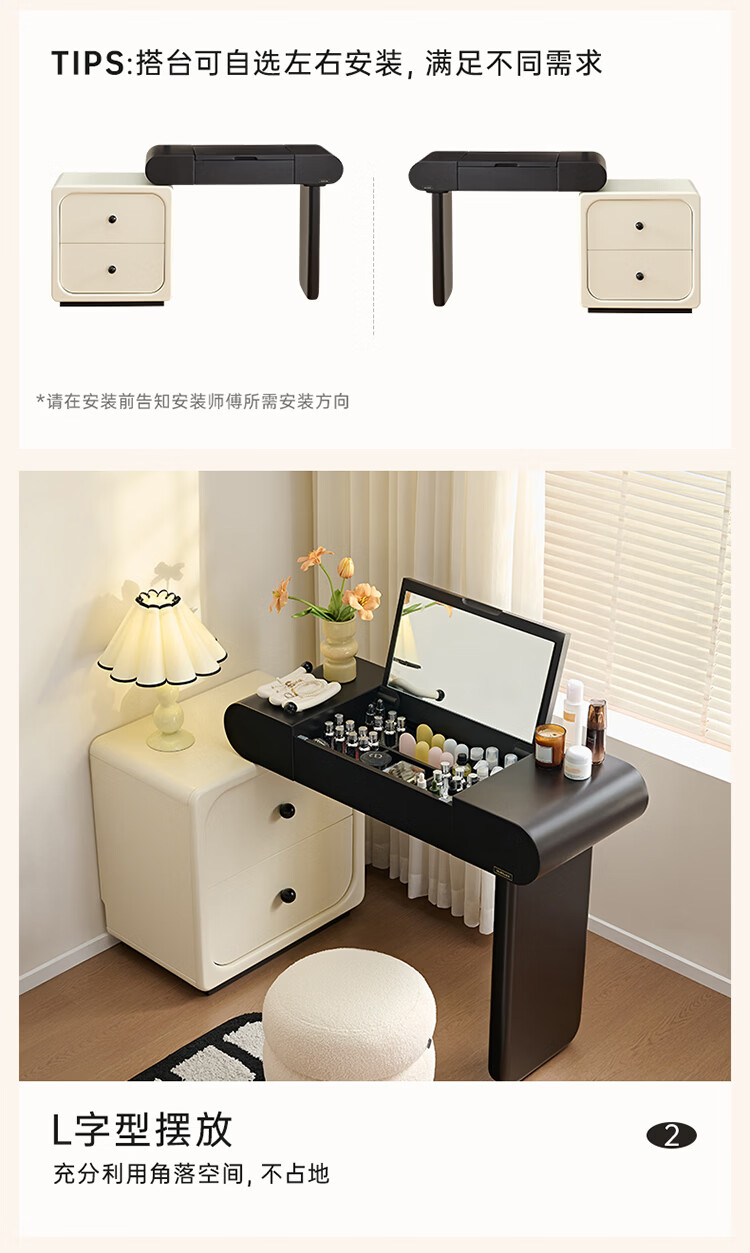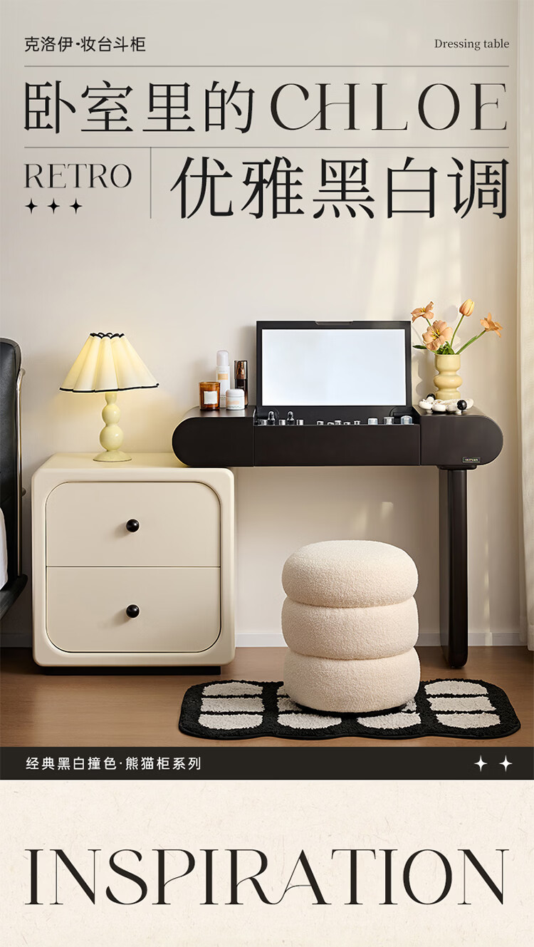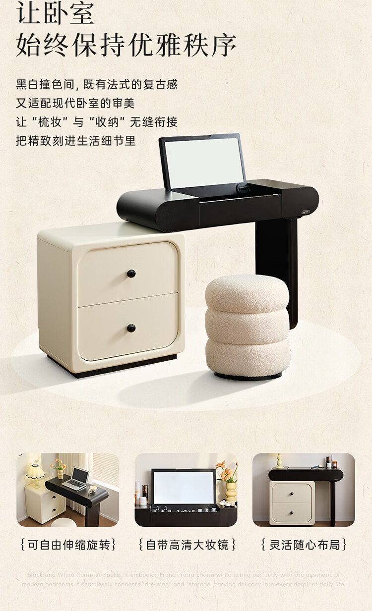 全友家居法式奶油风梳妆台床头柜一体小户型家用可旋转台面储物化妆桌 【黑白撞色】妆台