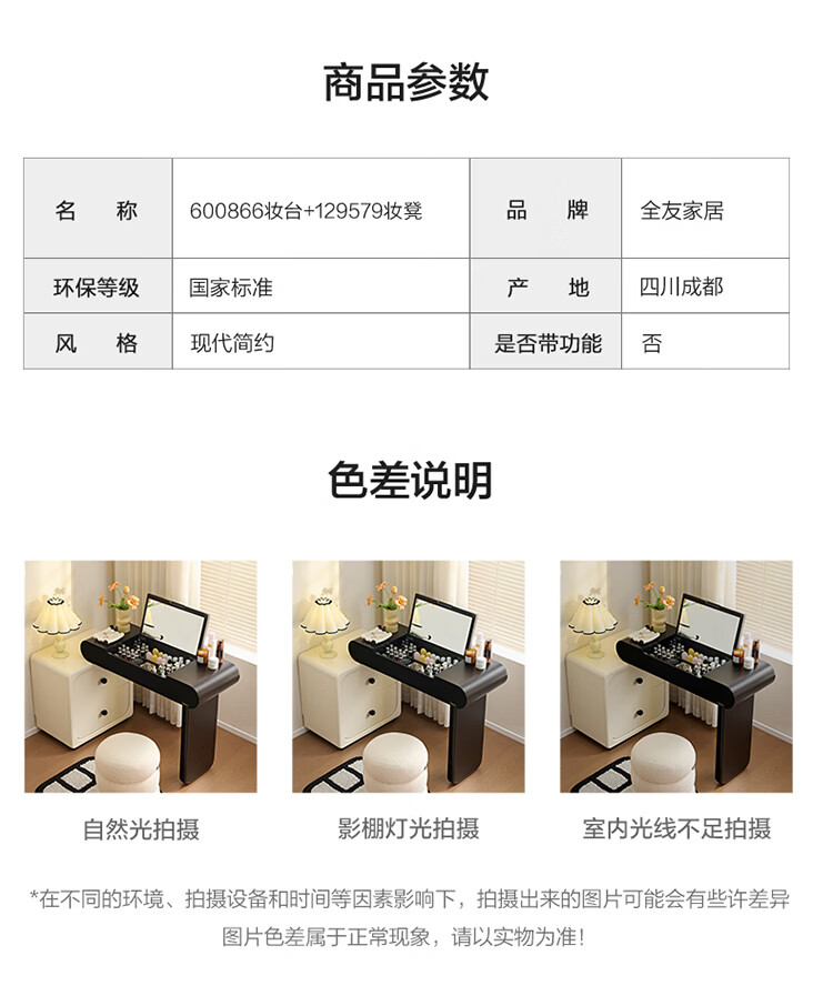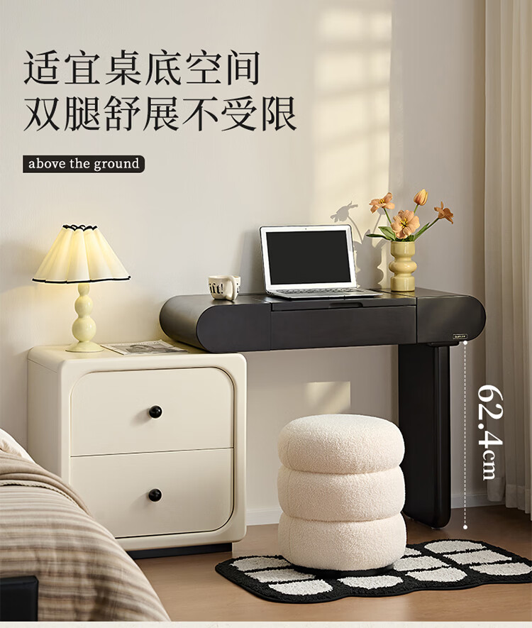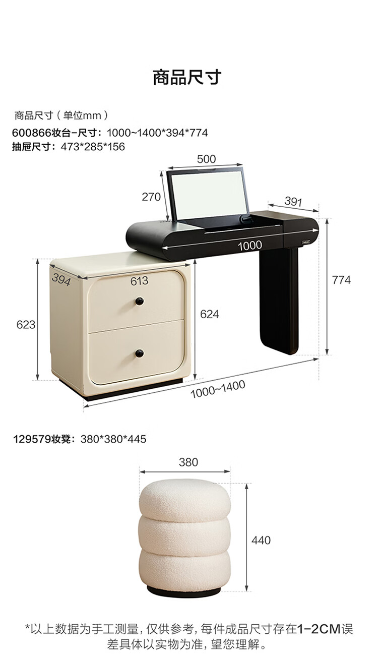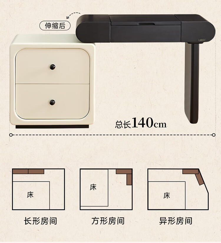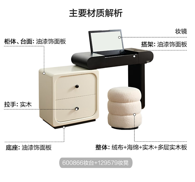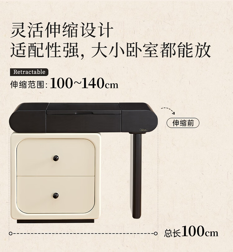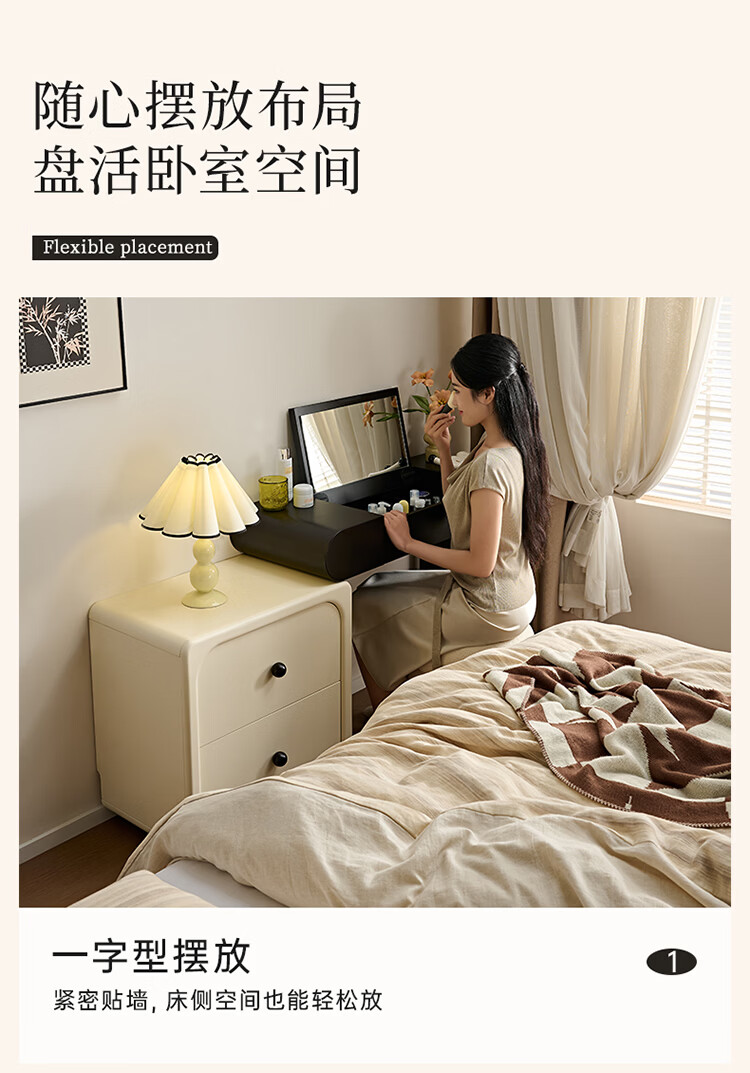 全友家居法式奶油风梳妆台床头柜一体小户型家用可旋转台面储物化妆桌 【黑白撞色】妆台