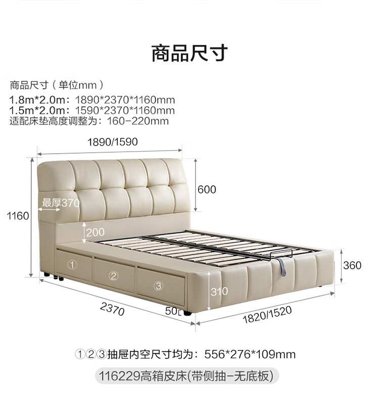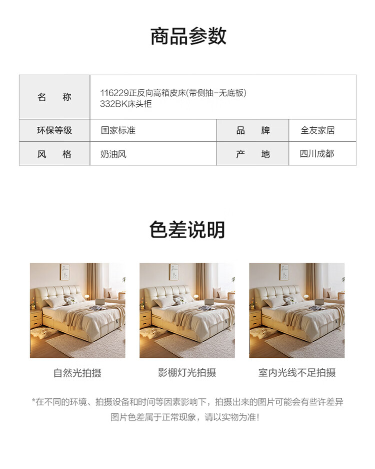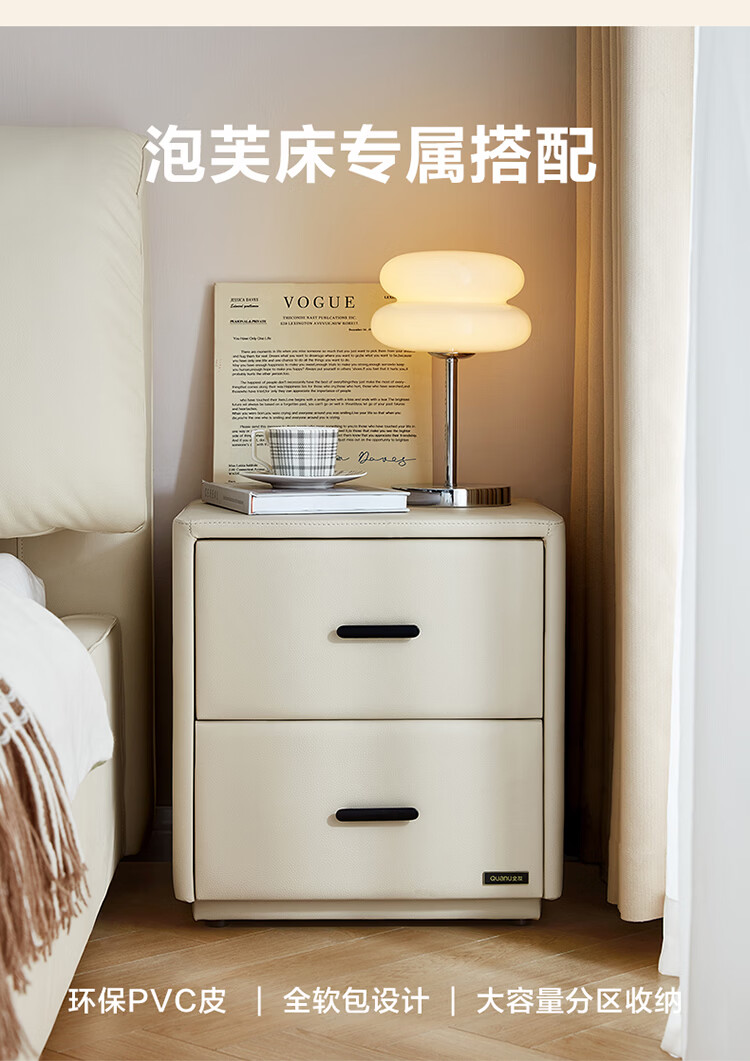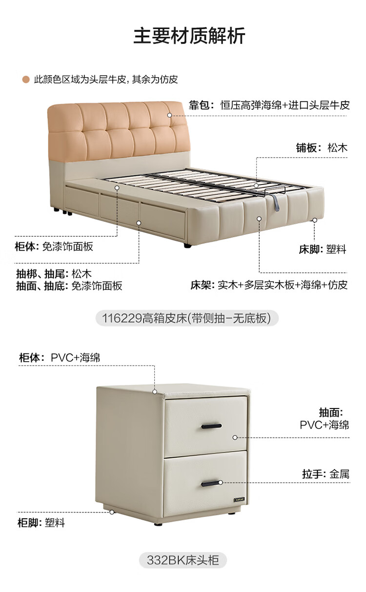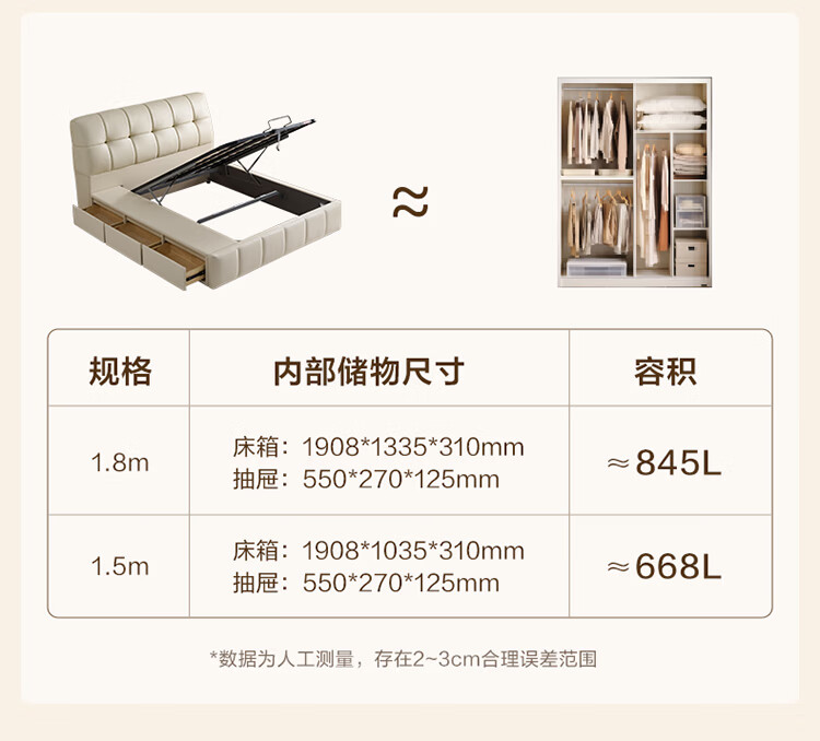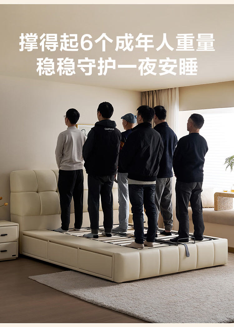 全友家居奶油风2026新款头层牛皮大床卧室高箱真皮储物床双人床小户型 正向储物皮床 1.5米x2米 单床