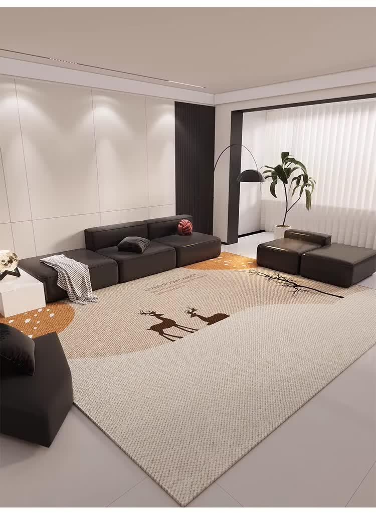 KAYE客厅地毯家用免洗可擦床边毯卧室地垫子加厚大面积全铺沙发茶几毯 QR-K暖阳-01 120x160 cm