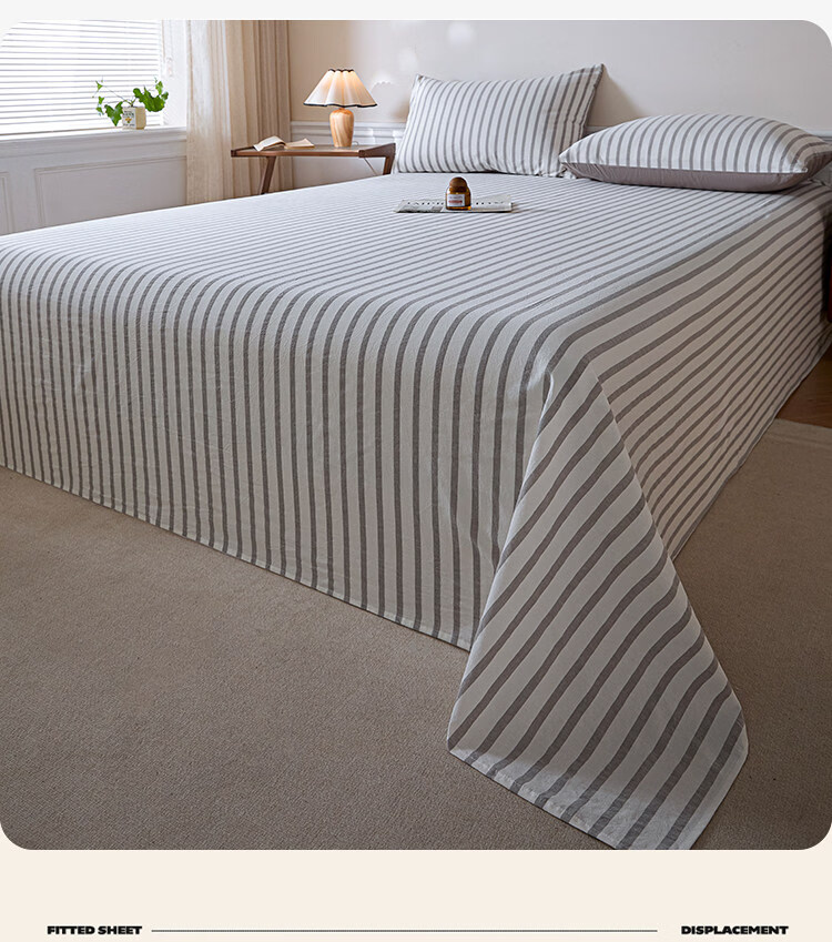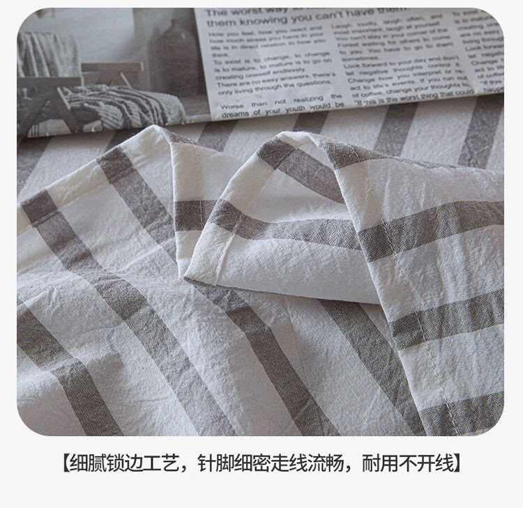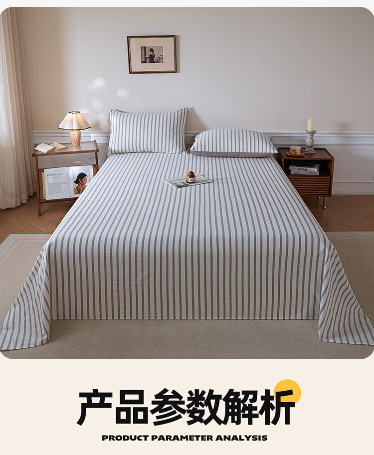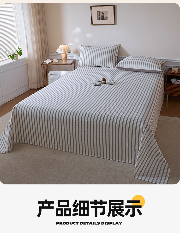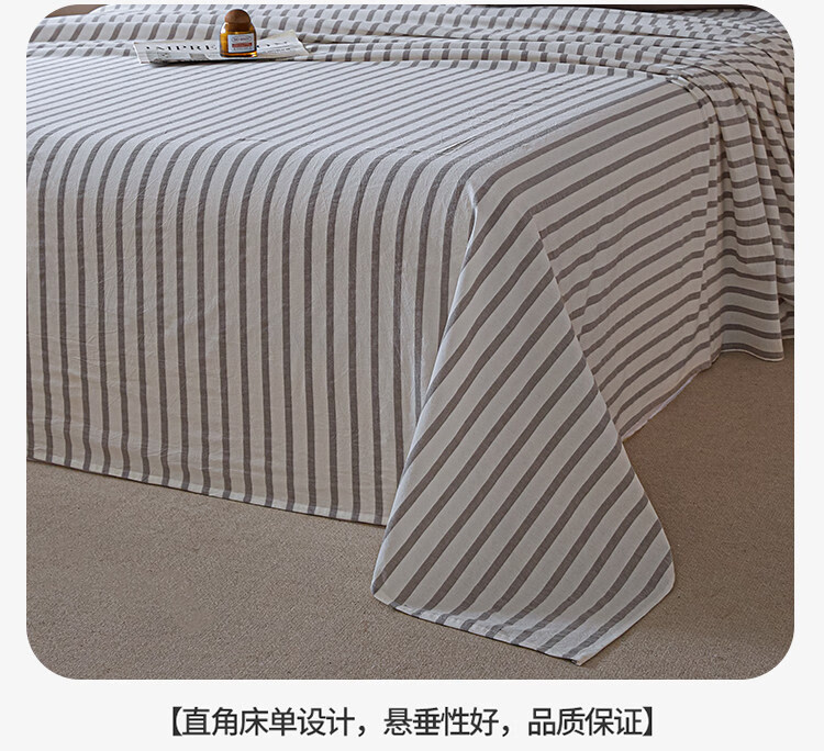 无印良品A类全棉色织纯棉床单200x230cm单件被单单双人家用床上用品三件套 野原-灰 【亲肤透气 细腻柔软】 200*230cm单床单