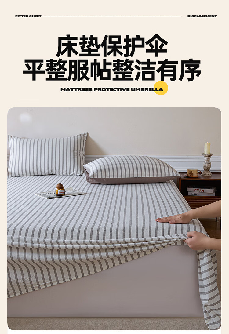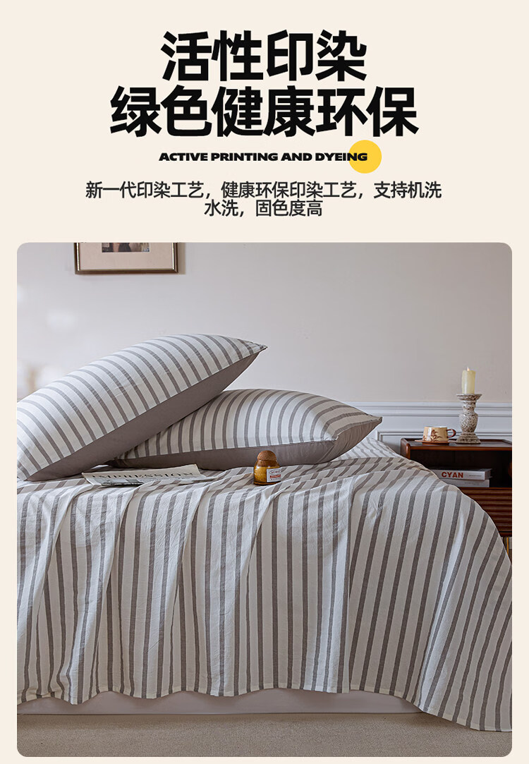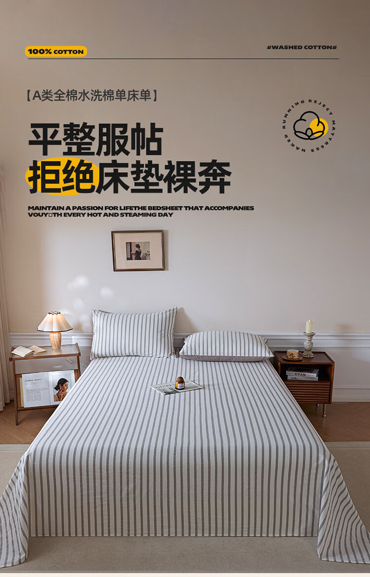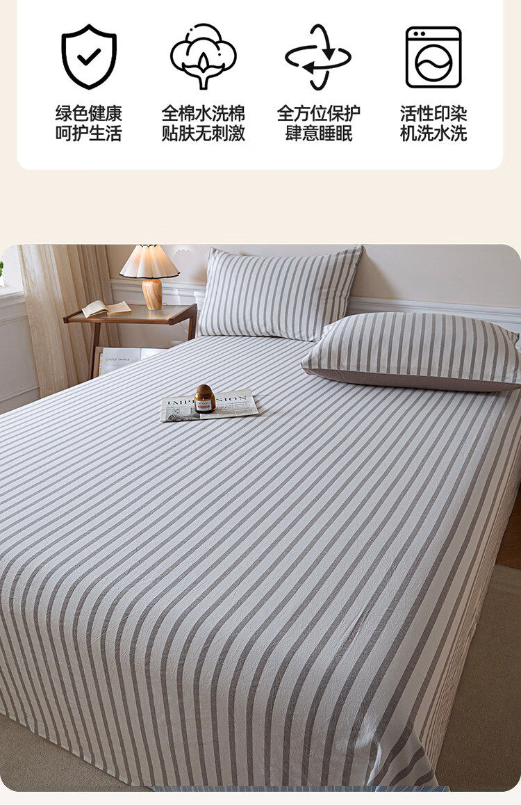 无印良品A类全棉色织纯棉床单200x230cm单件被单单双人家用床上用品三件套 野原-灰 【亲肤透气 细腻柔软】 200*230cm单床单