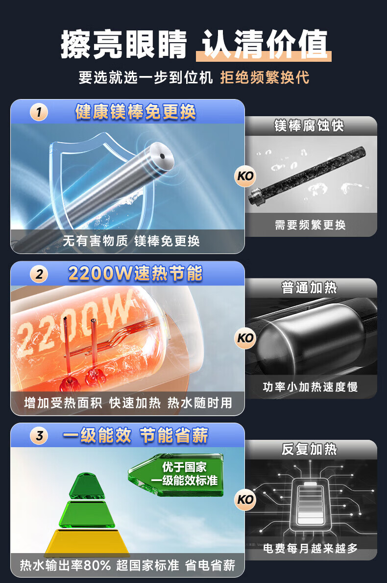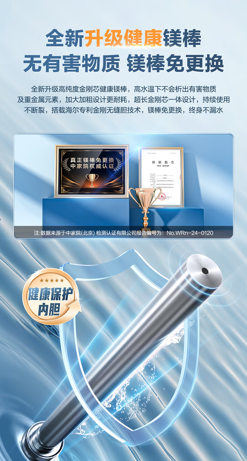 海尔(Haier)热水器60升电热水器【咨询客服享补贴】镁棒免更换2200W速热 超一级能效家用储水式大水量R3 60L 2200W 【性价比首选热销1000W+】R3