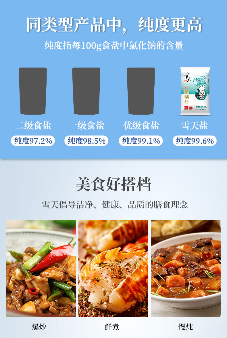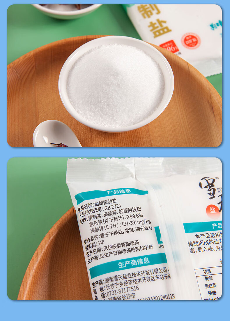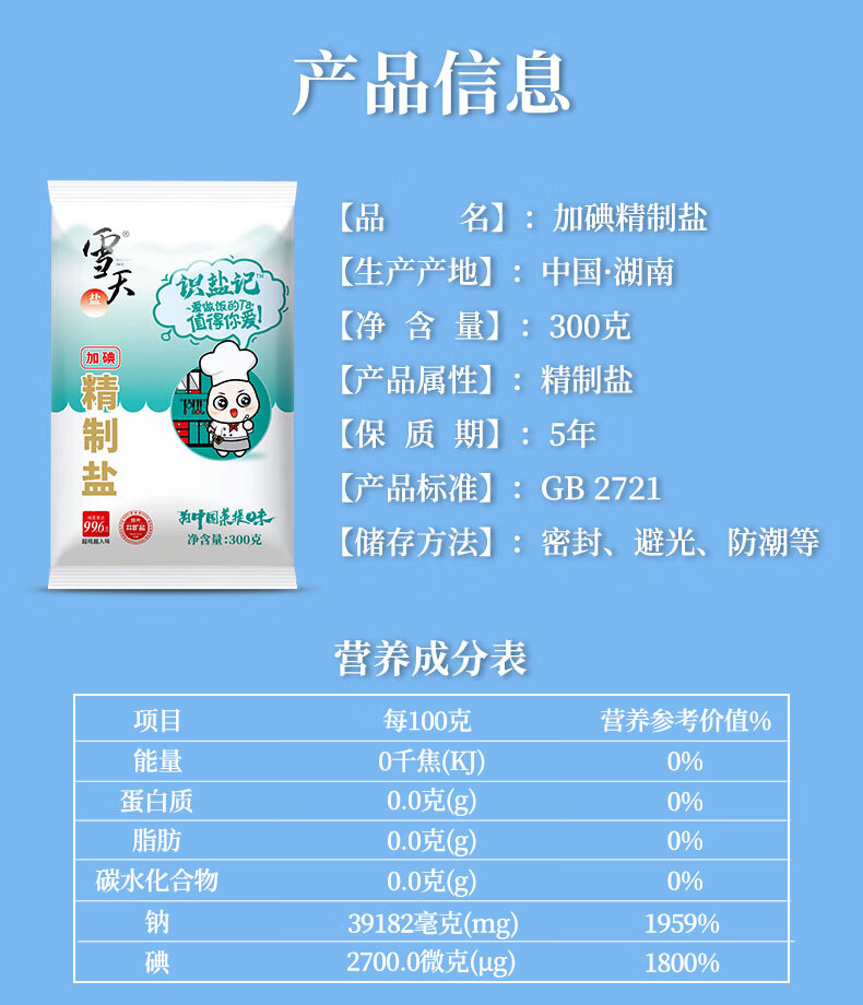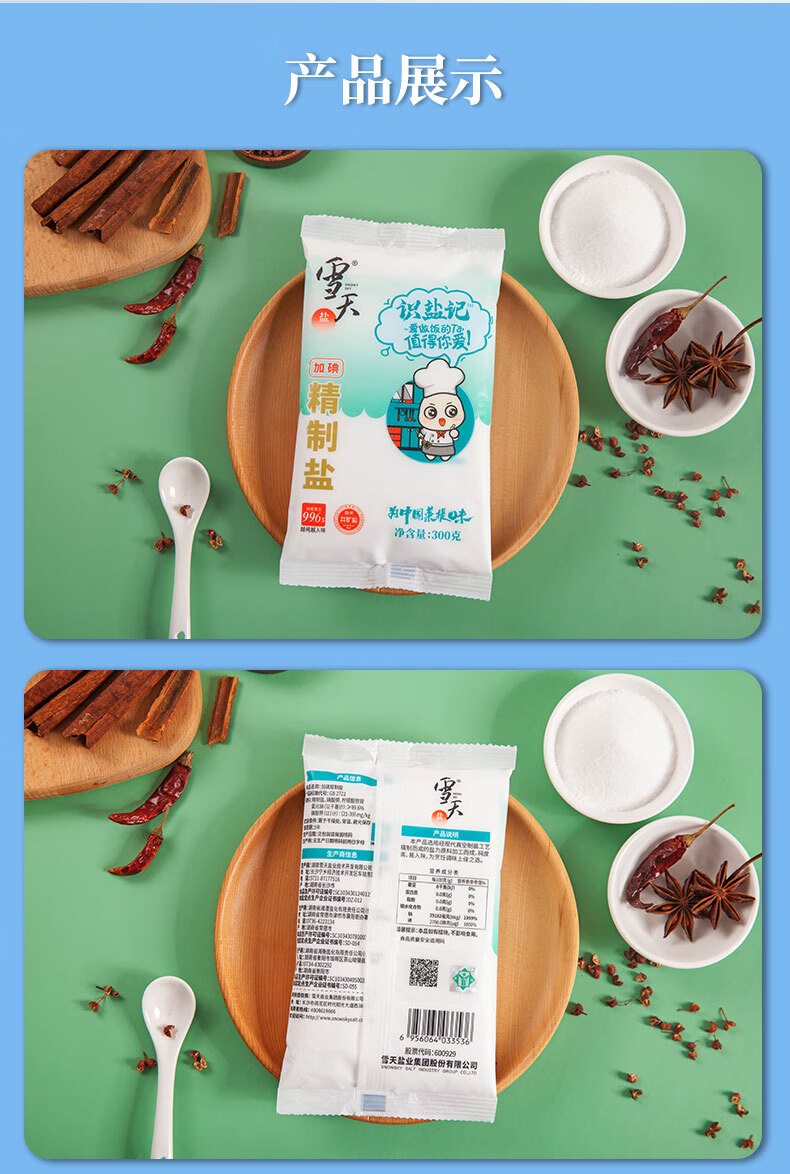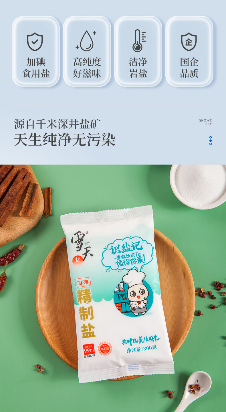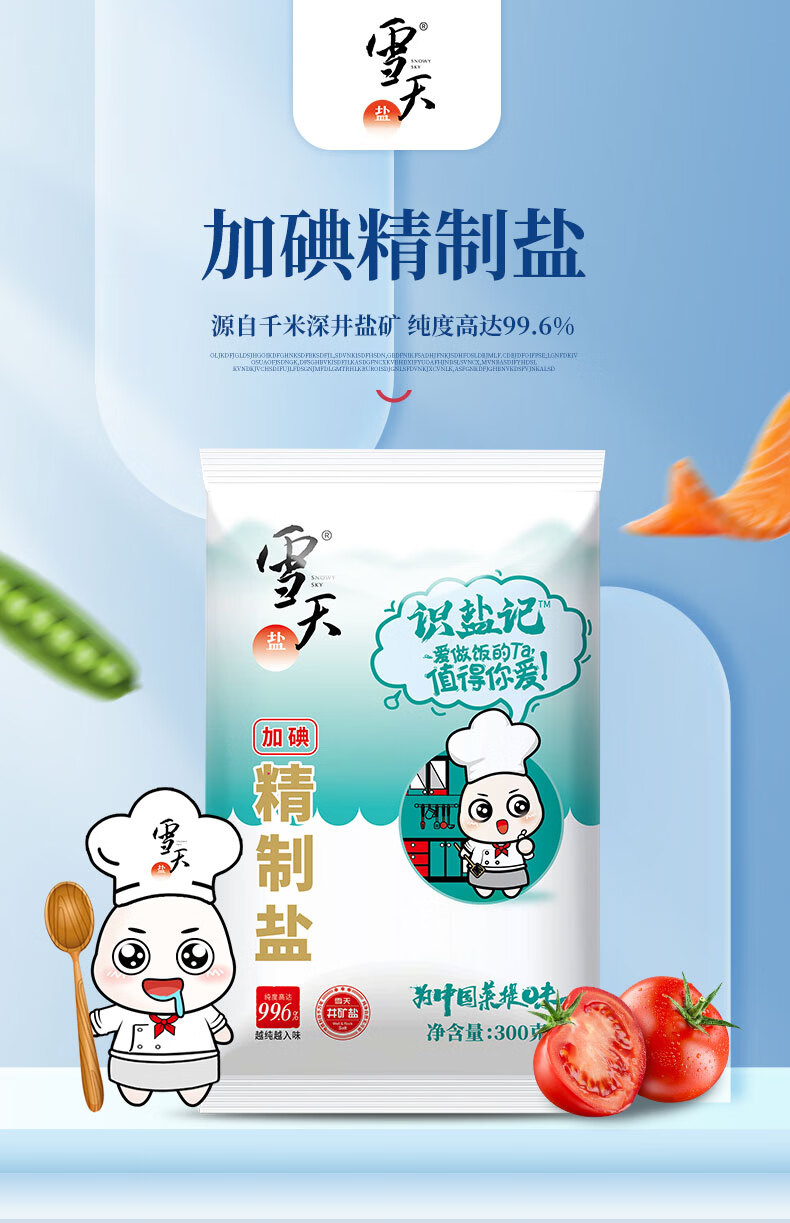 雪天300g识盐记加碘精制食调料用盐 2袋