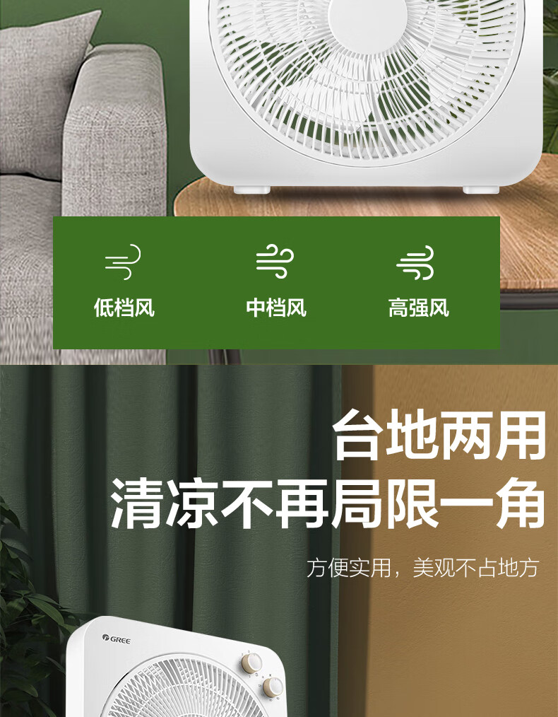 格力(GREE) 经典电风扇定时转页扇家用宿舍风扇台地两用鸿运扇迷你学生床头台式电风扇 12寸42W功率 三级能效
