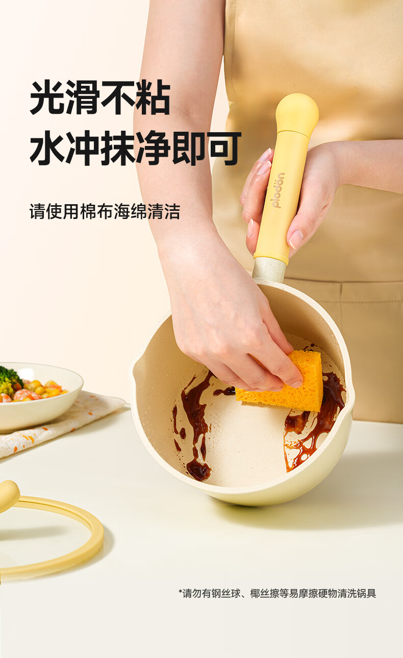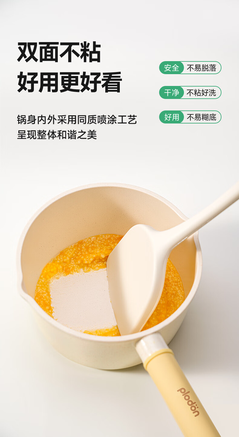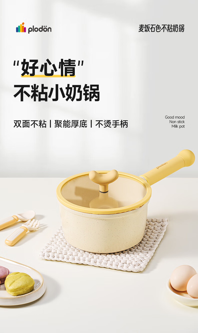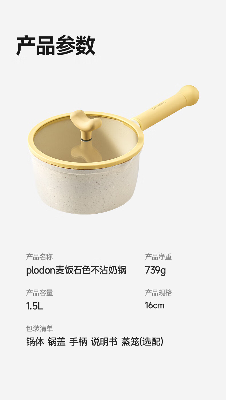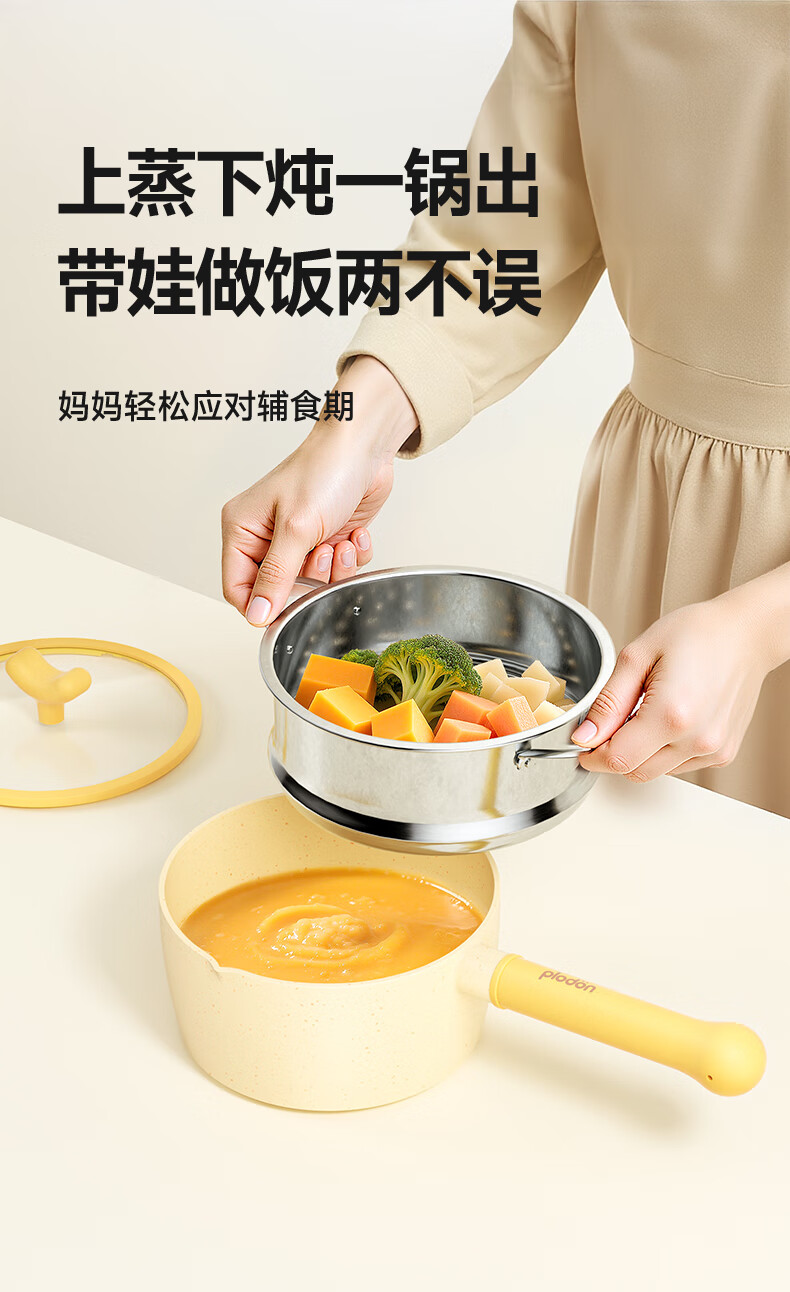 浦利顿(PLODON)麦饭石色小奶锅婴儿 宝宝辅食锅蒸煎煮一体不粘锅 16cm奶锅带蒸笼