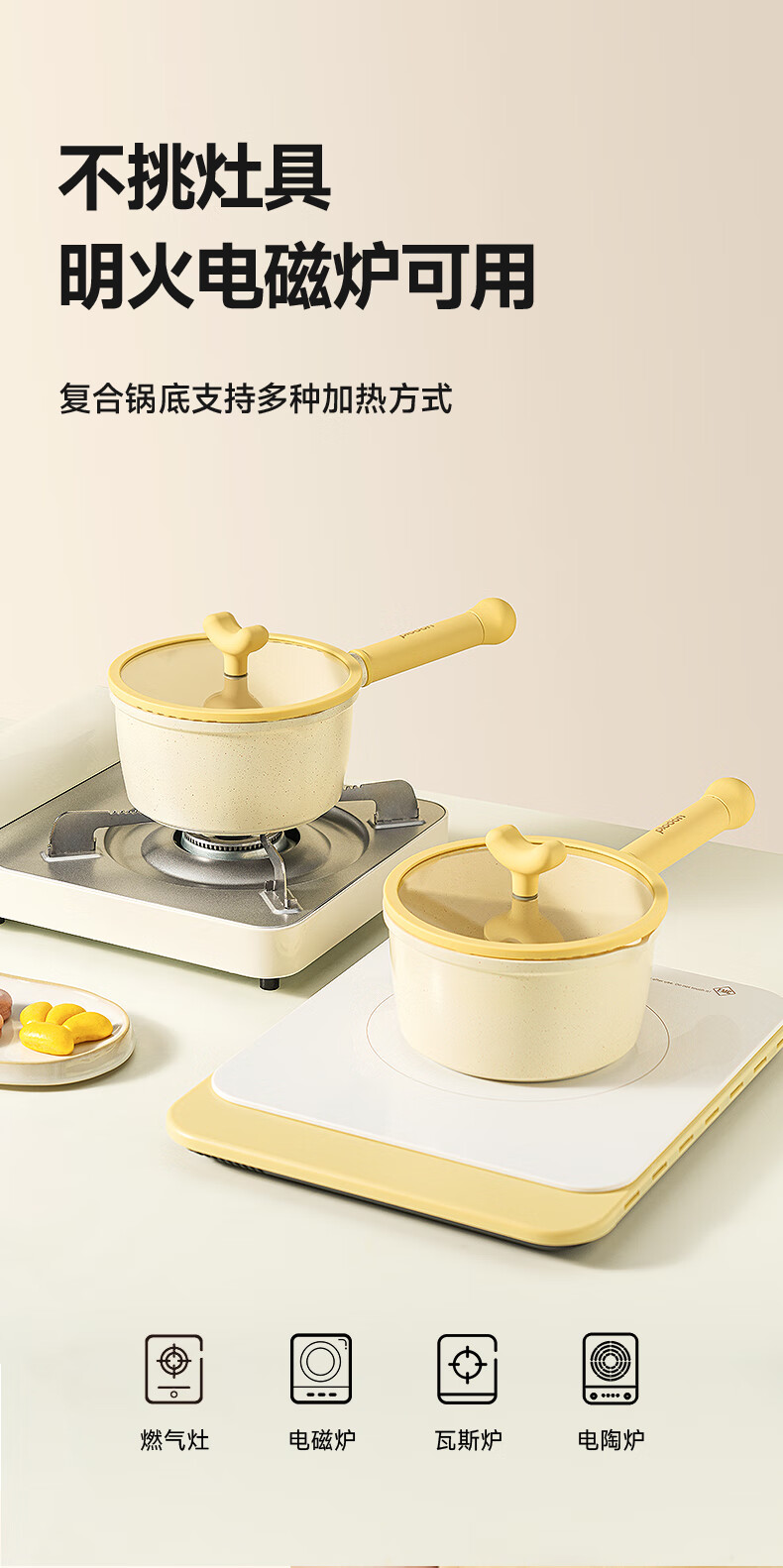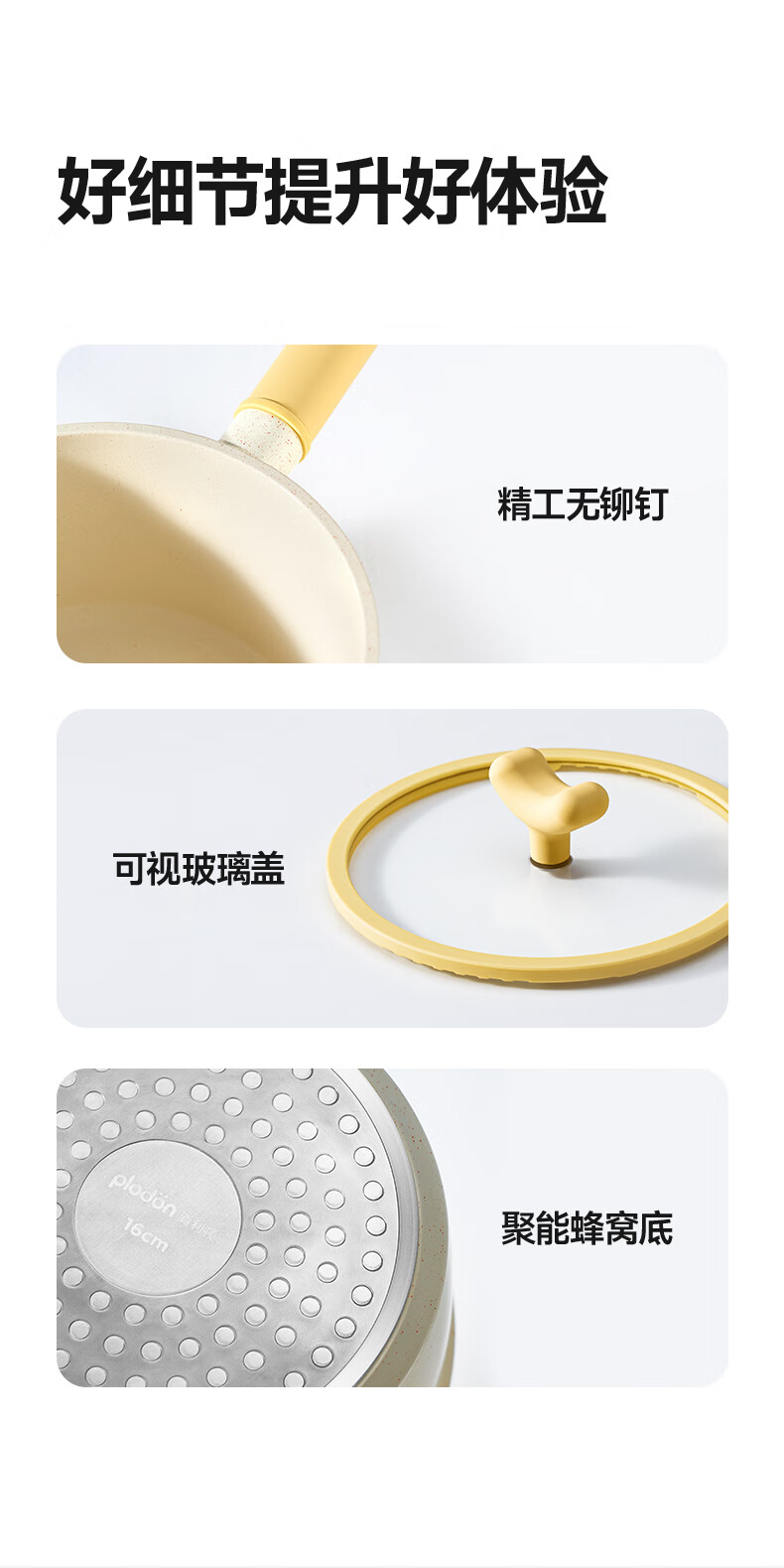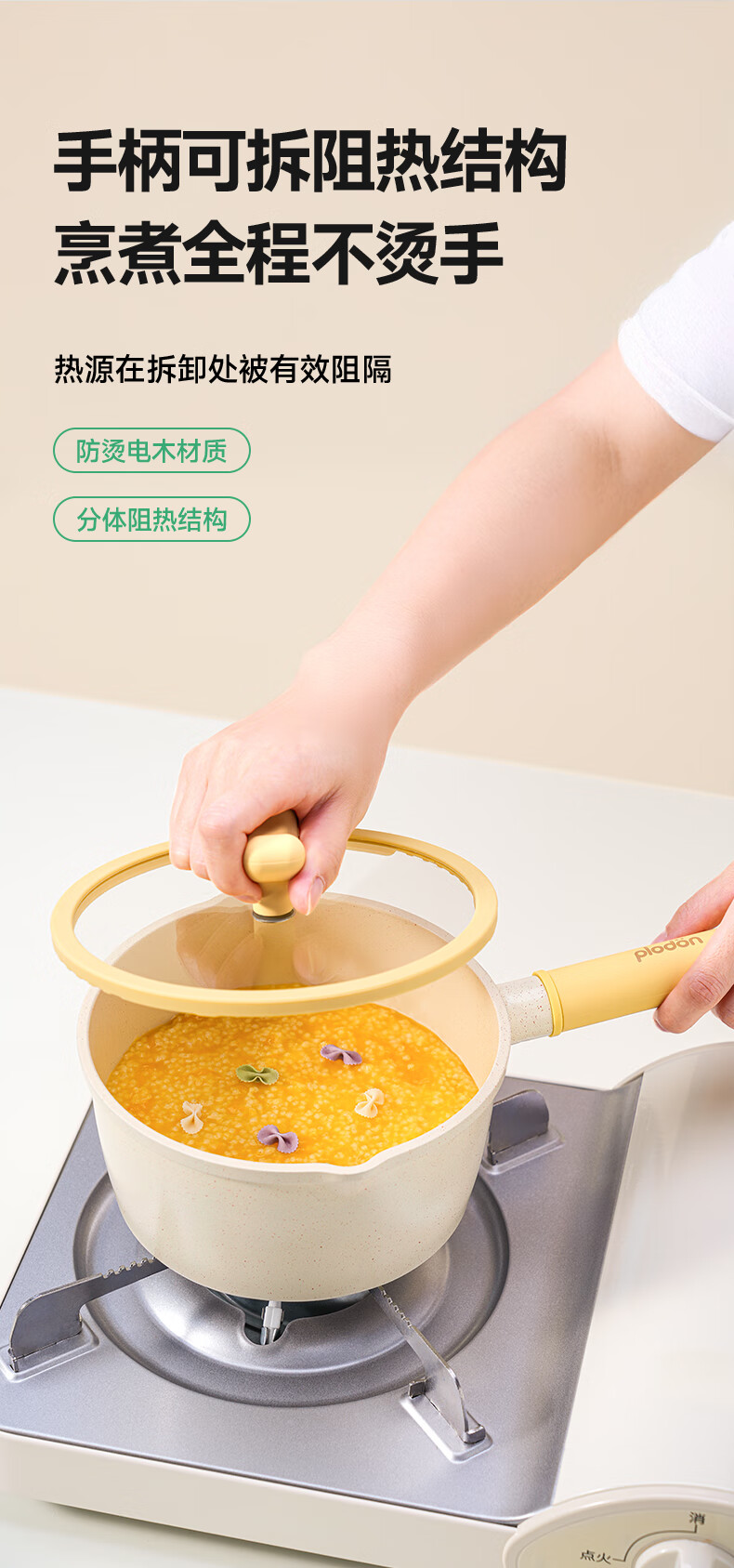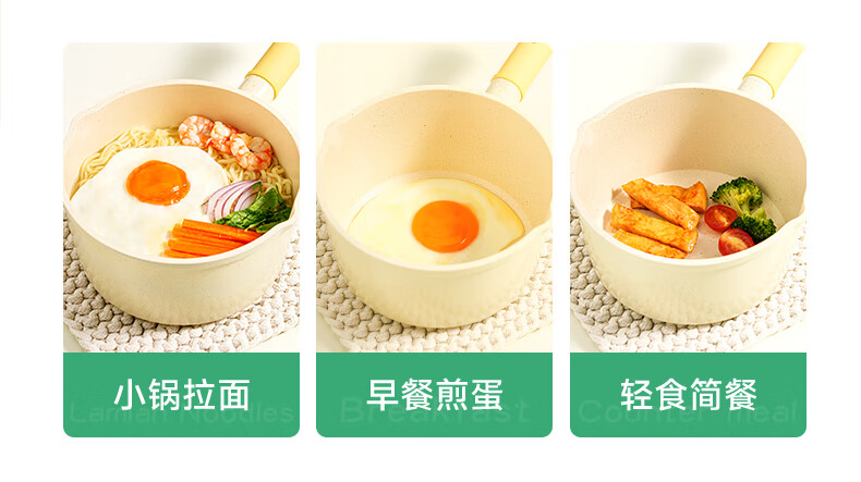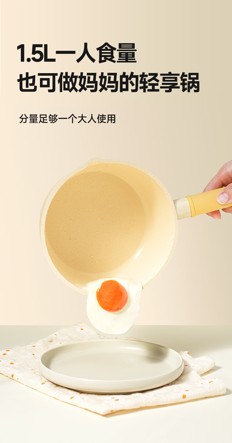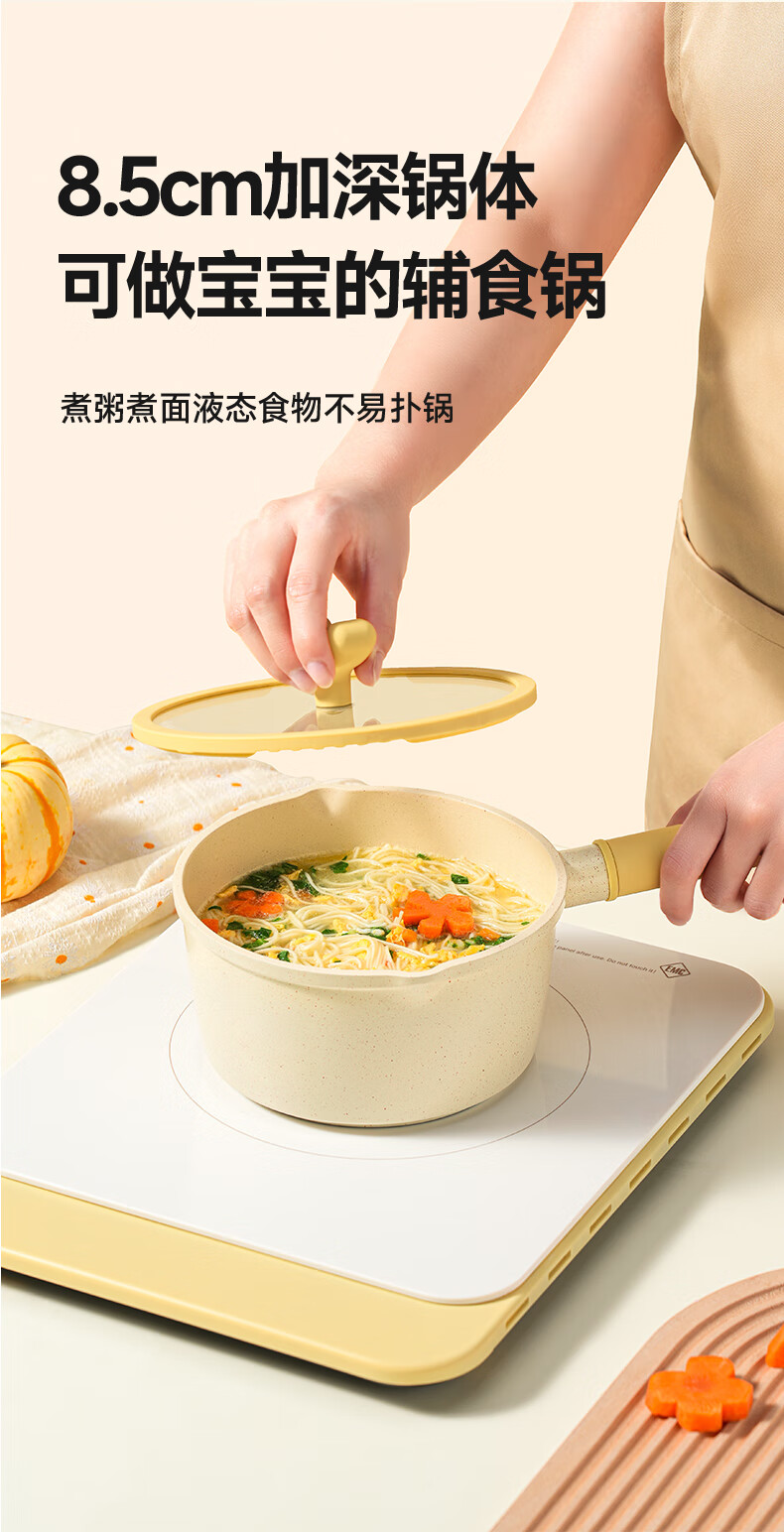 浦利顿(PLODON)麦饭石色小奶锅婴儿 宝宝辅食锅蒸煎煮一体不粘锅 16cm奶锅带蒸笼